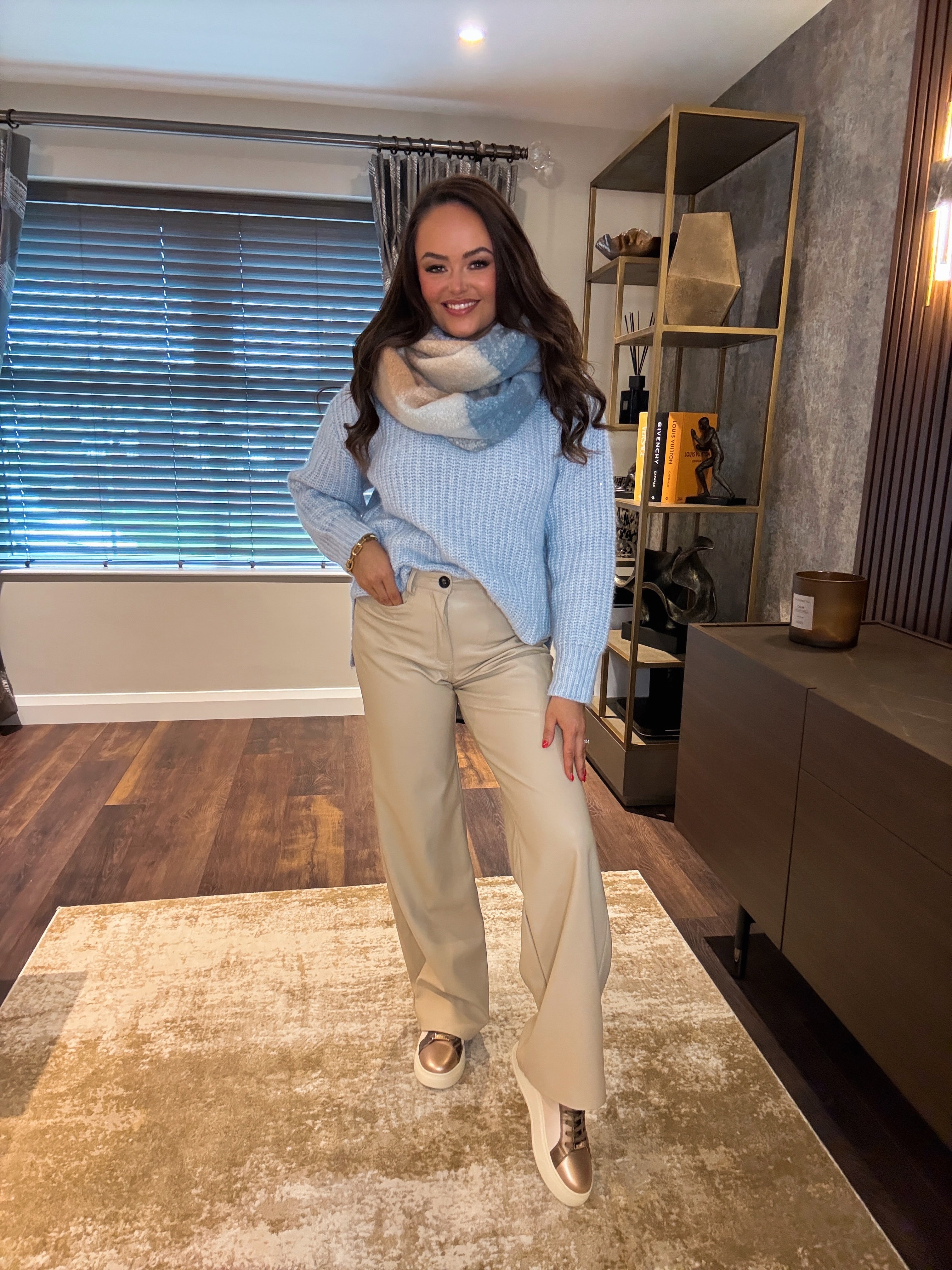 Tiffosi ‘Isabella’ Wide Leg Faux-Leather Trousers - Beige (TC65)
