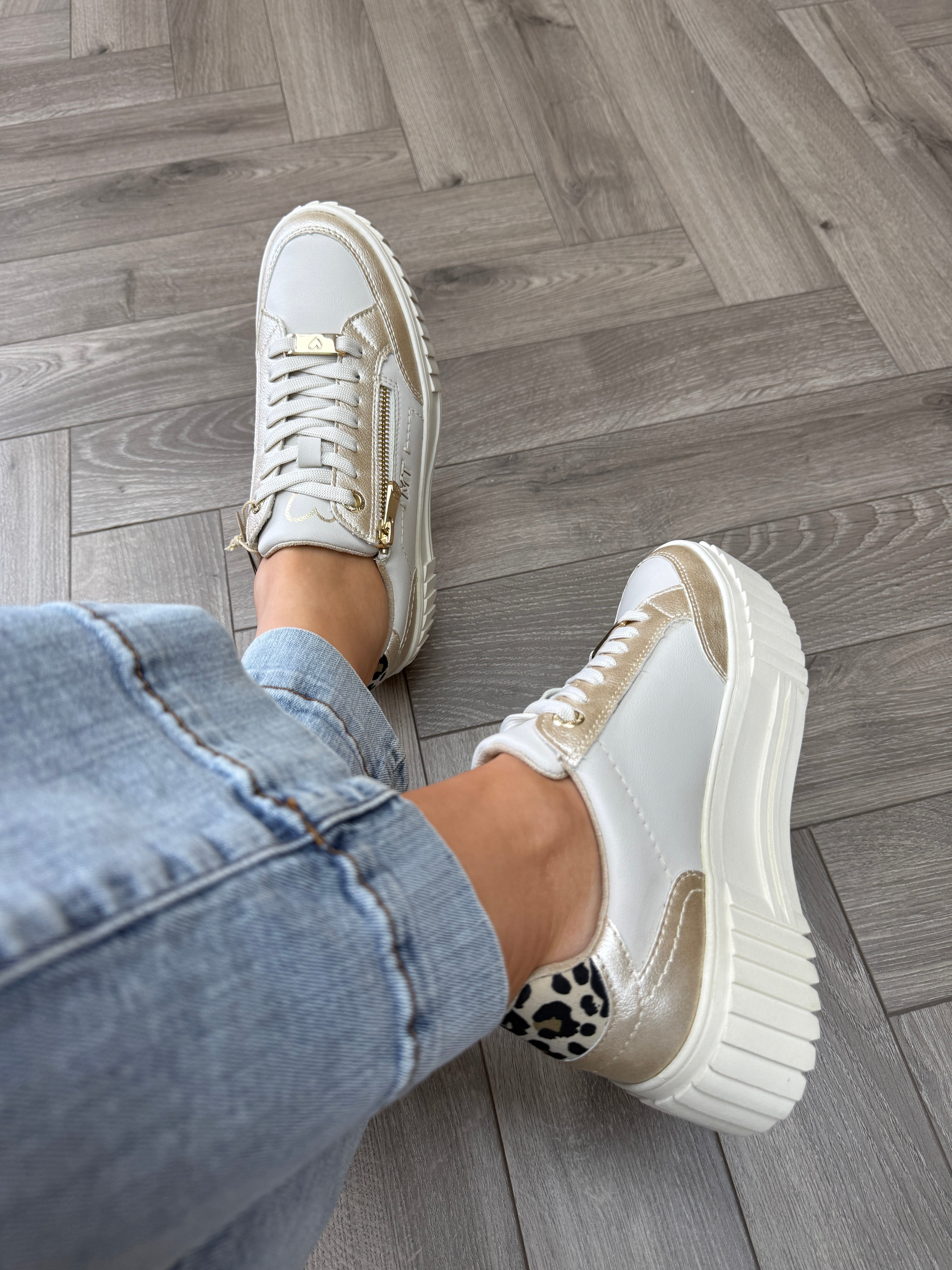 Marco Tozzi (AW25) 2-23760-45 Platform Trainer With Leopard Heel - Cream Comb (MTAW38)