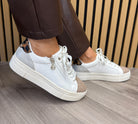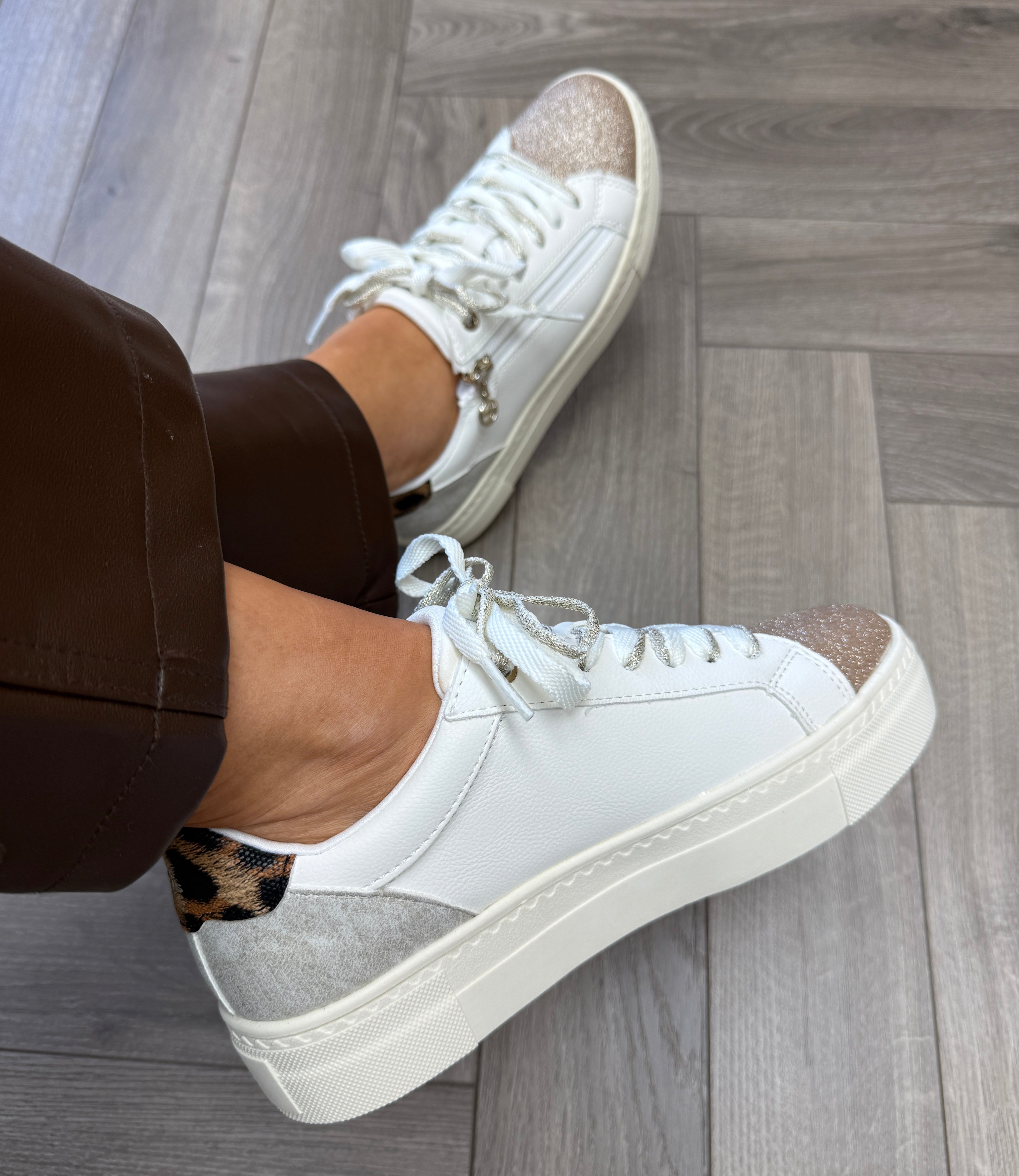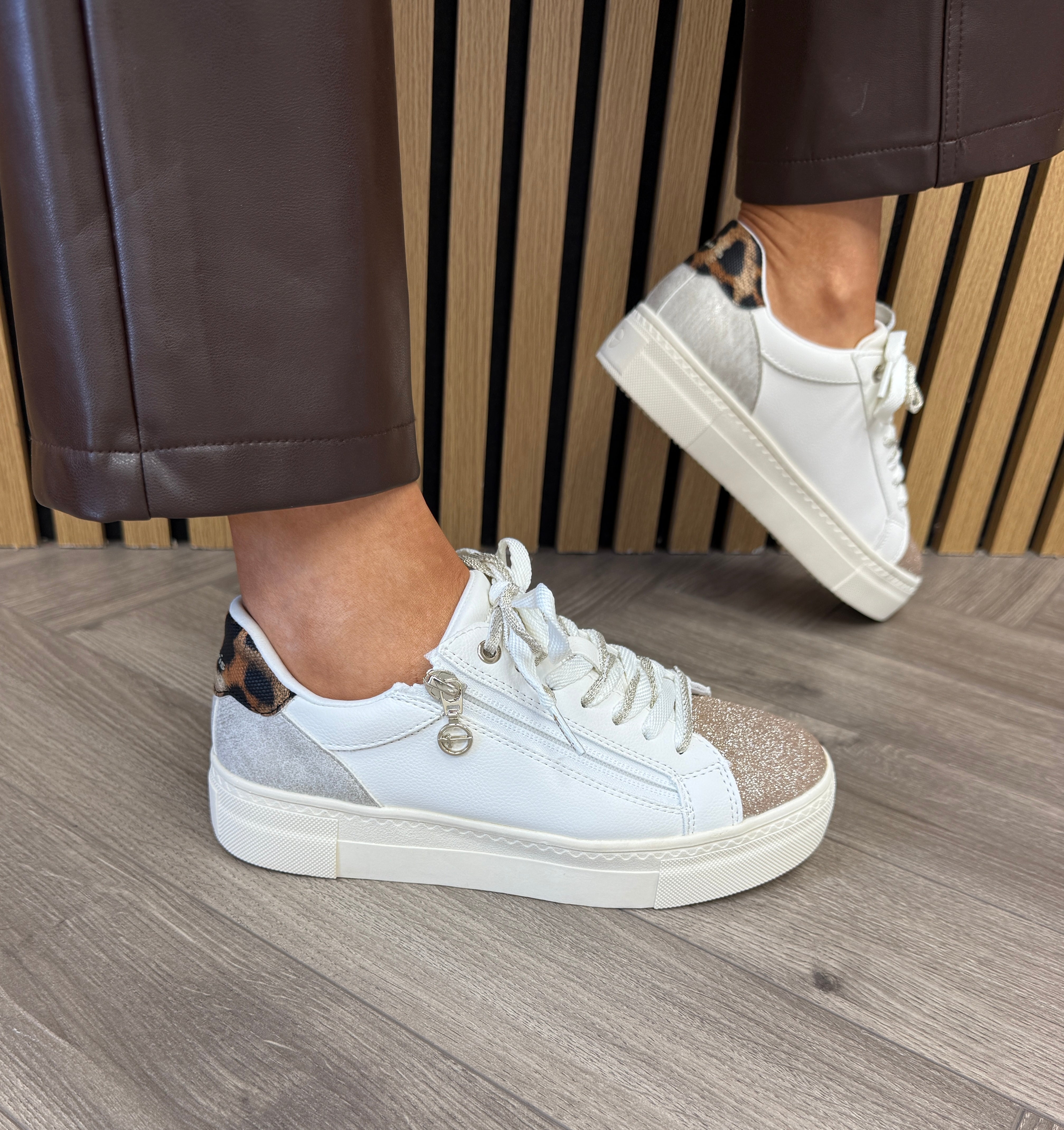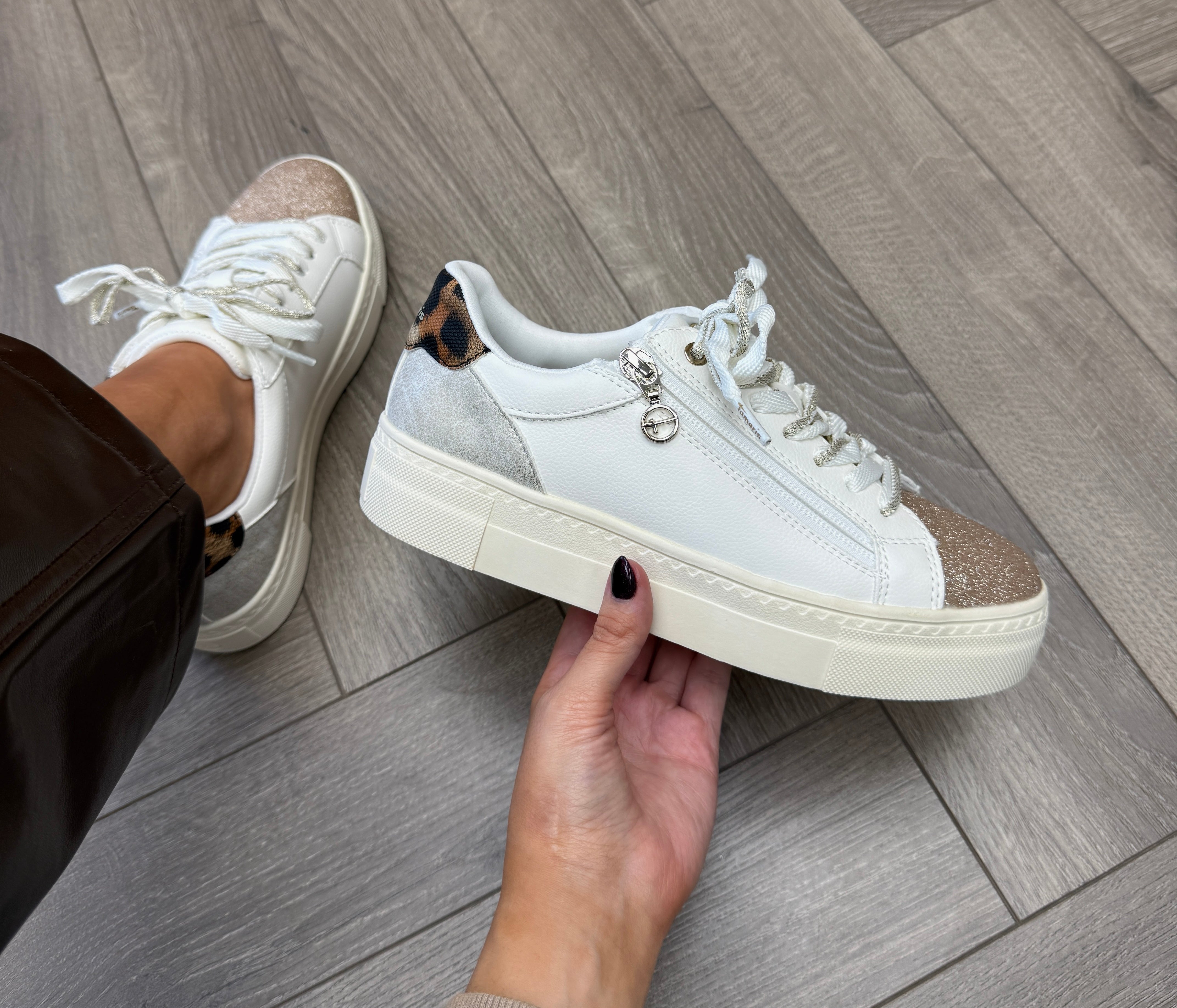 Tamaris (SS26) 1-23313-41 Platform Trainer With Glitter Toe - White Comb (TA21)