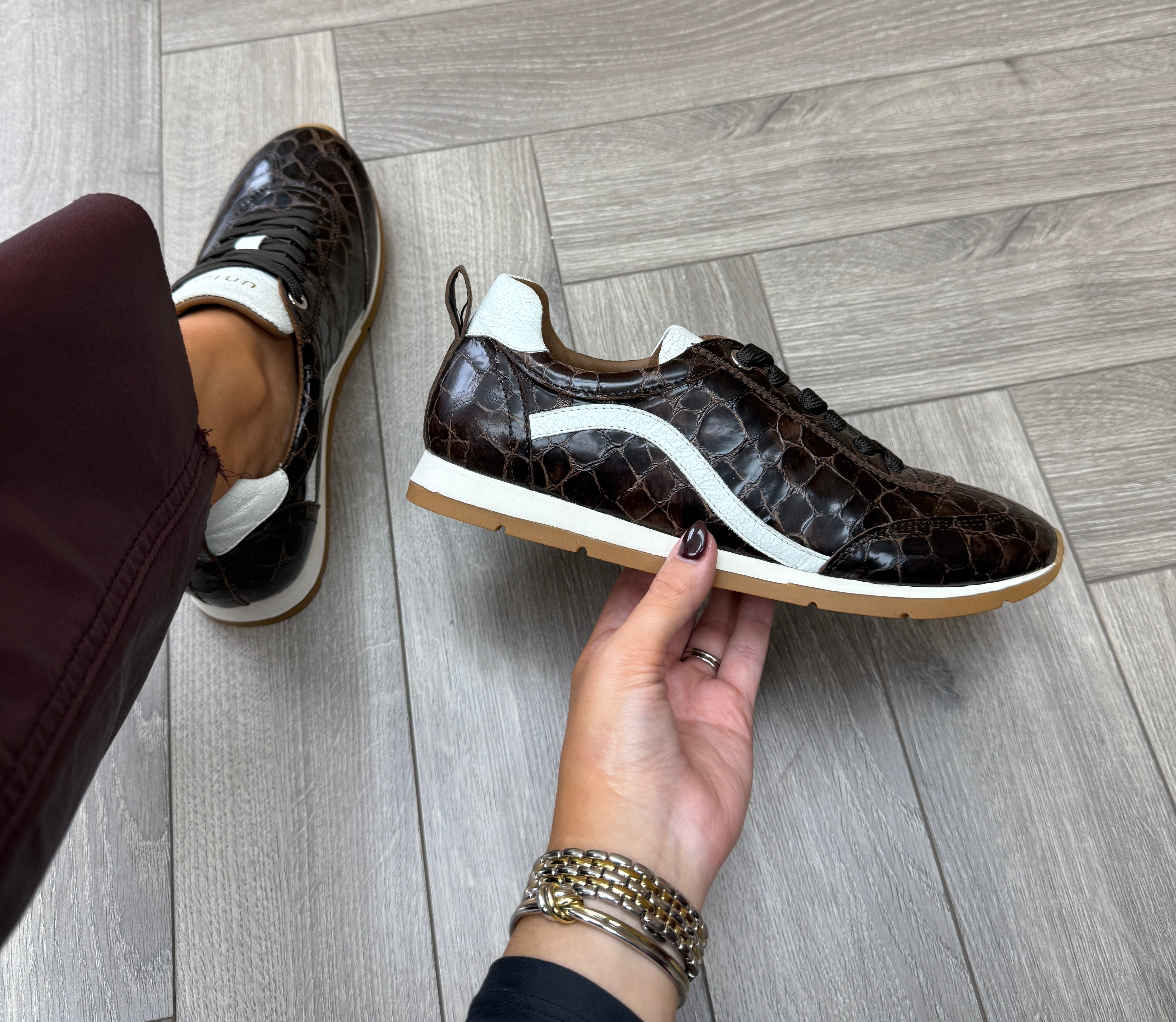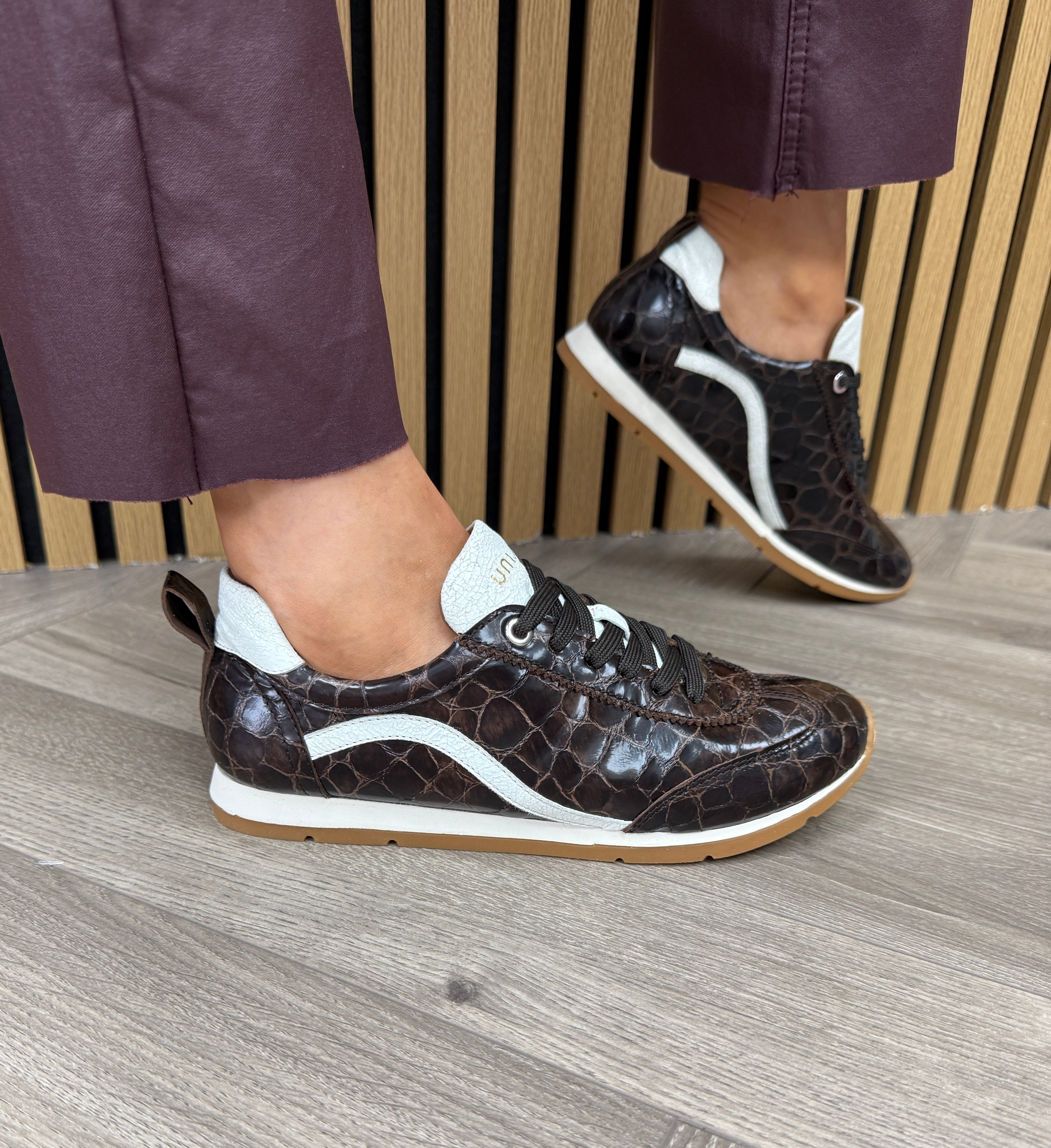 Unisa (U9) Croc Print Trainer Dalai_Sul_Gri - Wengue/Ivory