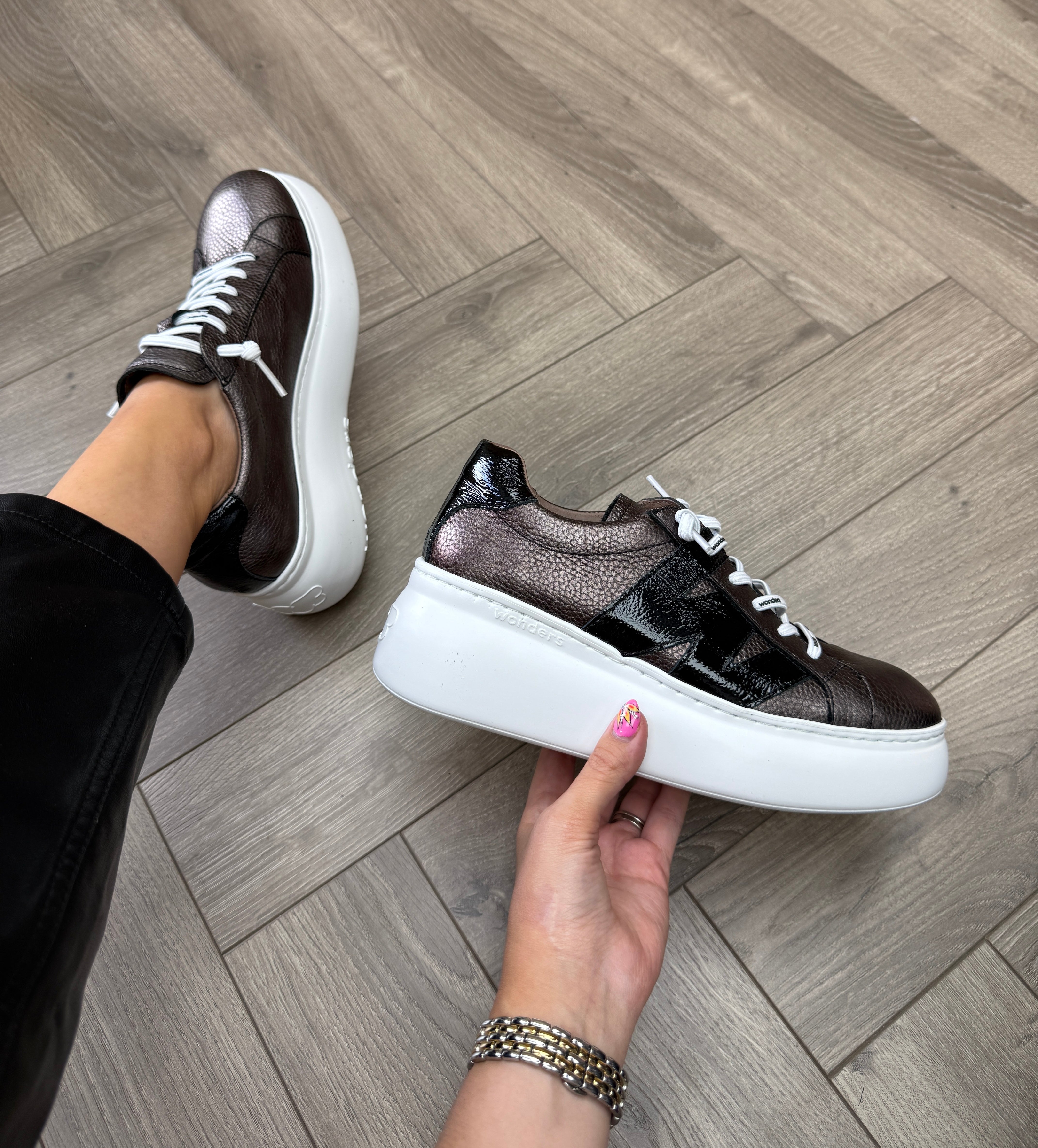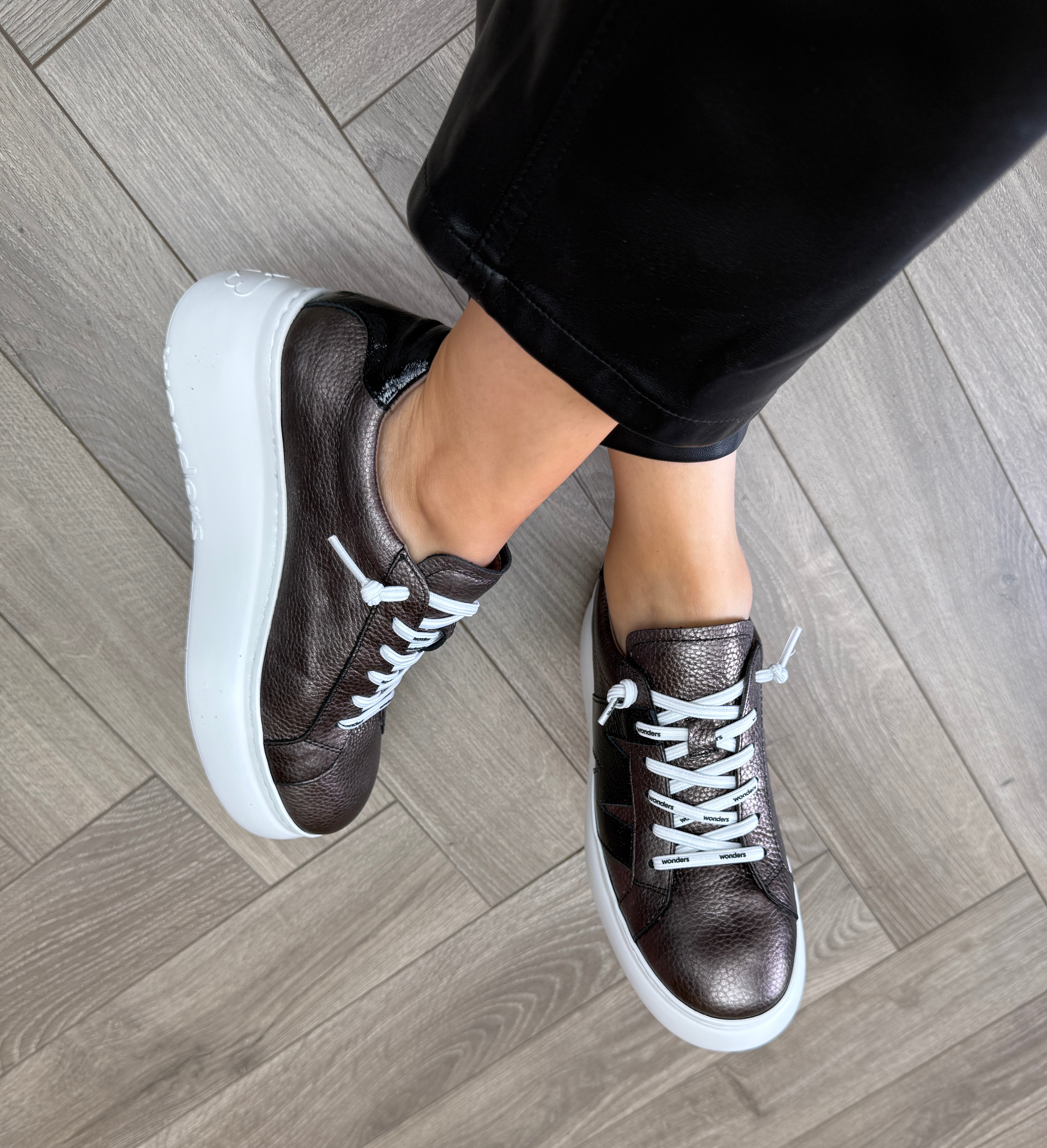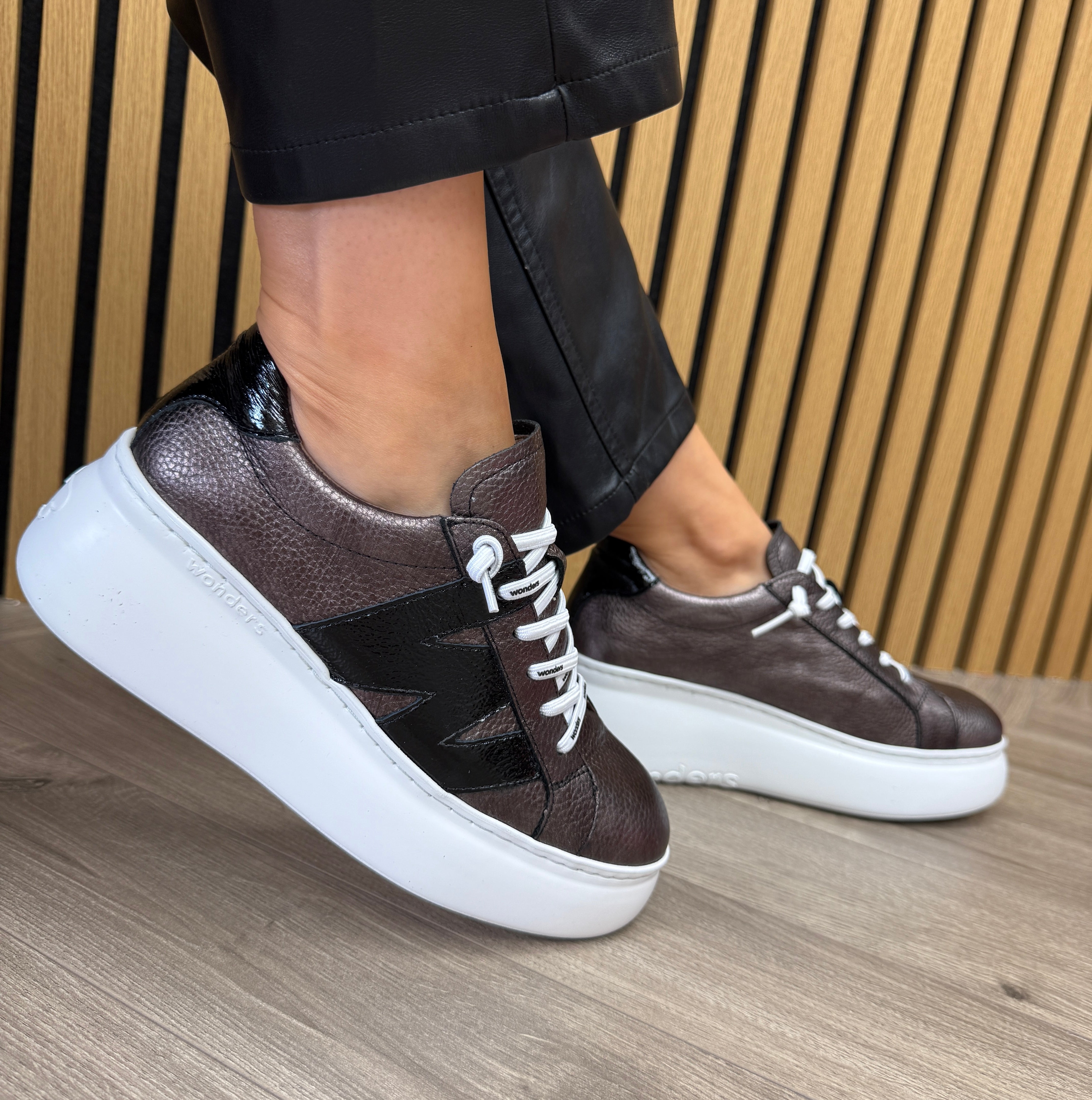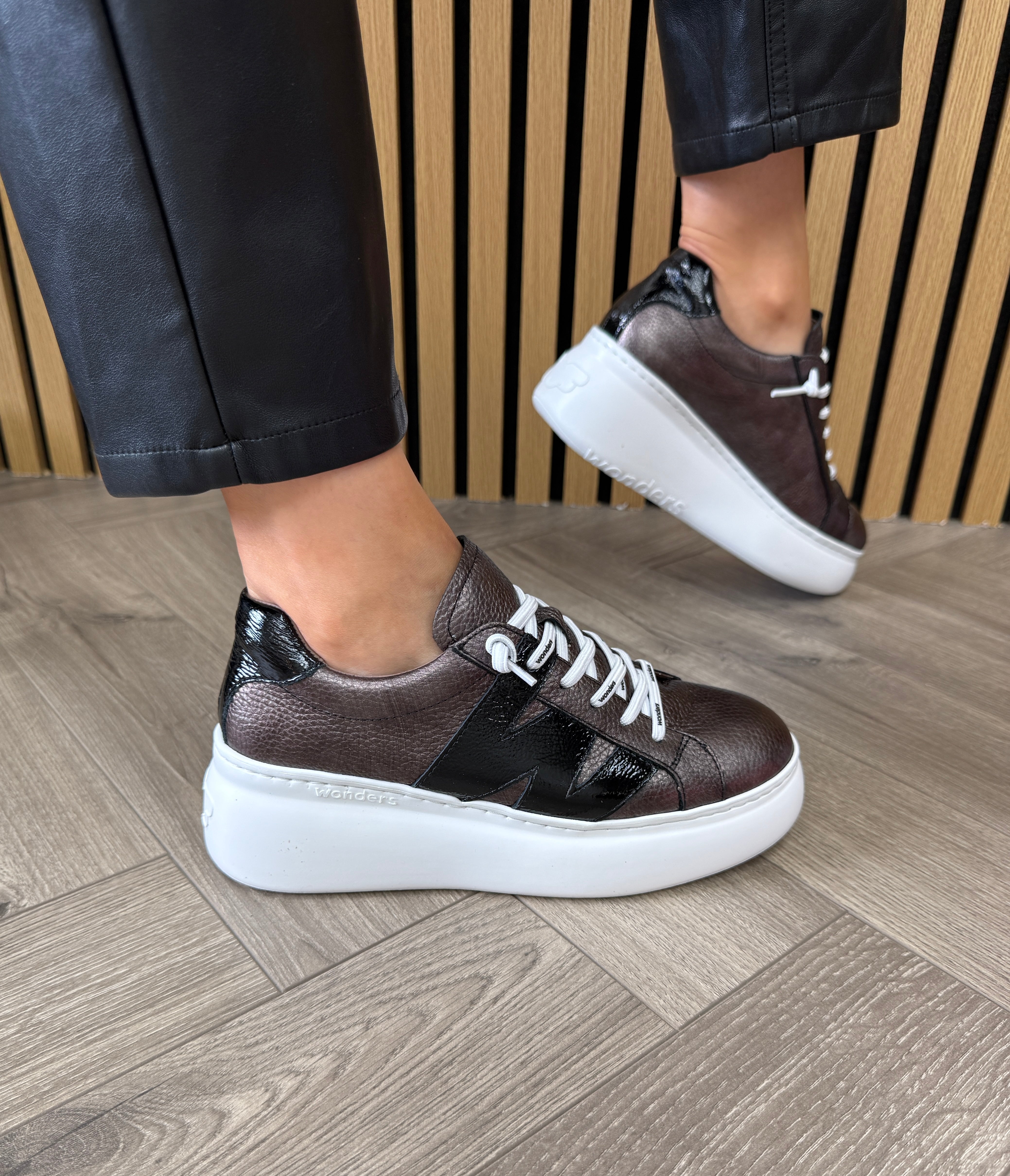 Wonders (AW25) Metallic Platform Trainer with Patent Detail A-2660 - Plomo Negro (WAW6)