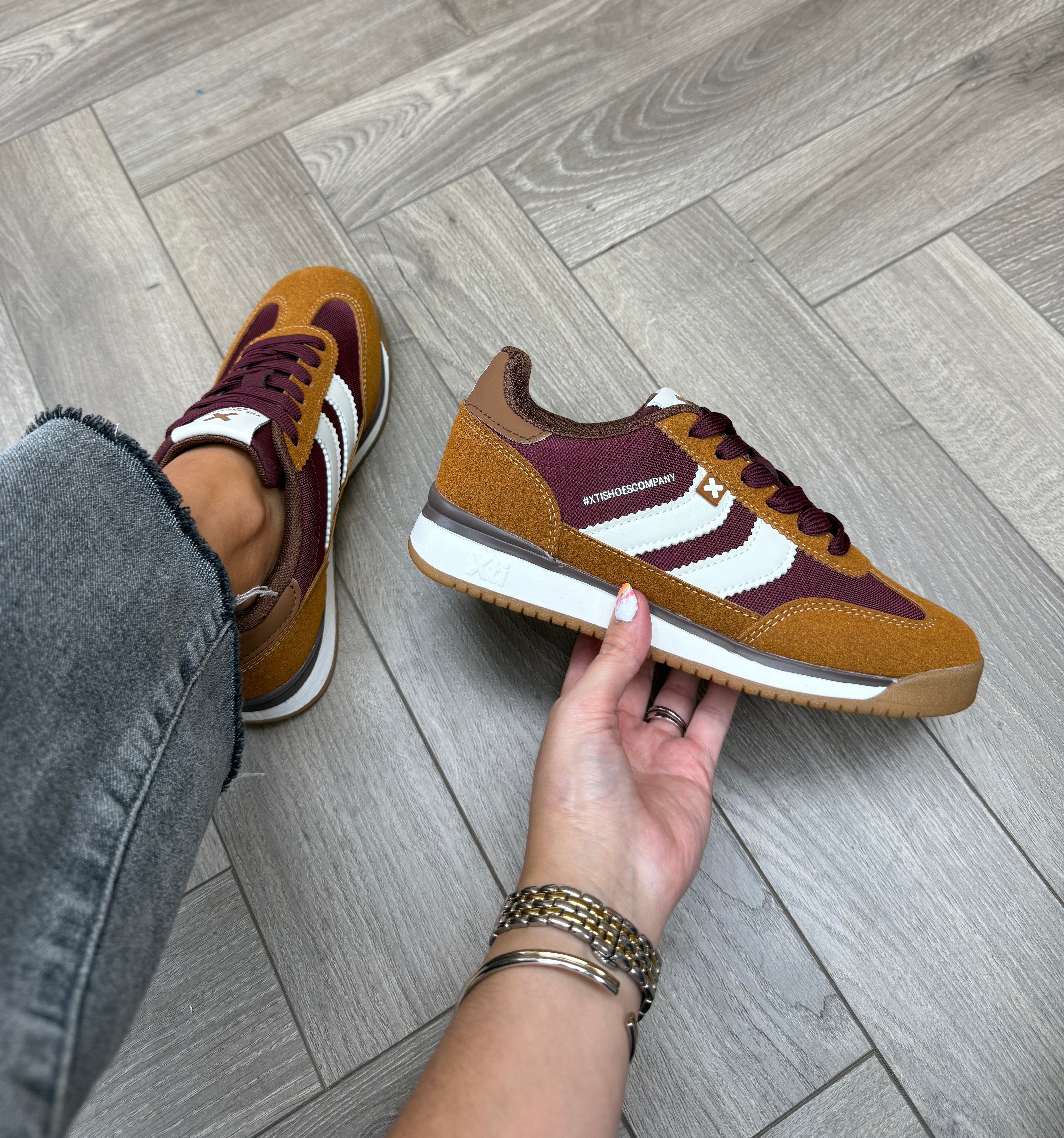 XTI (AW25) 144587 Trainer With Burgundy Mesh - Z.C.Camel (XAW12)