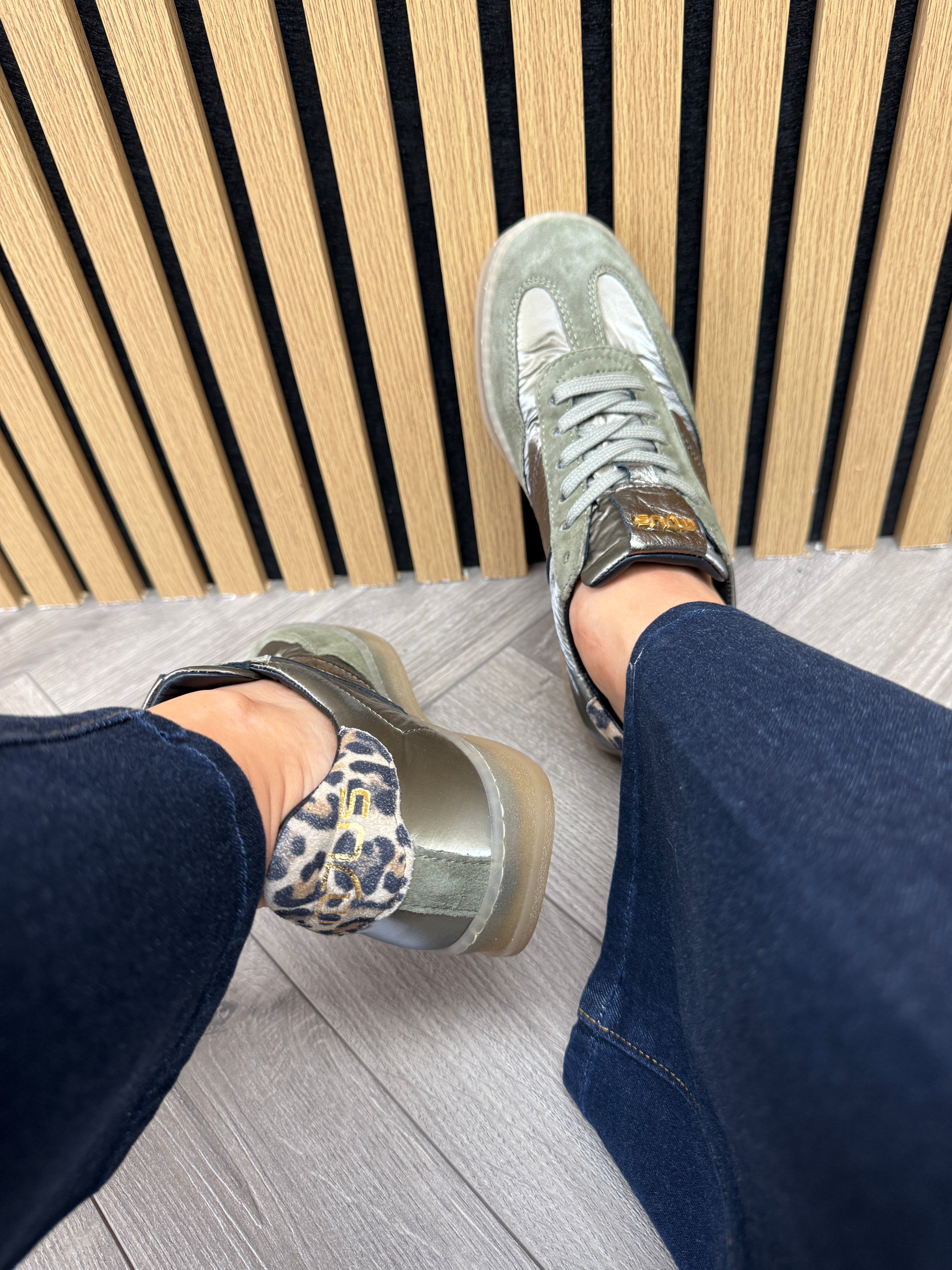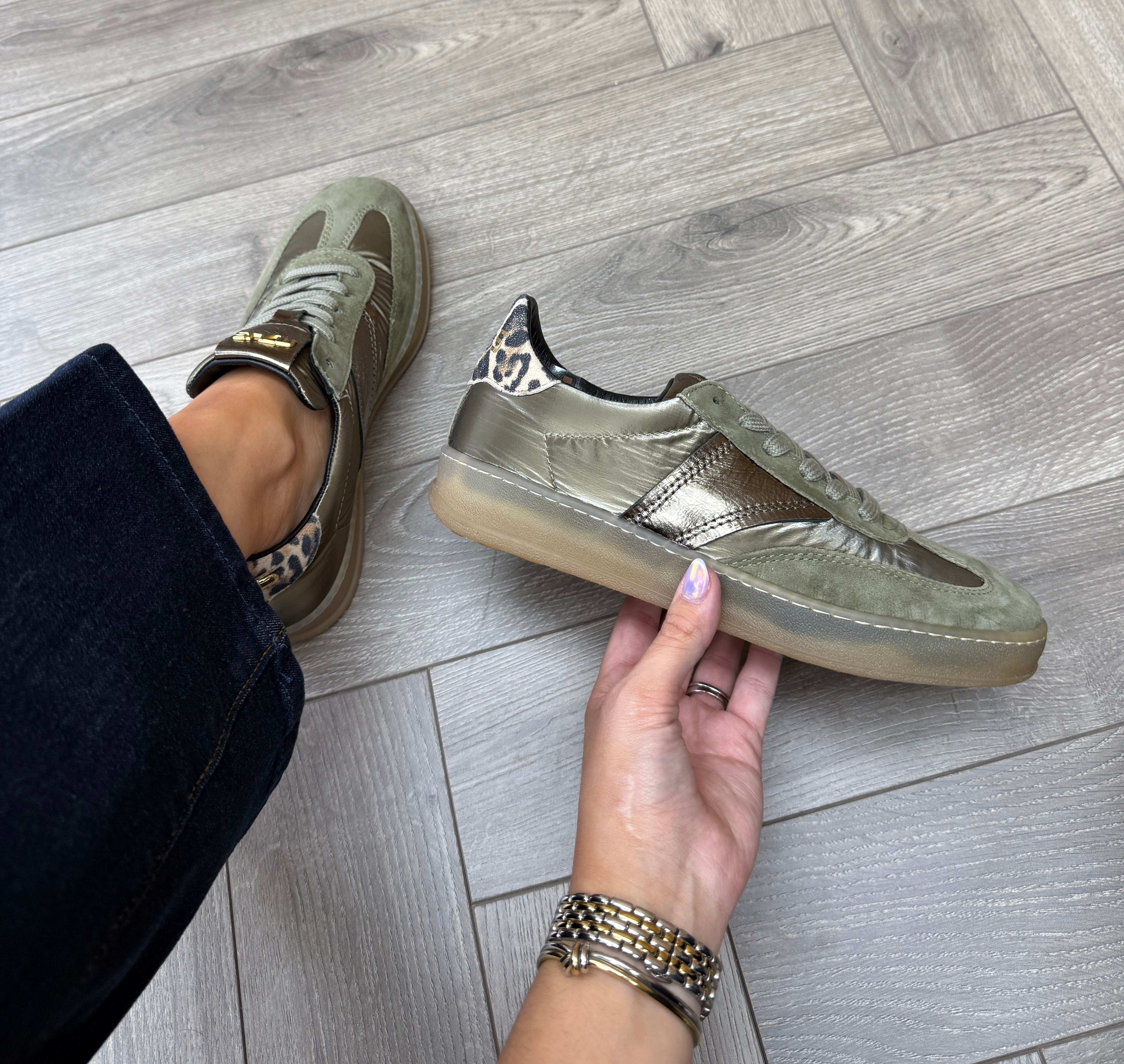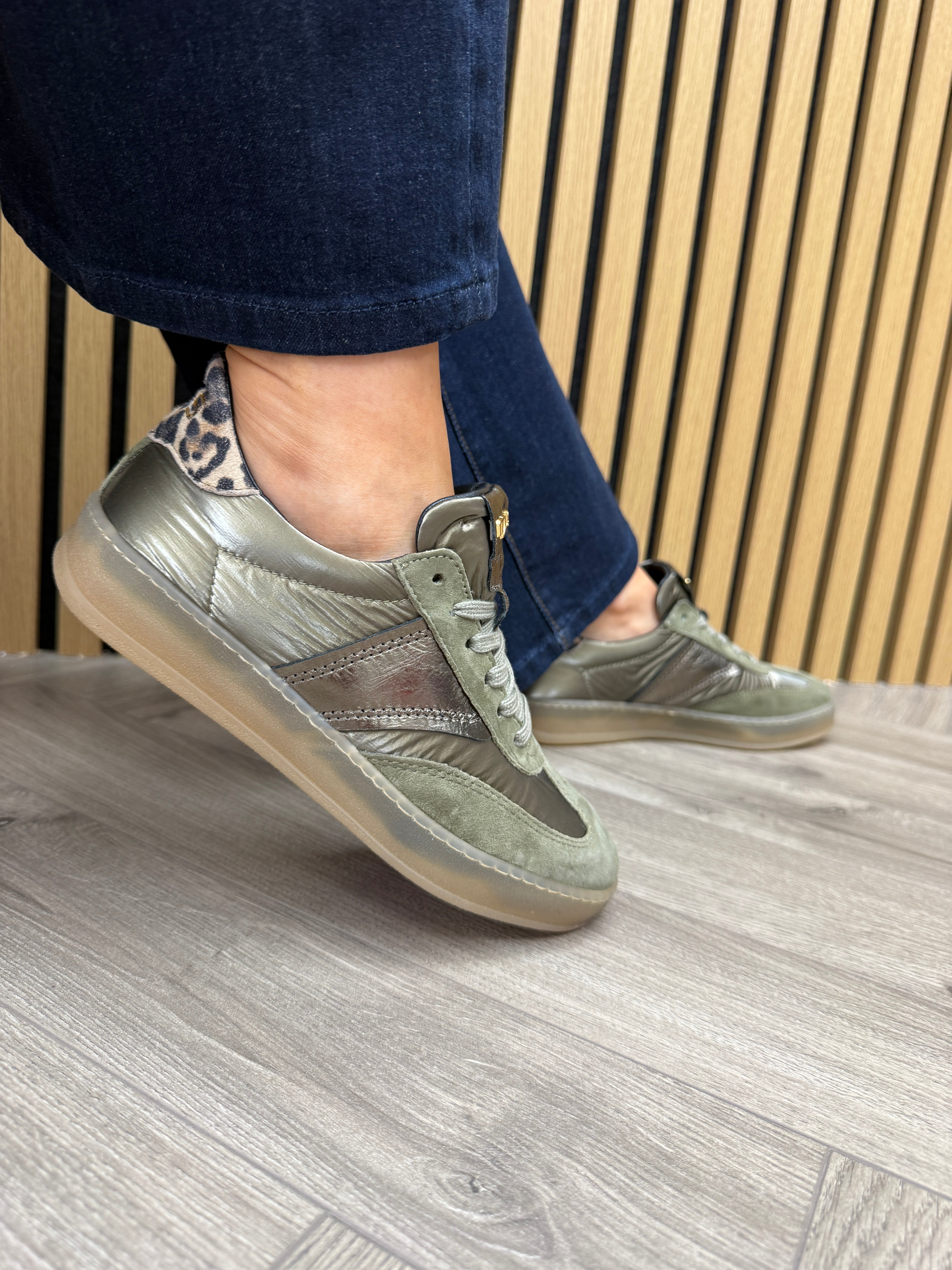 Mjus (MJ3) Metallic and Suede Trainer T94109 - Oliva/Antico/Macaron