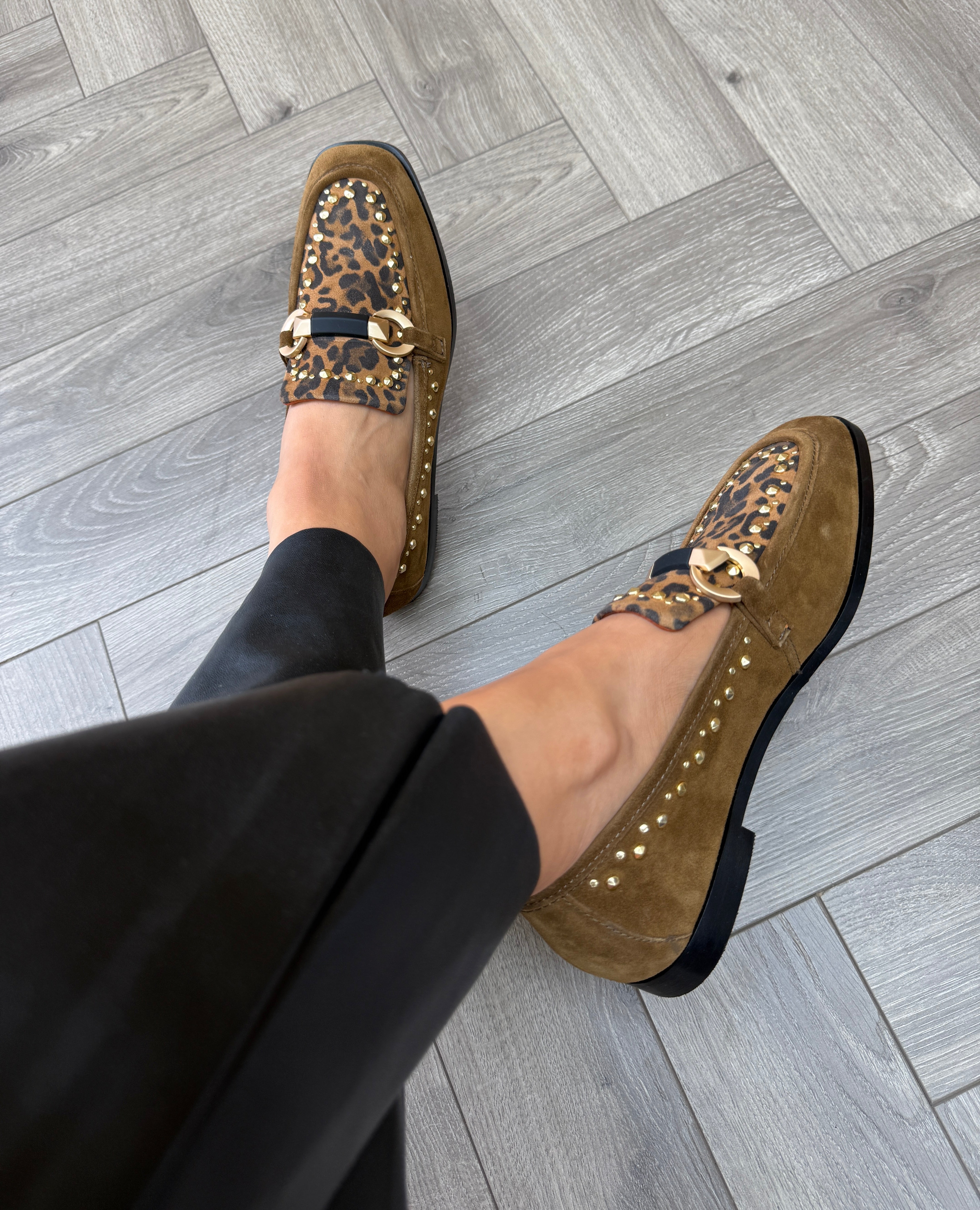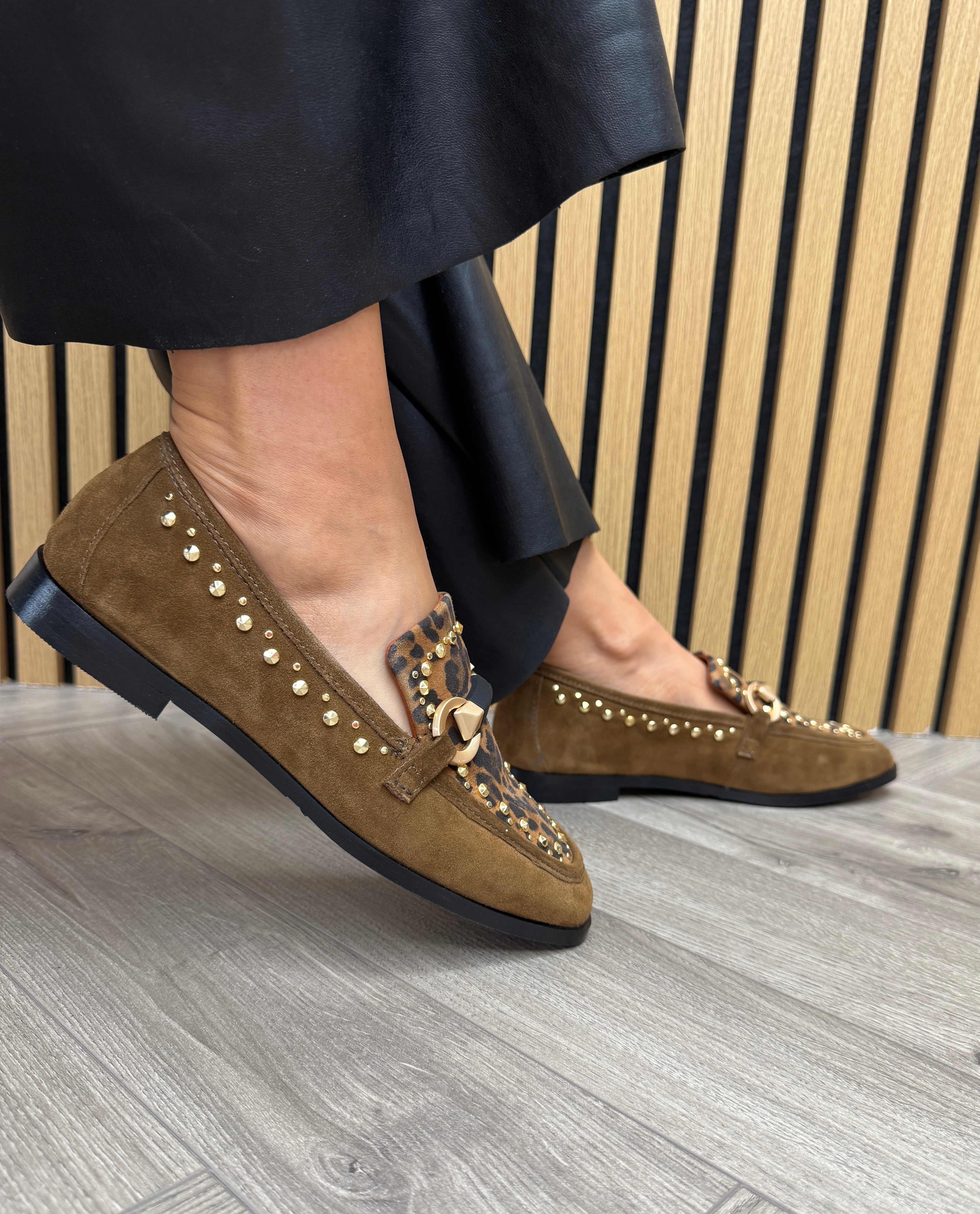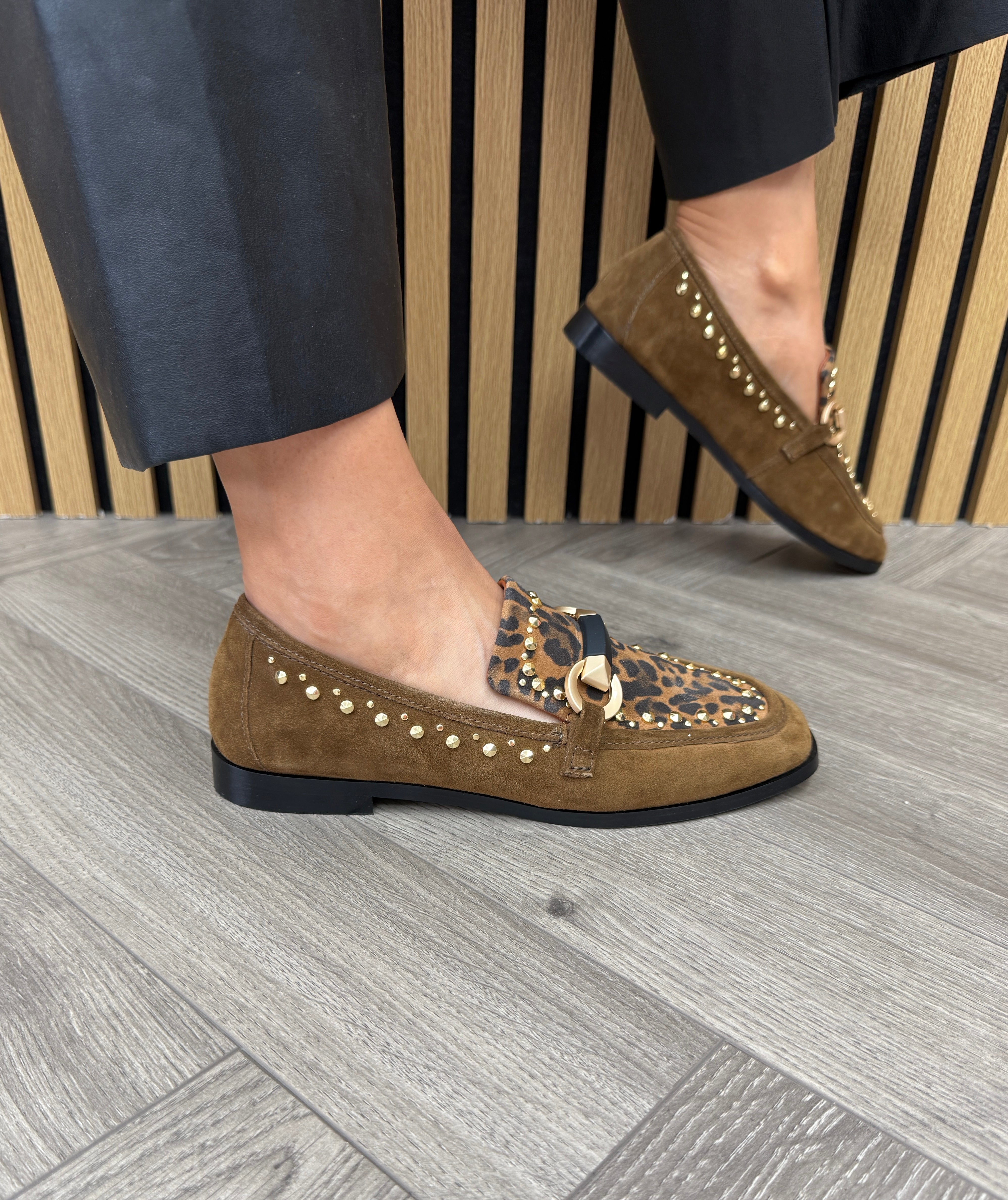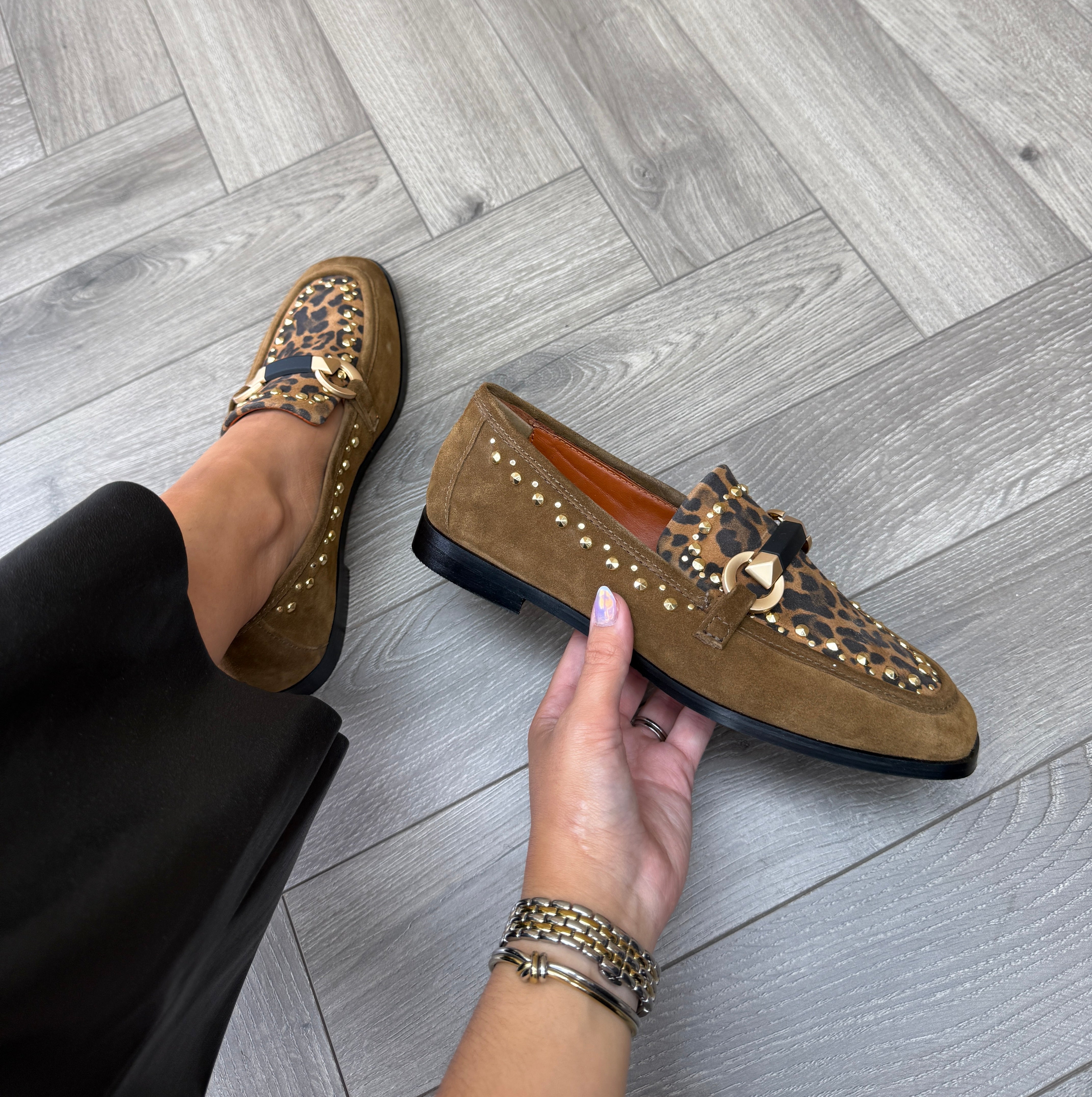 Mjus (MJ2) Leopard Print Studded Loafer L53103 - Texas/Sella
