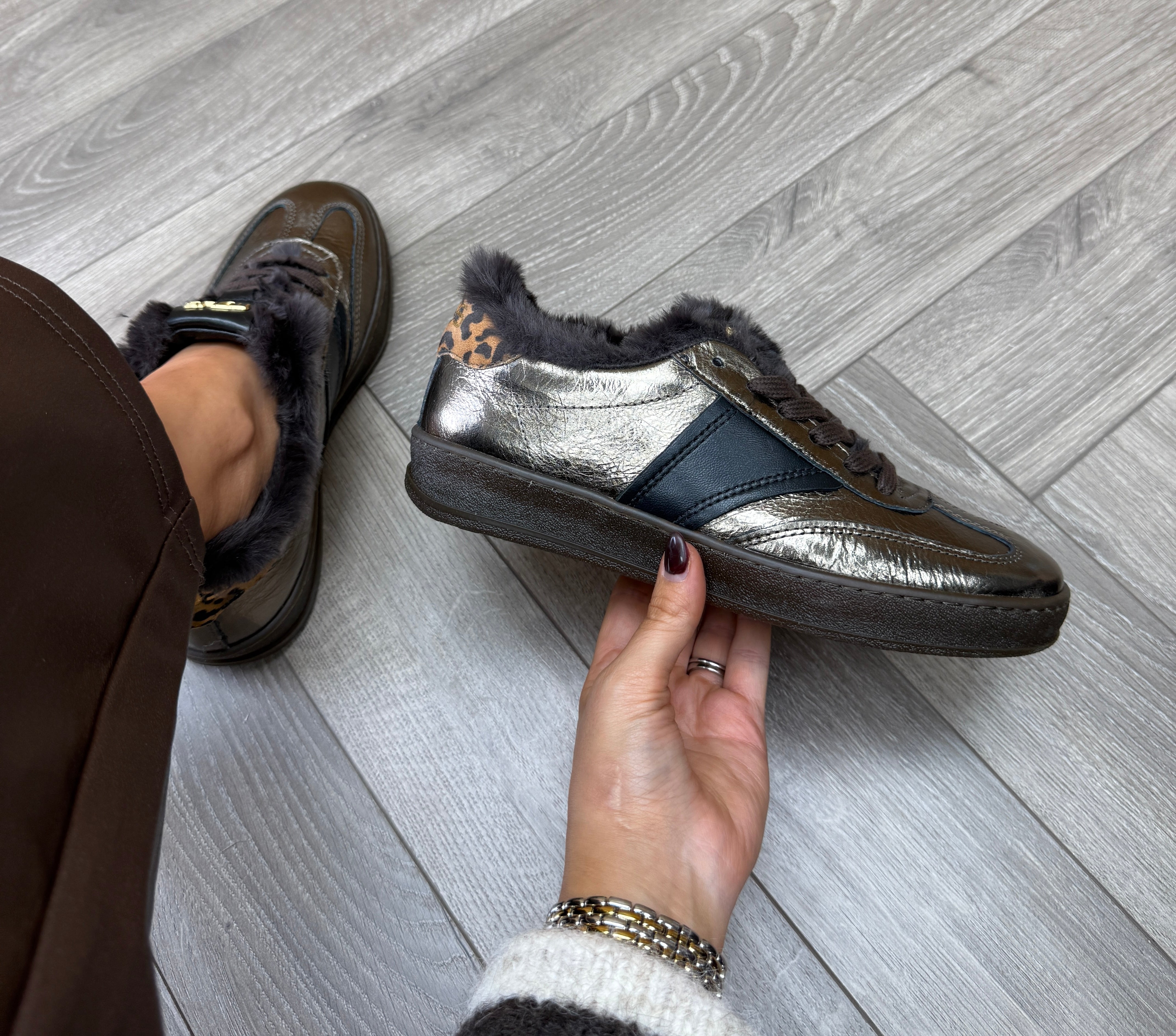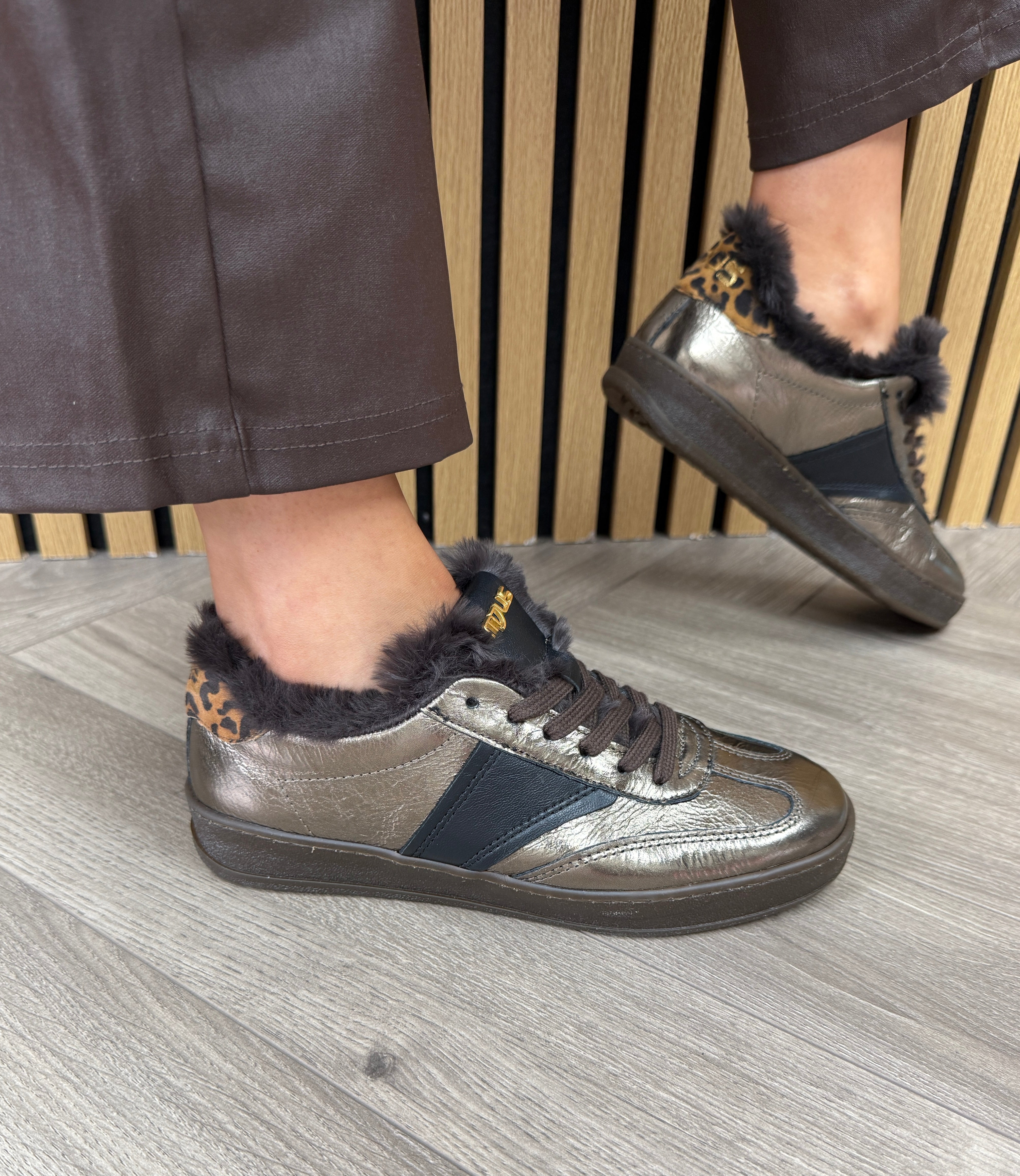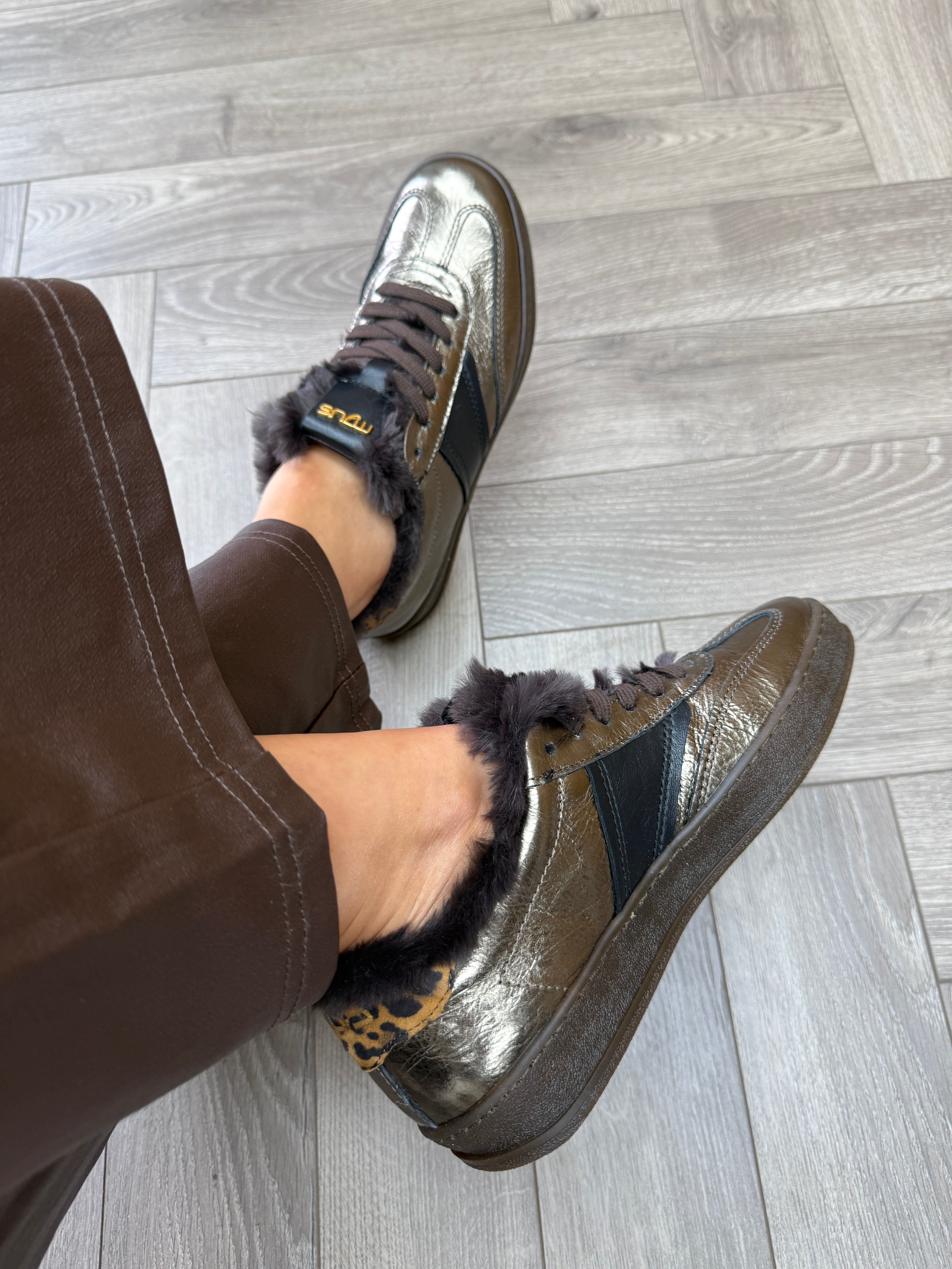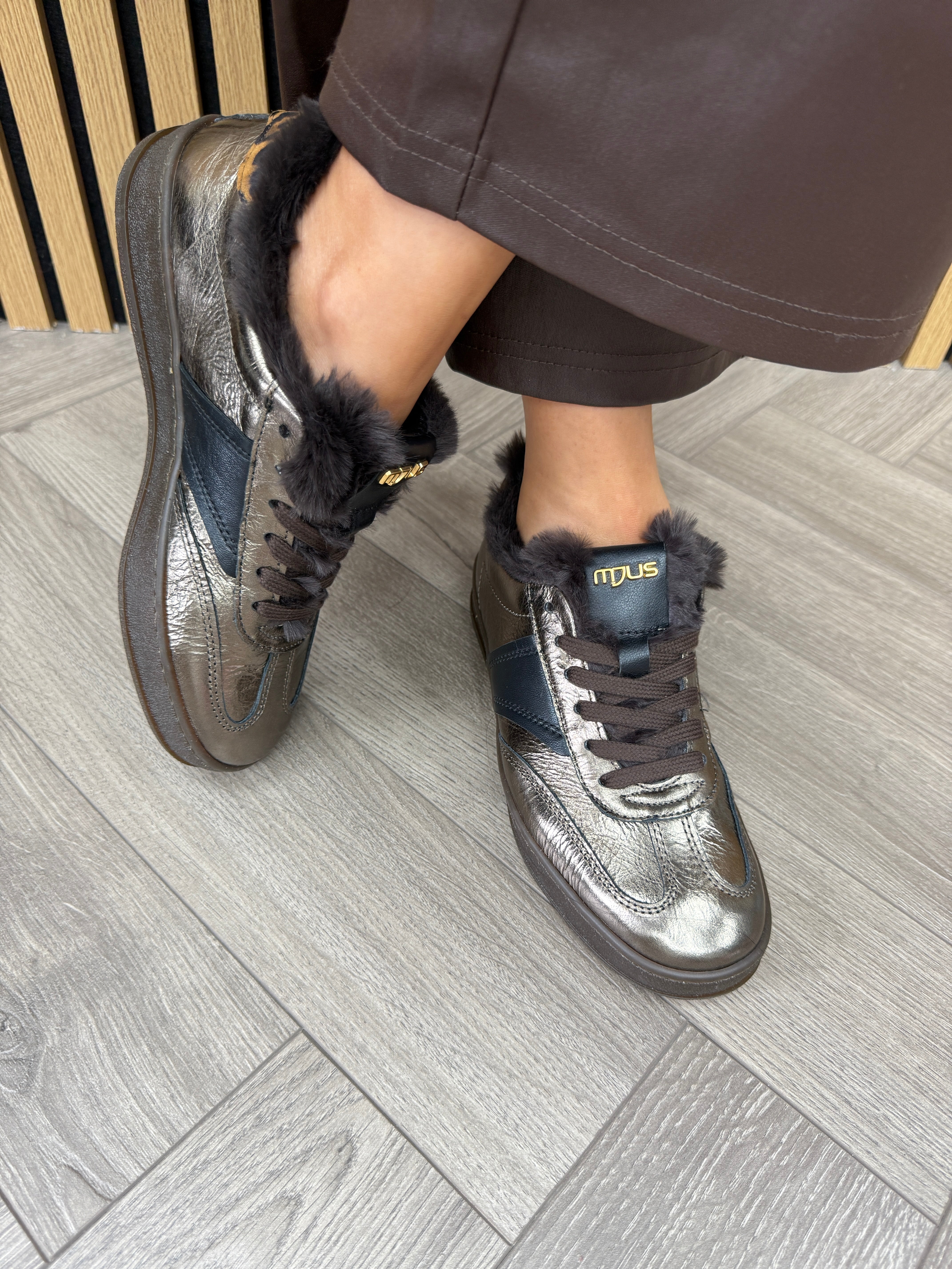 Mjus (MJ1) Metallic Trainer With Fur T94127 - Antico/Nero Sella