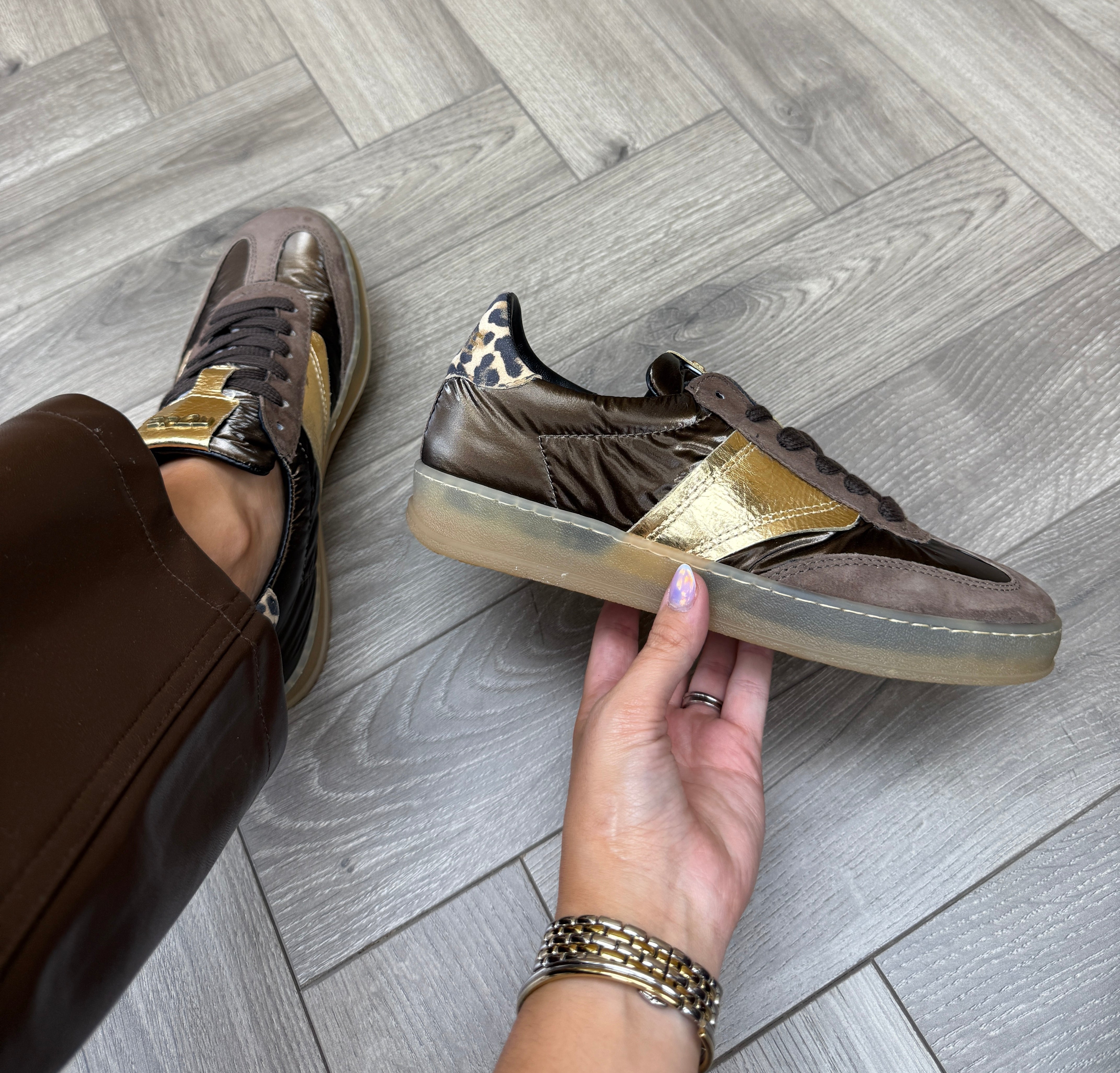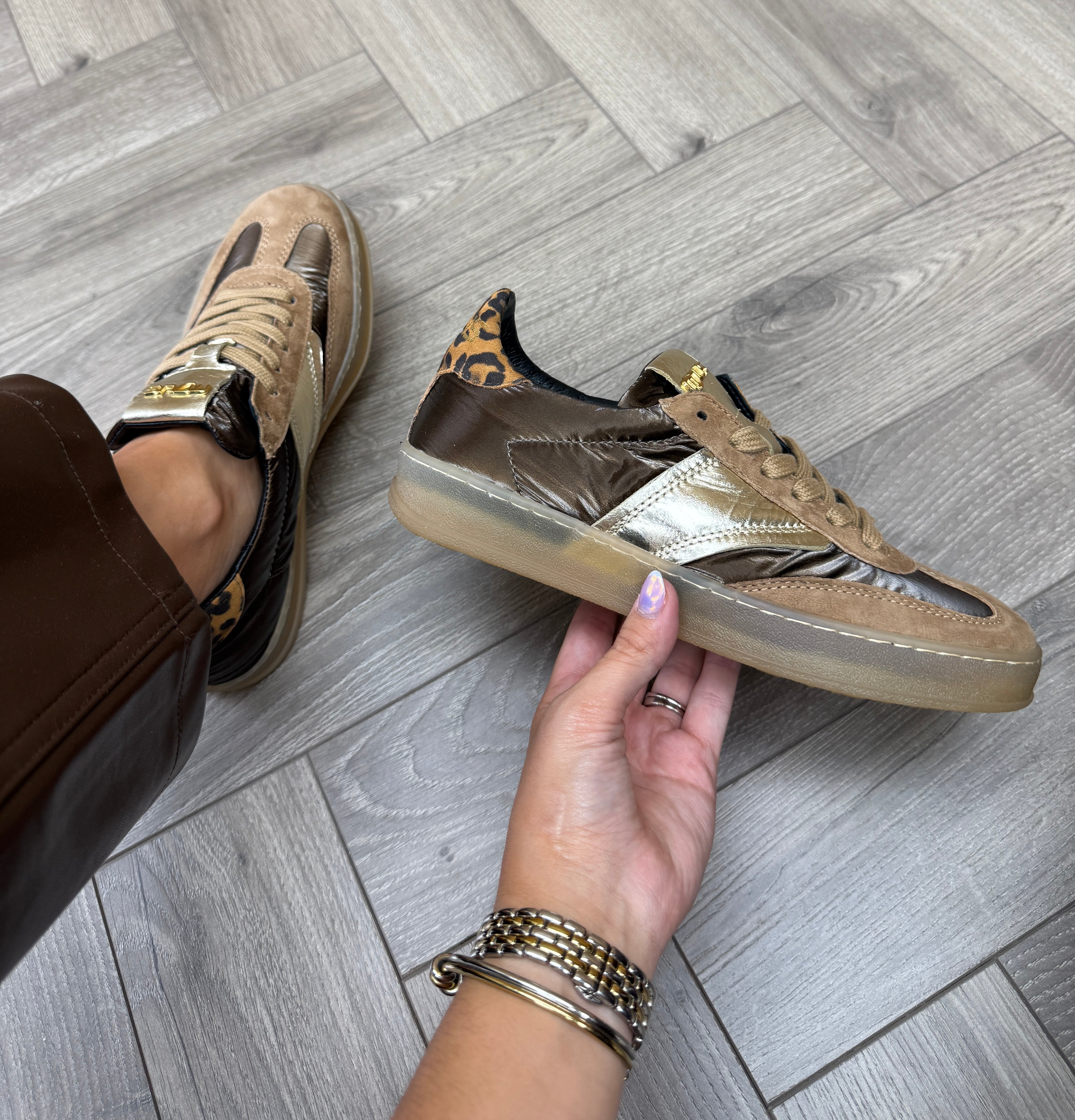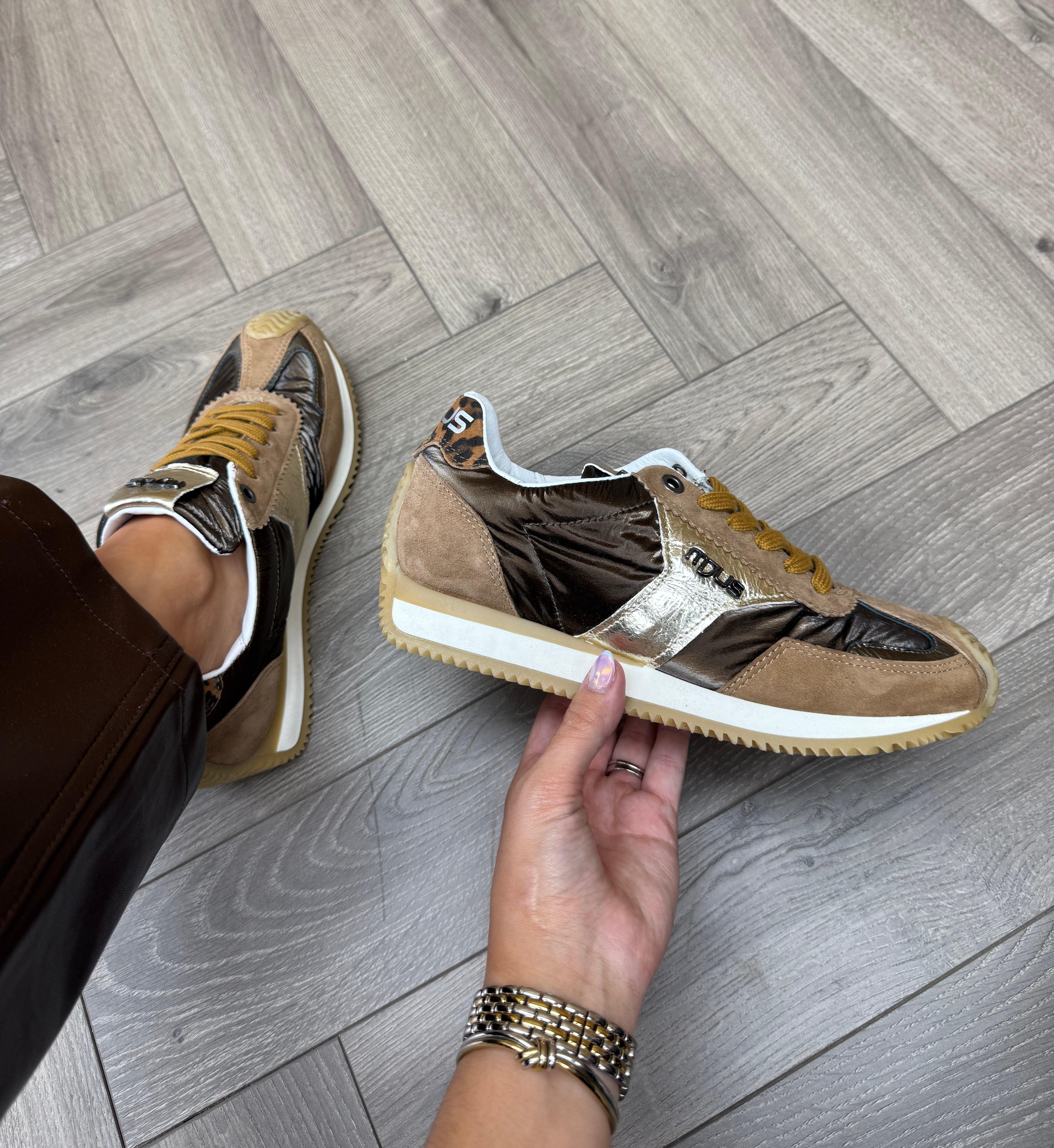 MJUS (MJ5) Metallic and Suede Trainer T94109 - Sand/Castagna/Platino