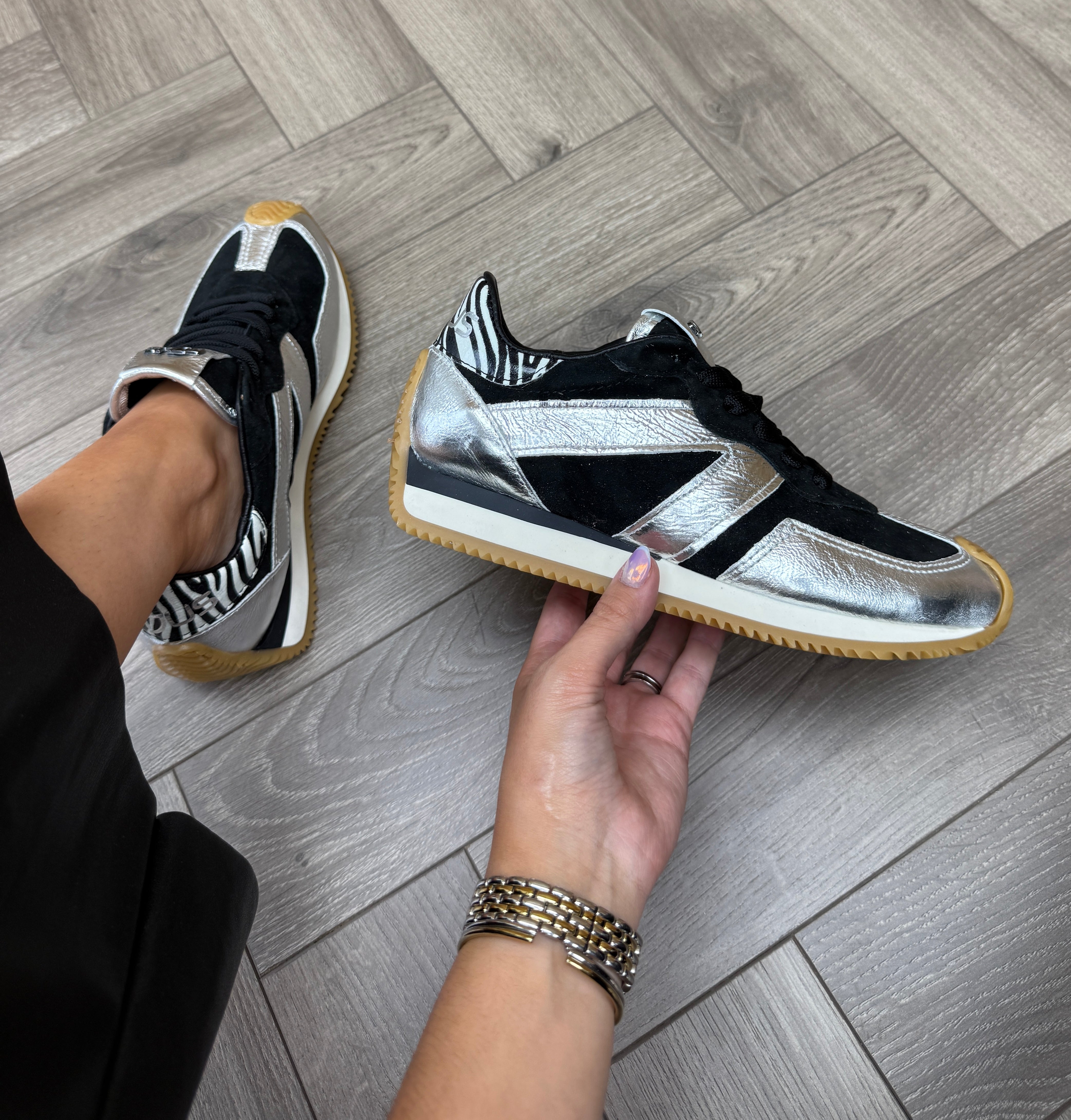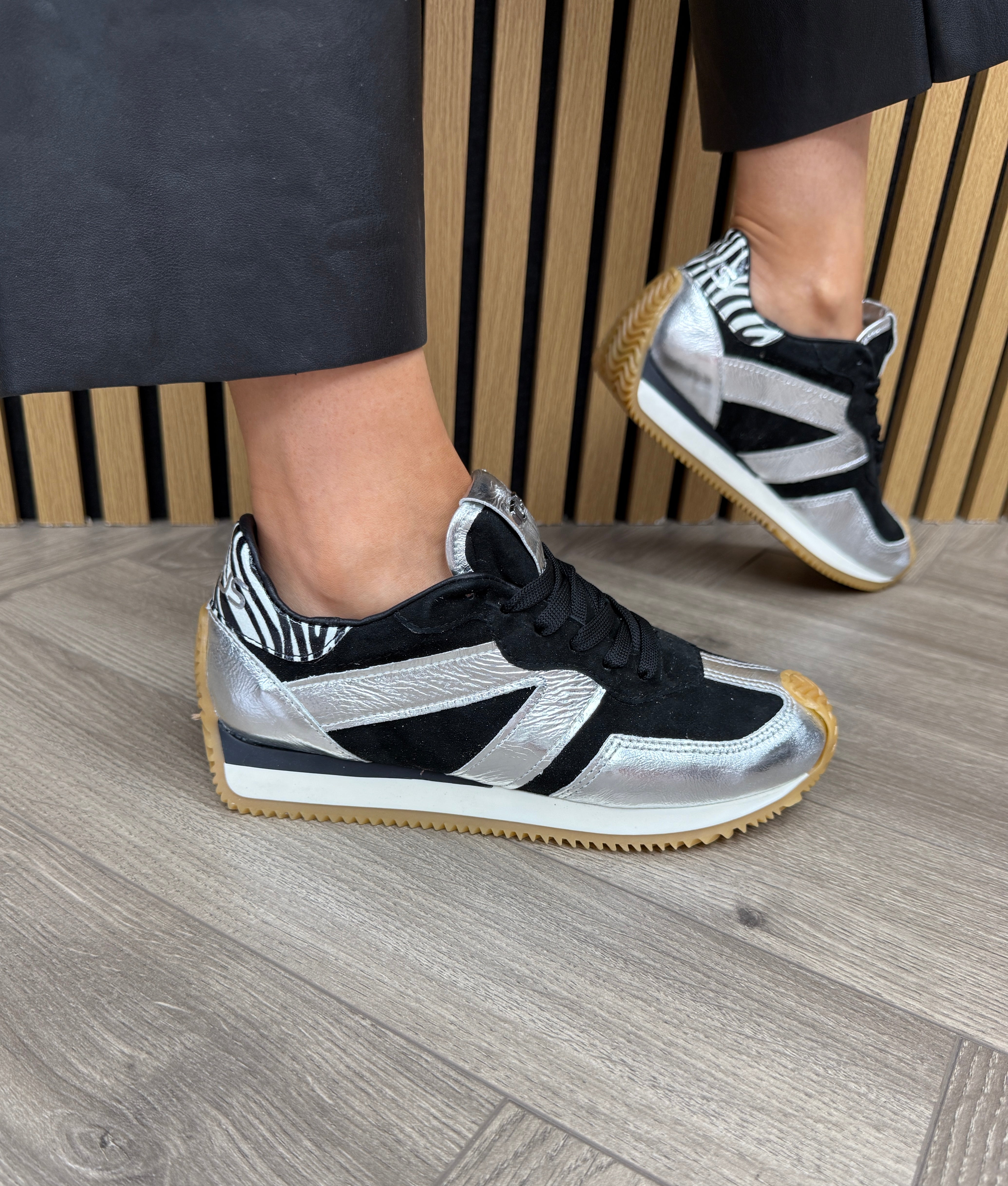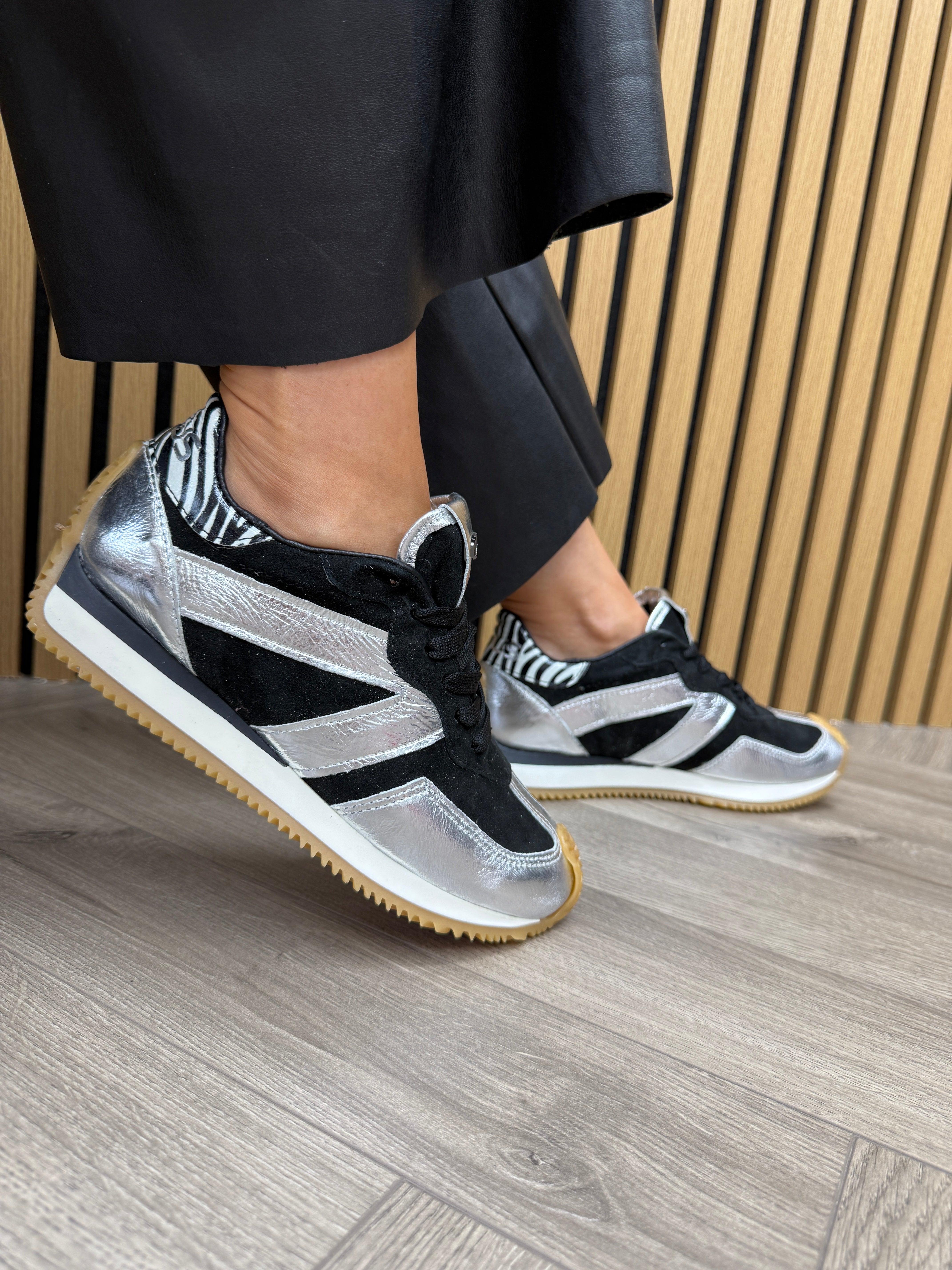 Mjus L14127 ‘Latte’ Trainer With Silver Metallic Trim - Argentine/Nero (MJ4)