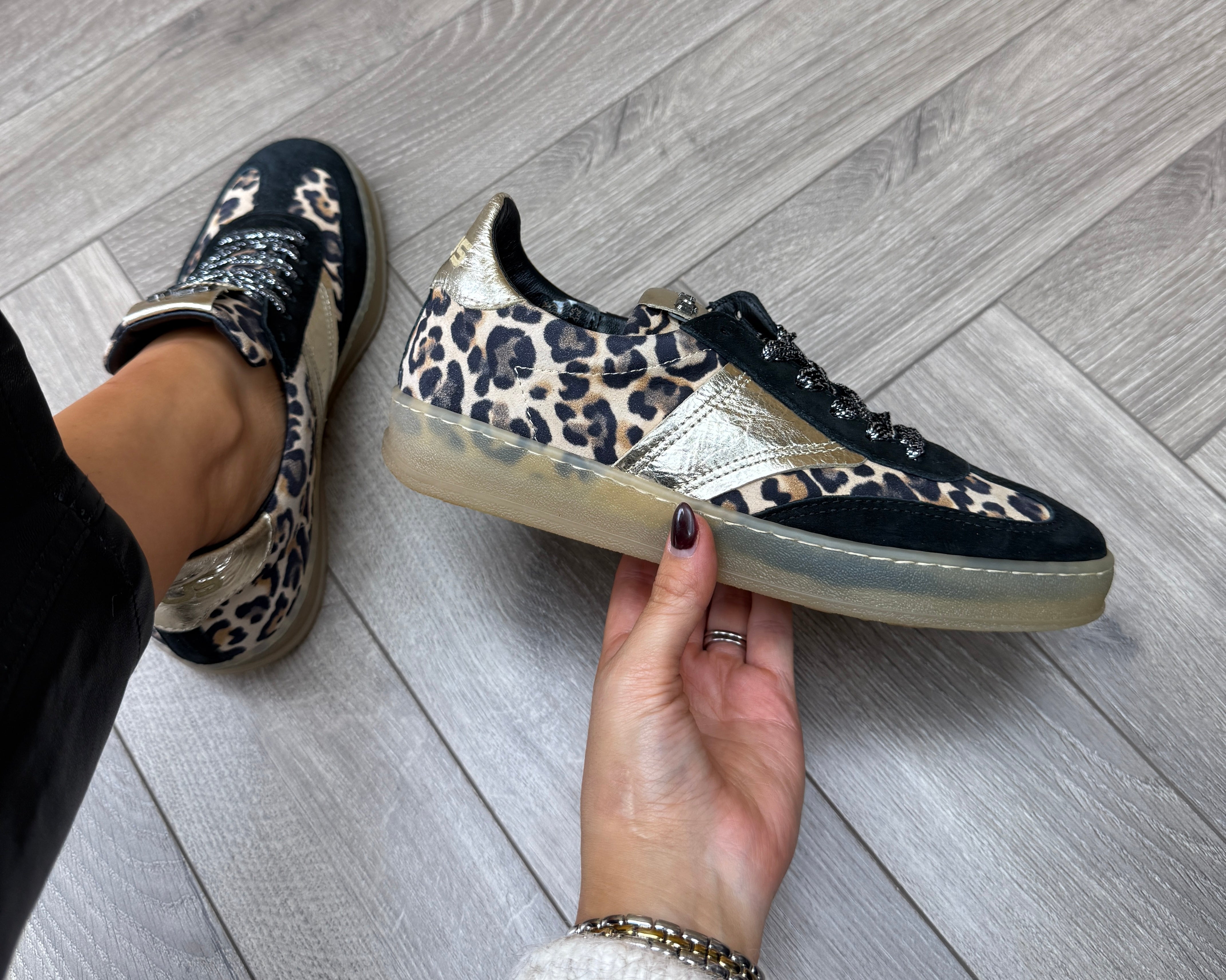MJUS (MJ6) Leopard Print Trainer T94109 - Nero/Macaron/Platino