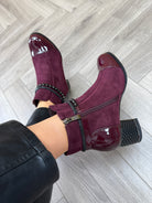 Redz ‘1901’ Ankle Boot With Diamanté Strap Strap - Bordeaux (RZ14)