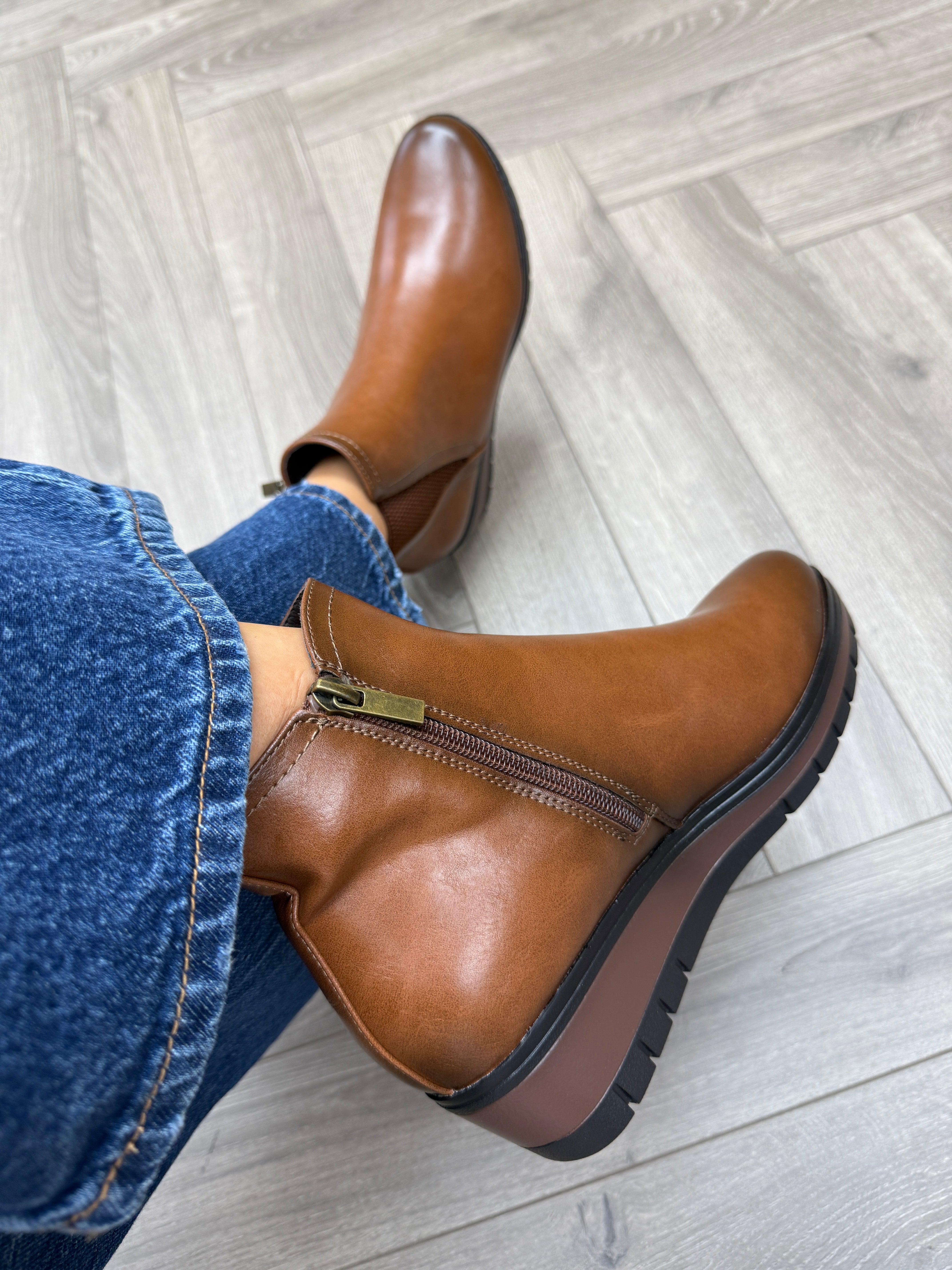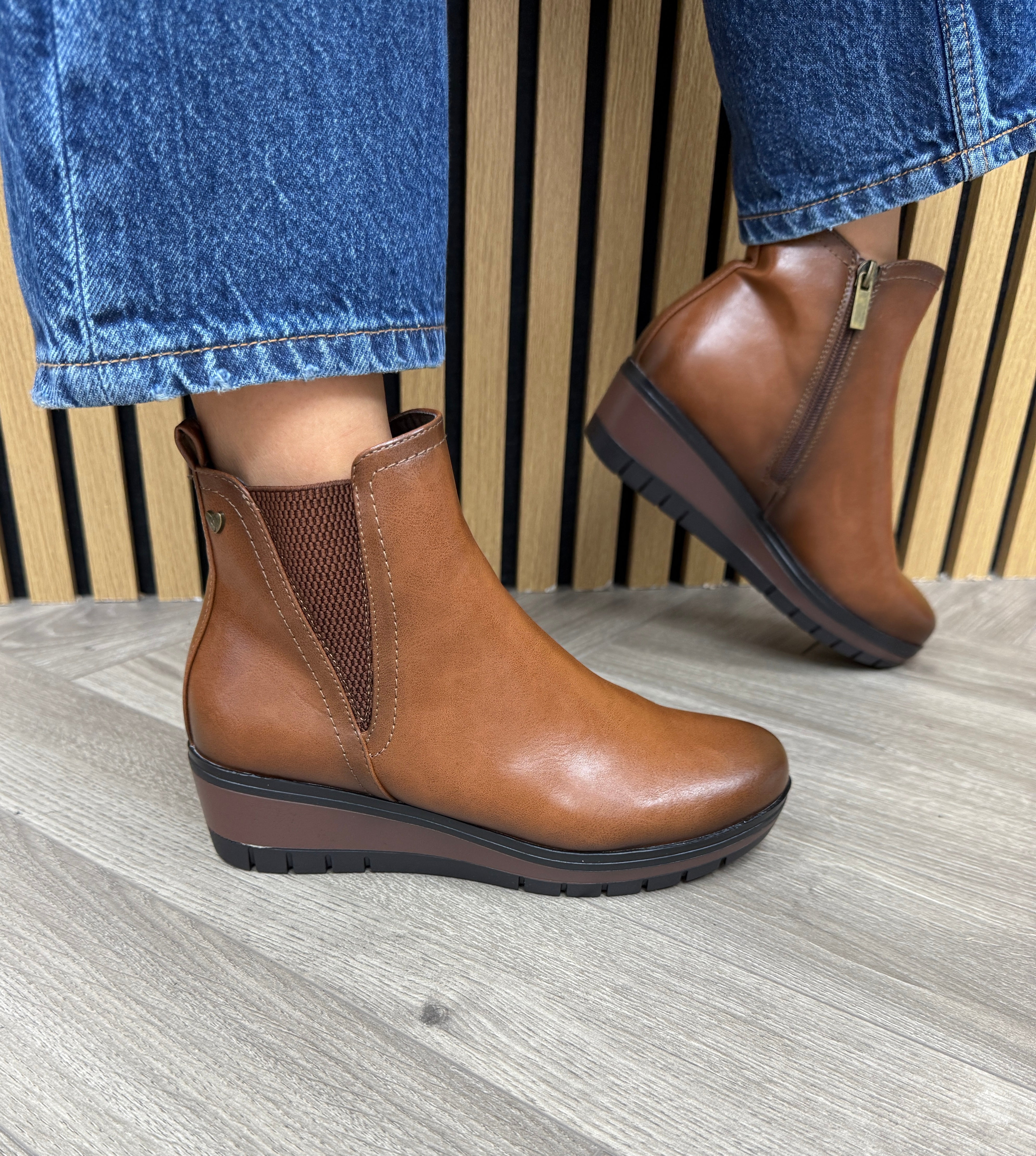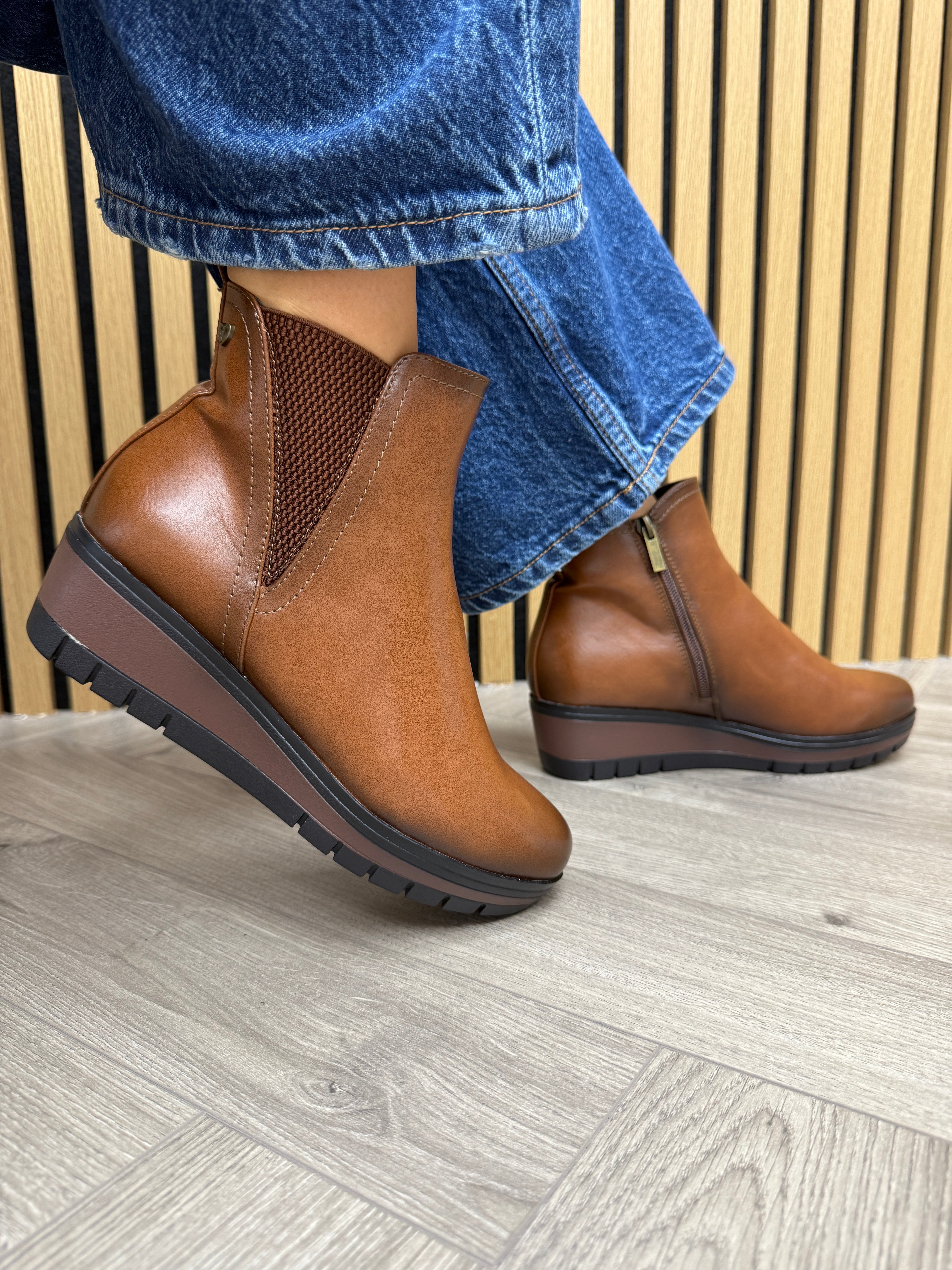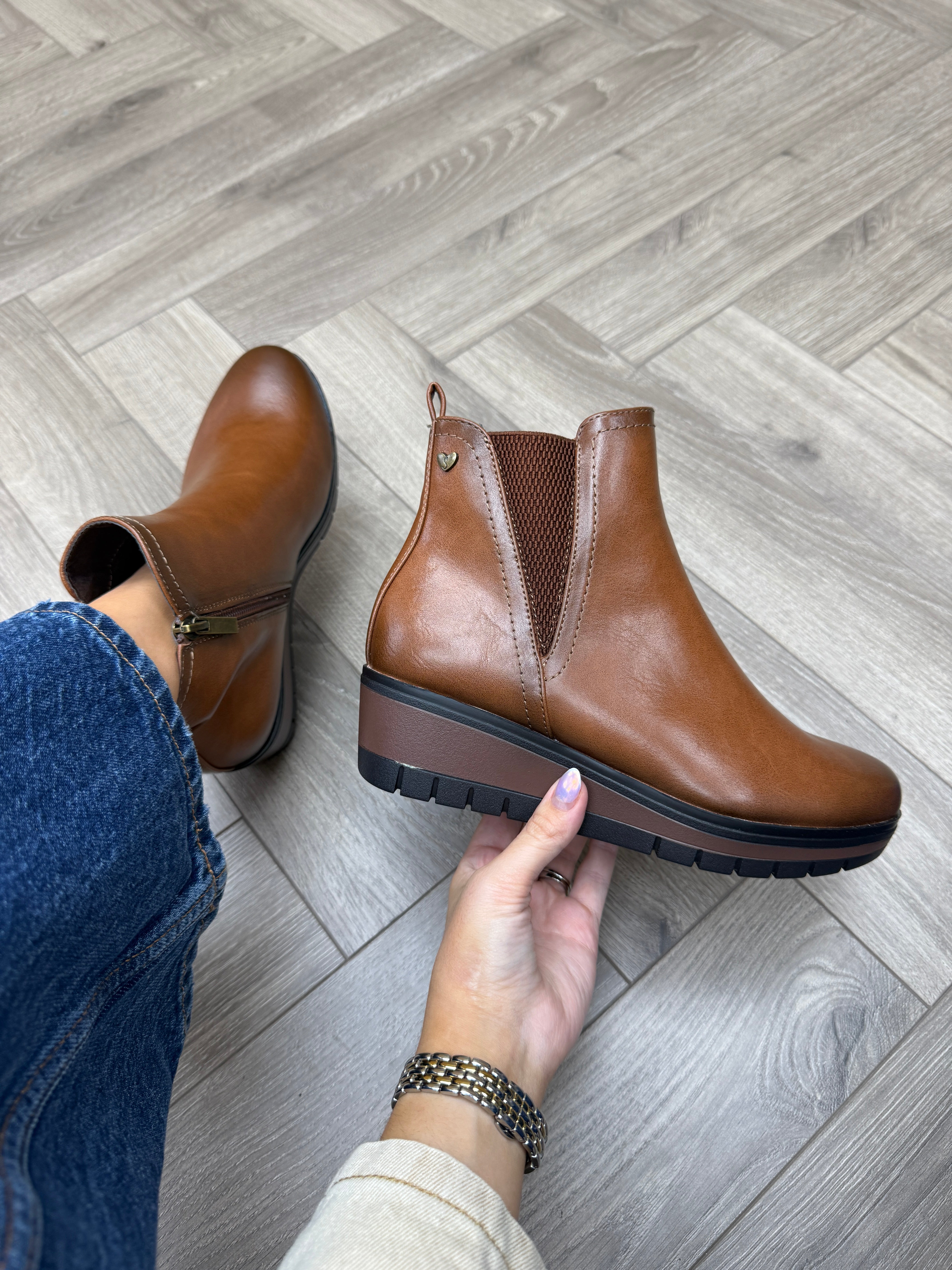Susst ‘Hilton25’ Low Wedge Boot (SU3) - Tan PU
