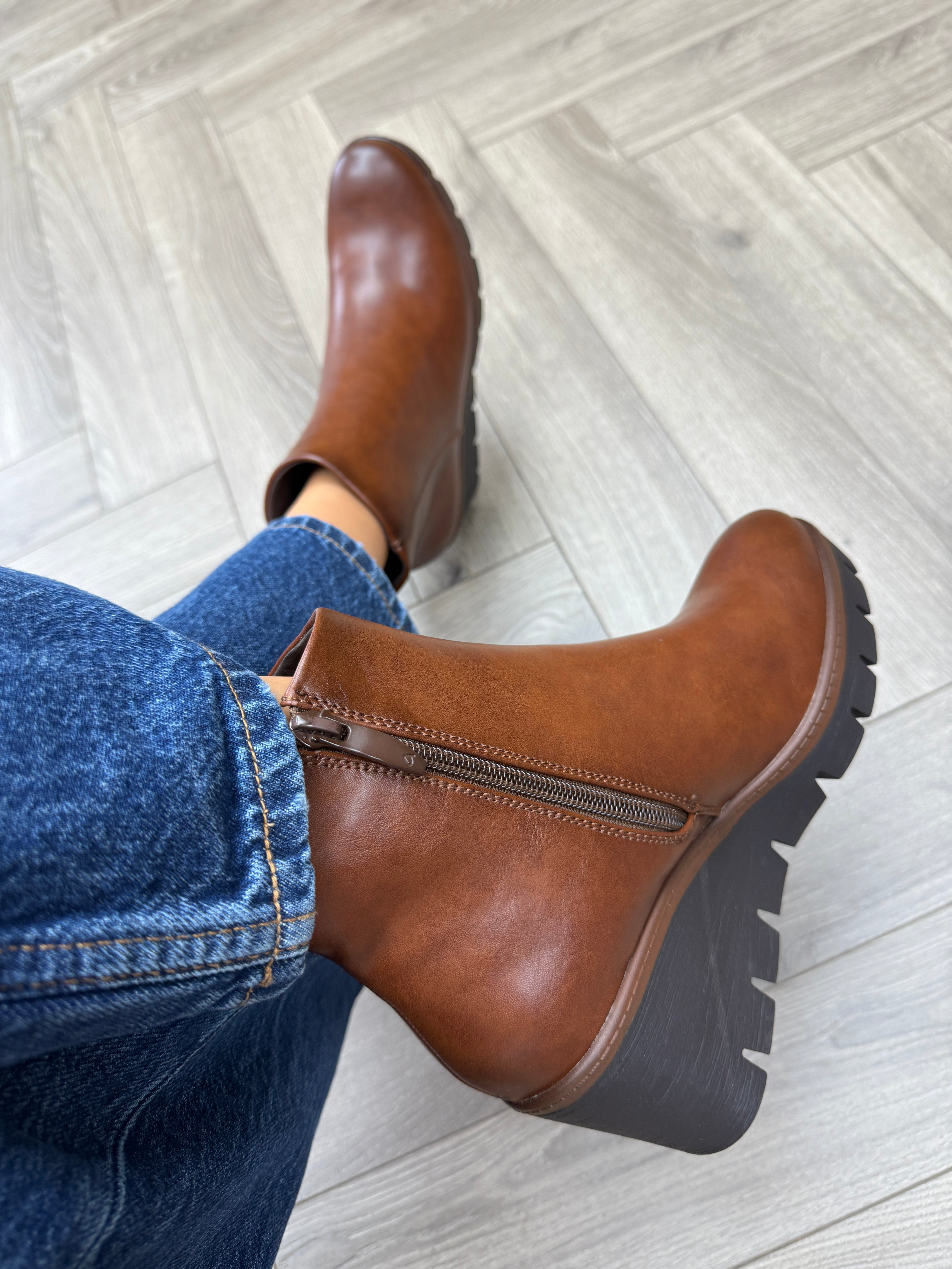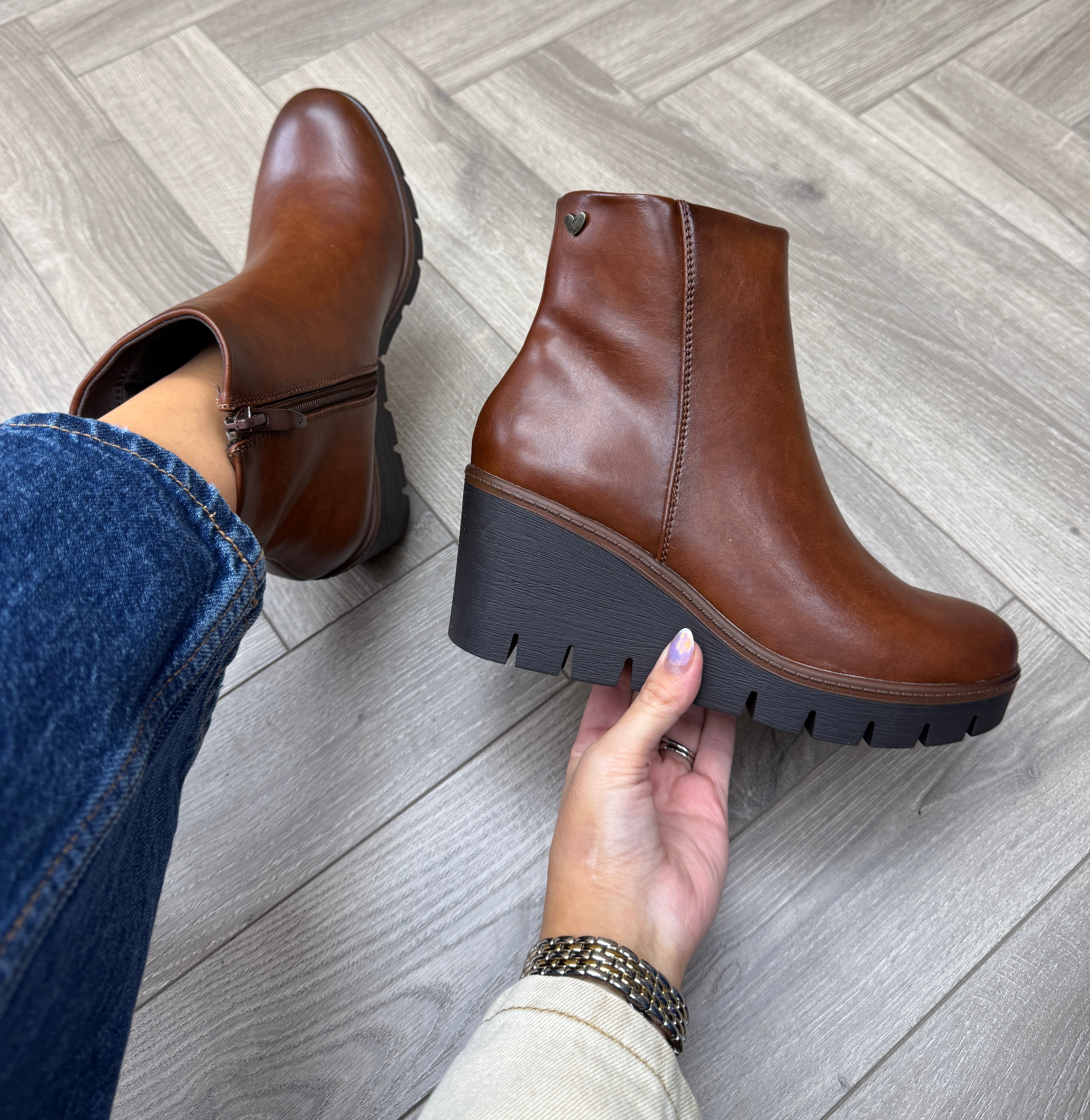 Susst (SU8) ‘Buddy25’ Wedge Ankle Boot - Cognac PU