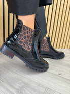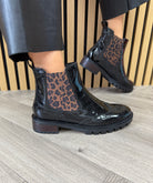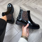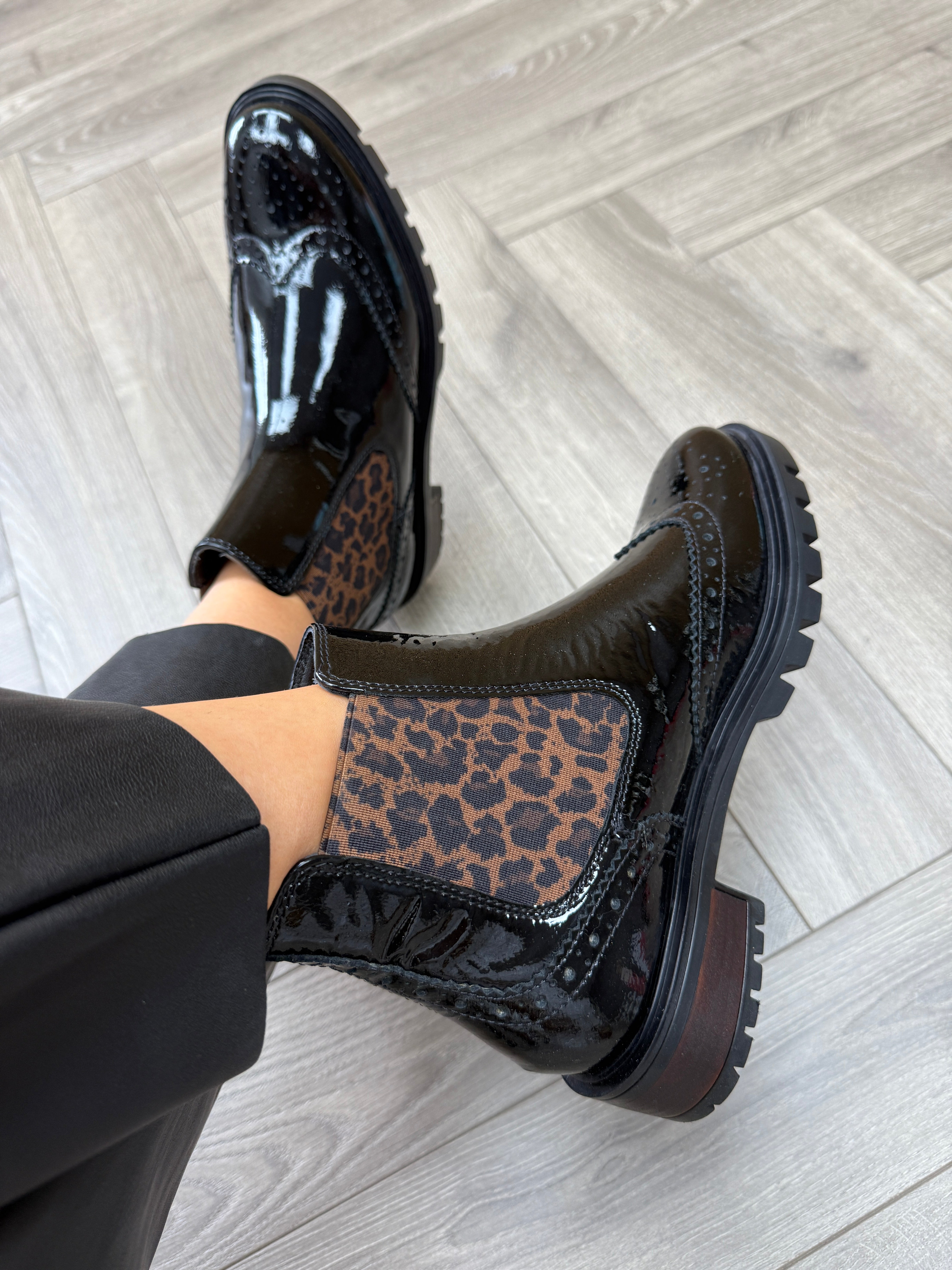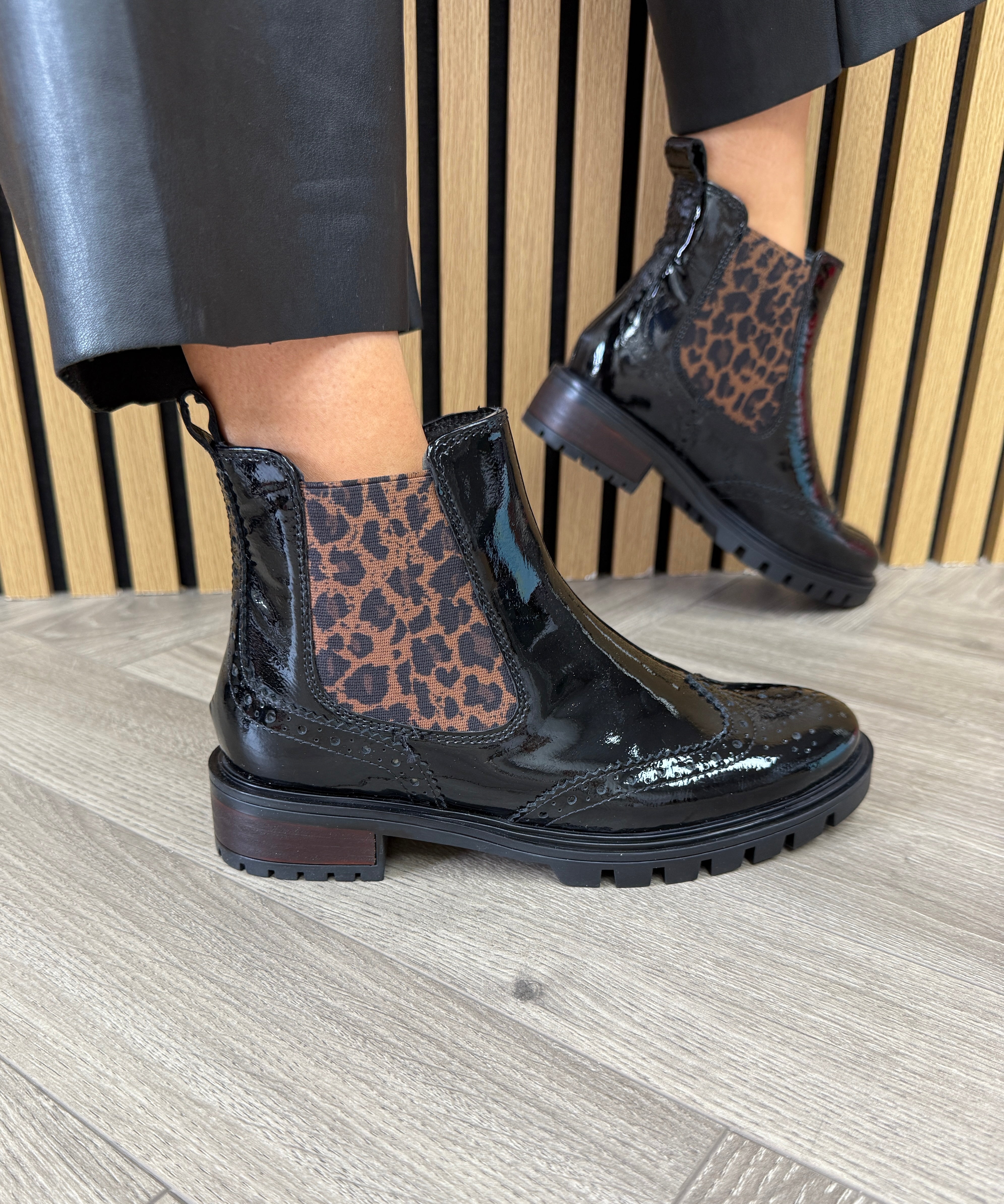 Ara (A6) 12-29514 ‘Muranolack’ Patent Chelsea Boot With Leopard Gusset - Schwarz