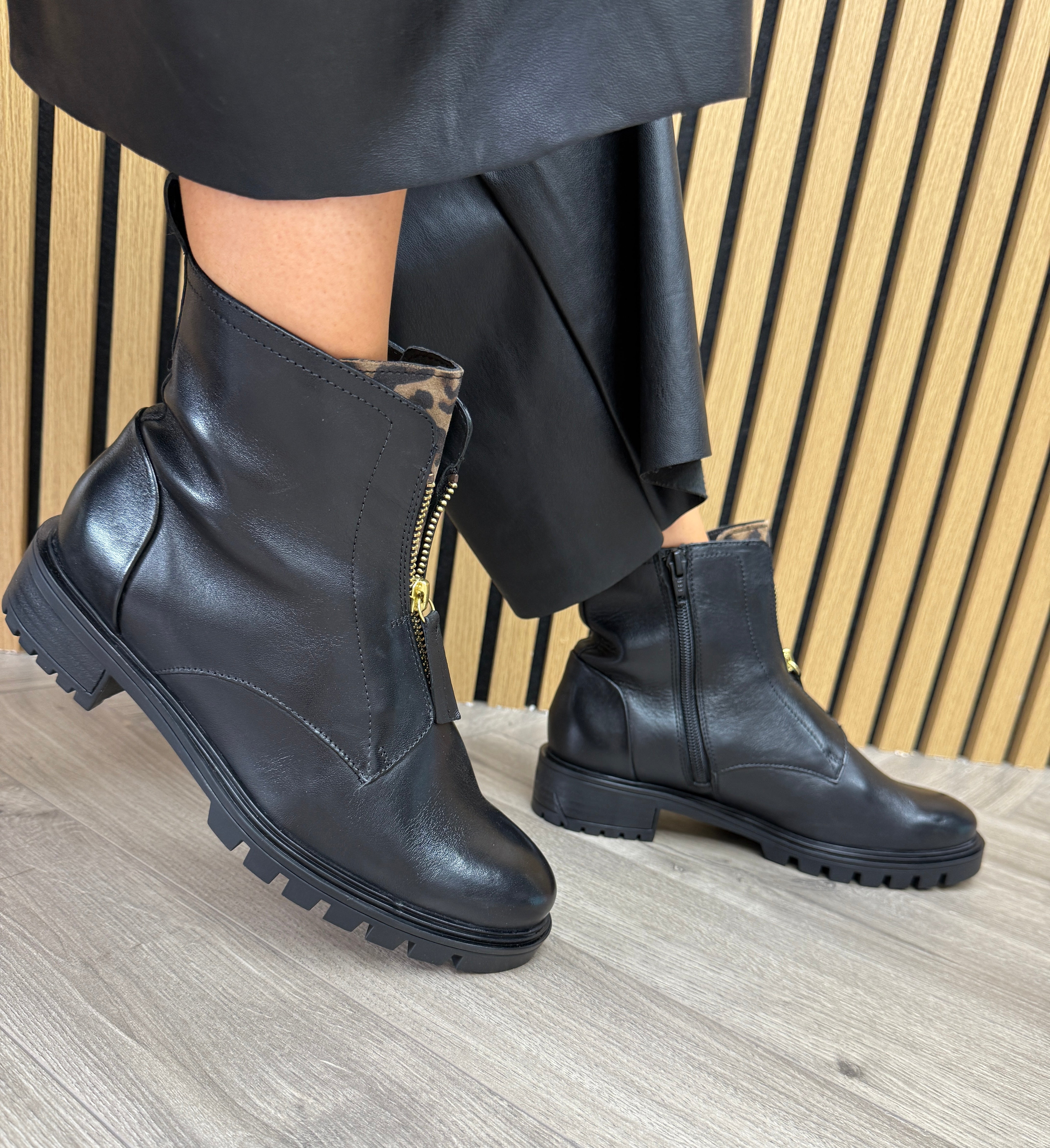 Ara (A7) Front Zip Boot With Leopard Tongue 12-29520 - CountryCalf, Leo Shwarz, Nuts