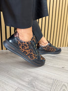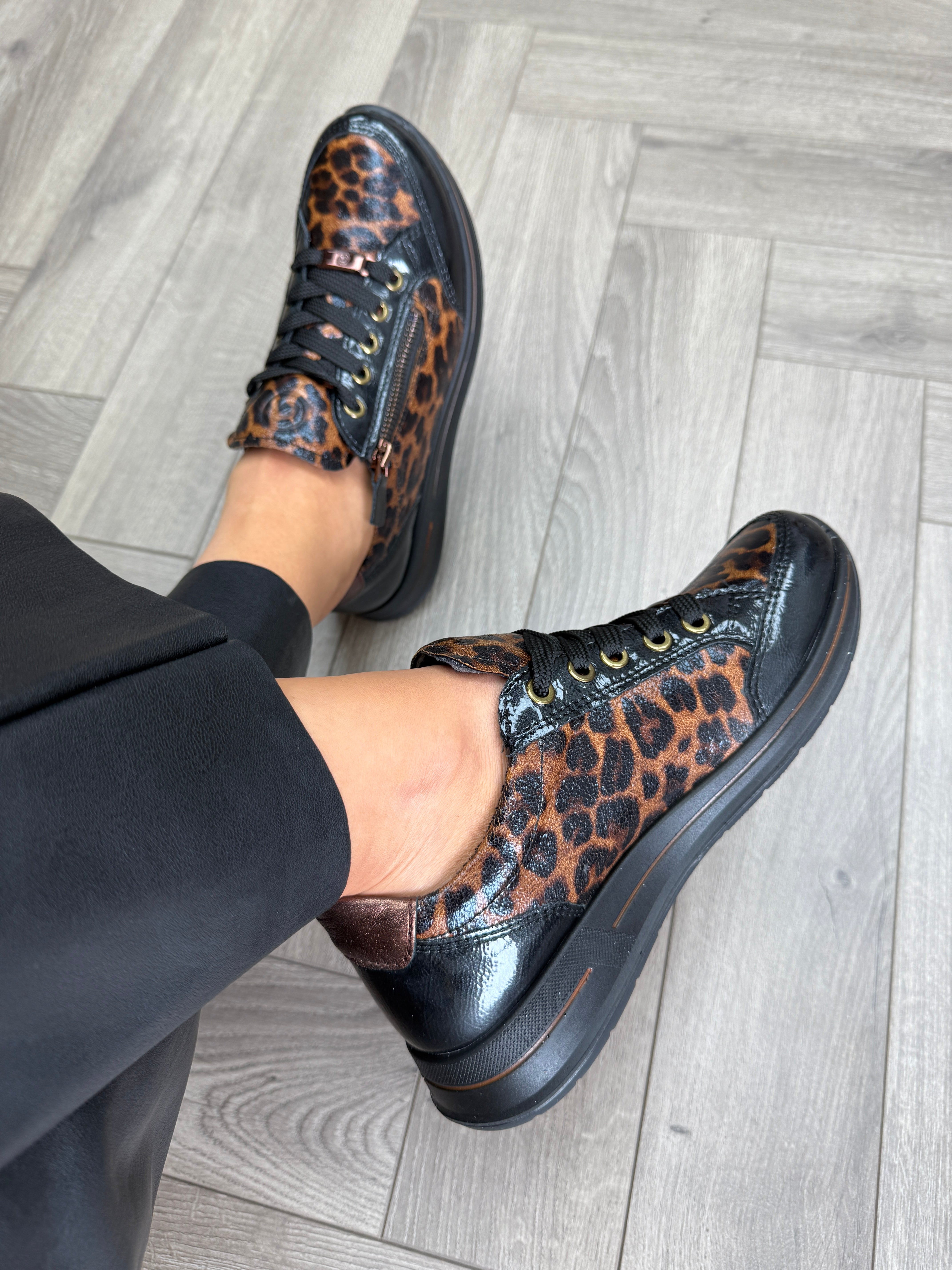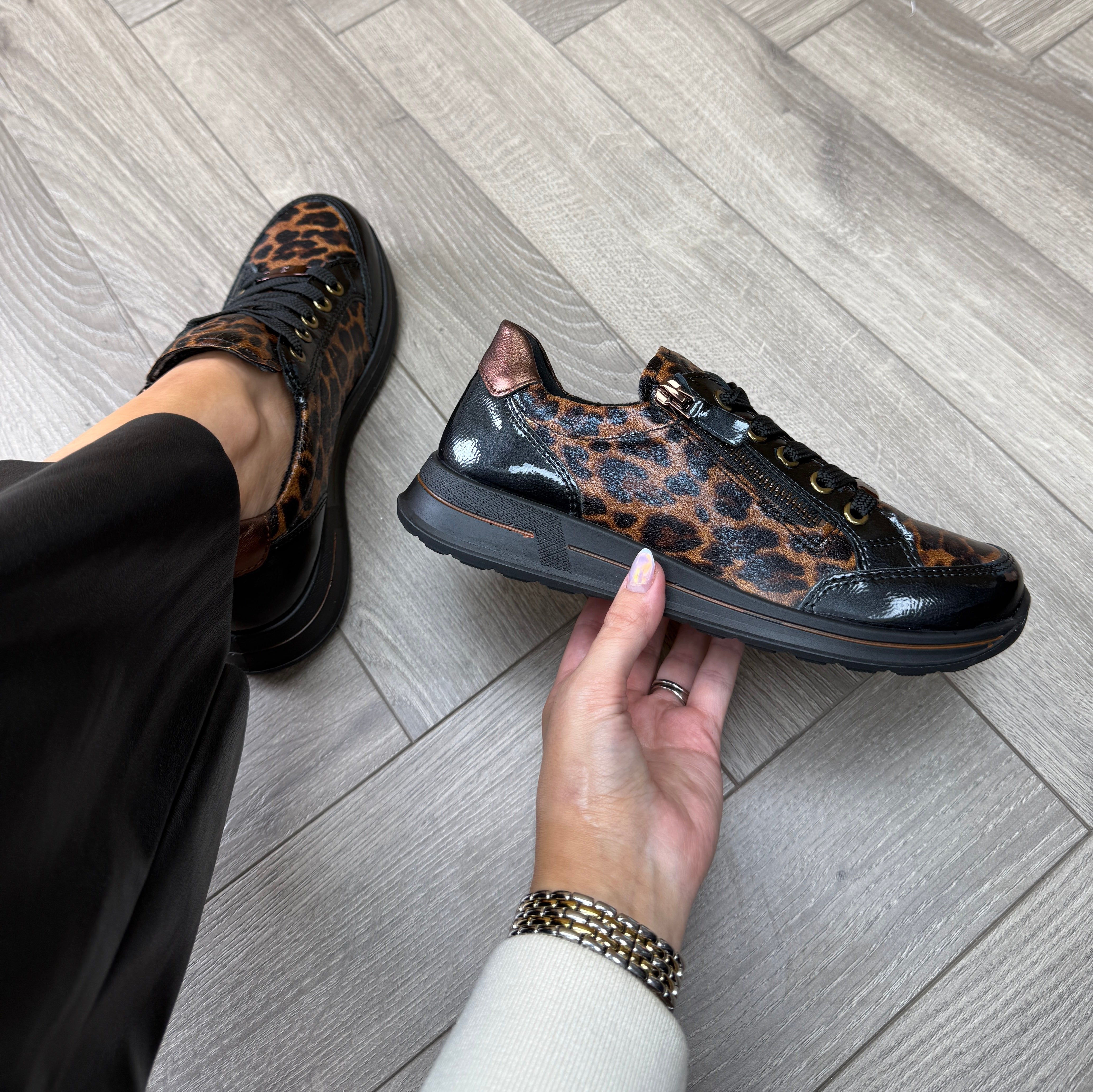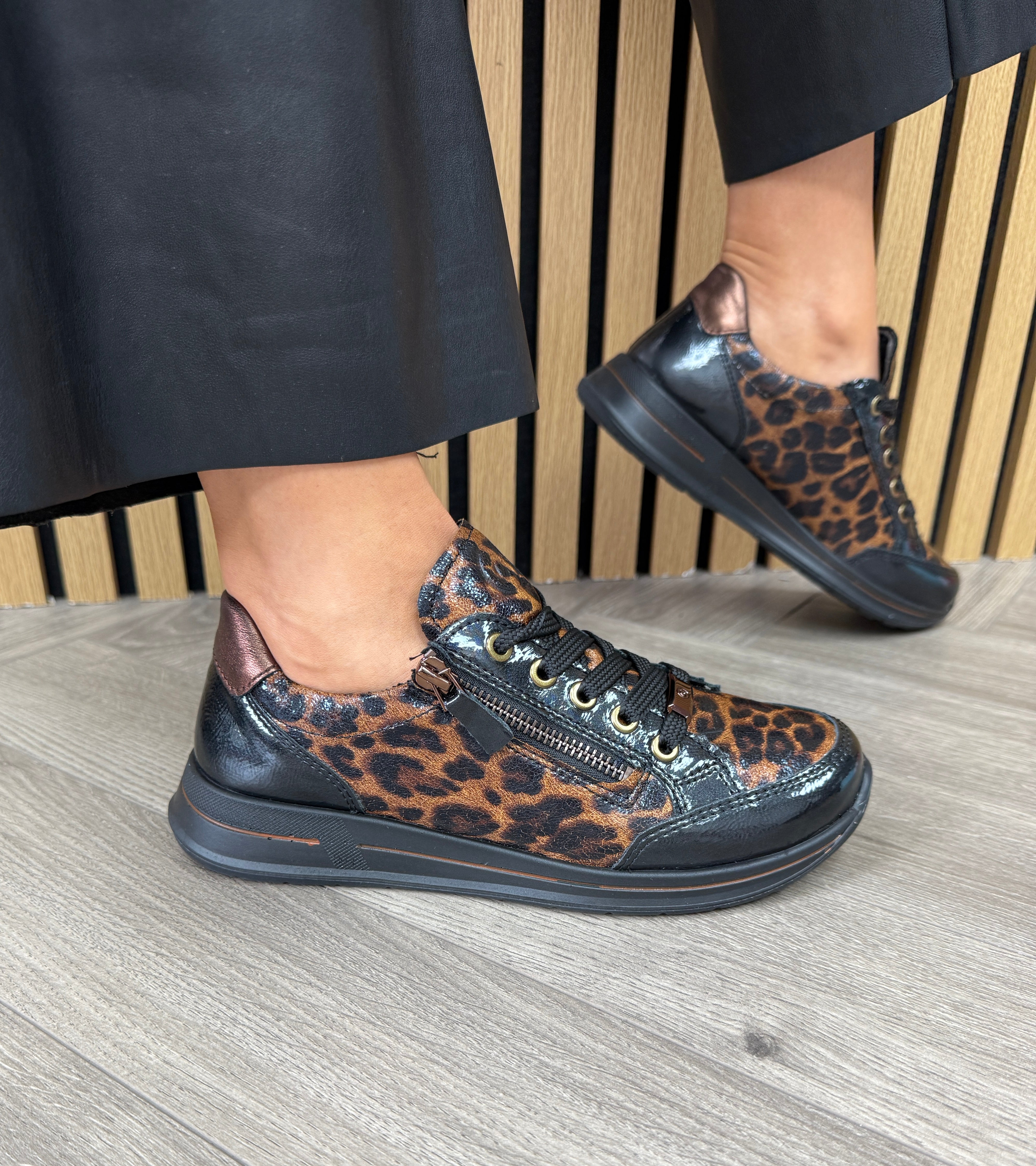 Ara (A8) 12-54801 Leopard Print Zip Trainer - Schwarz, Nuts, Mocca