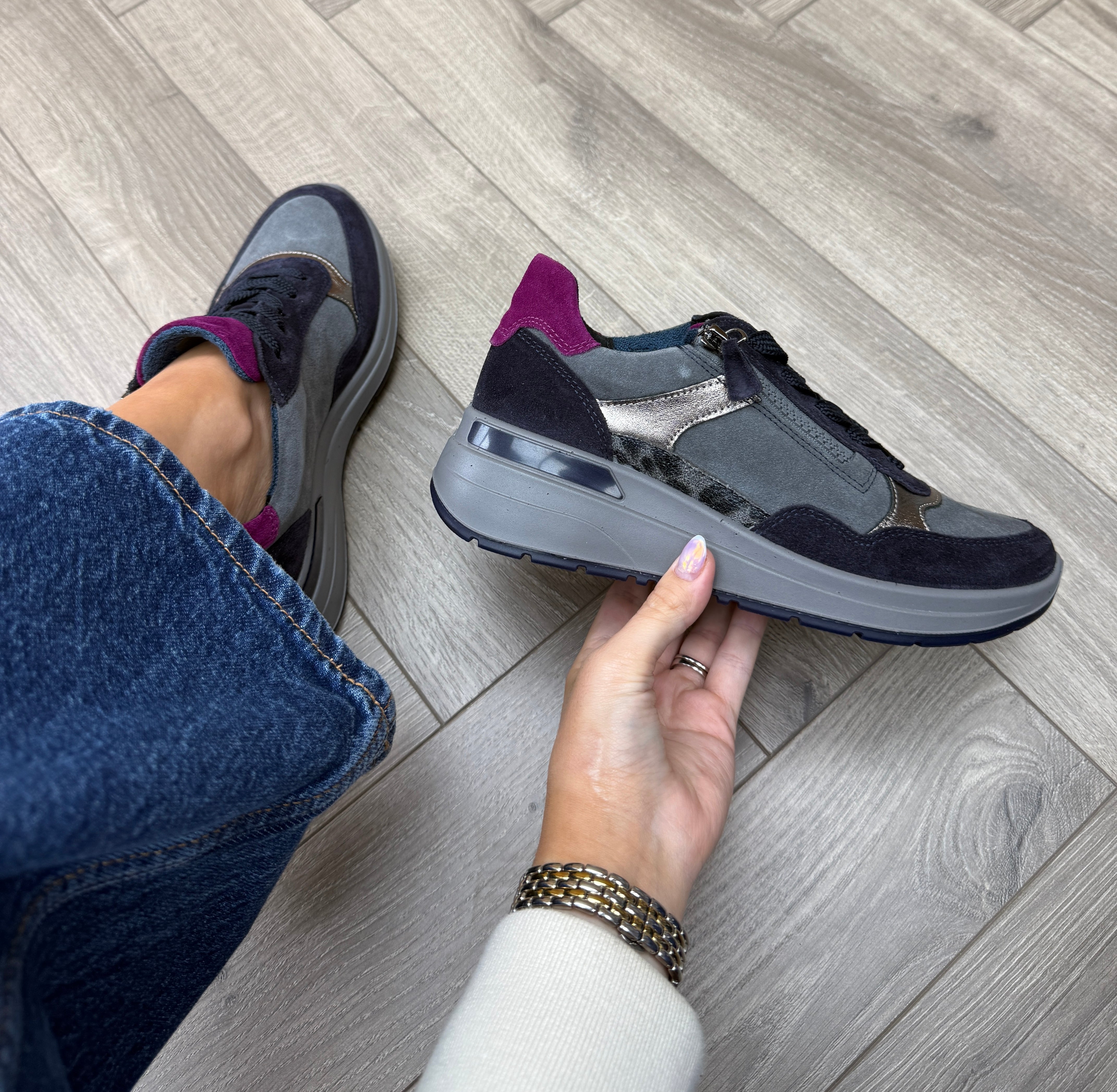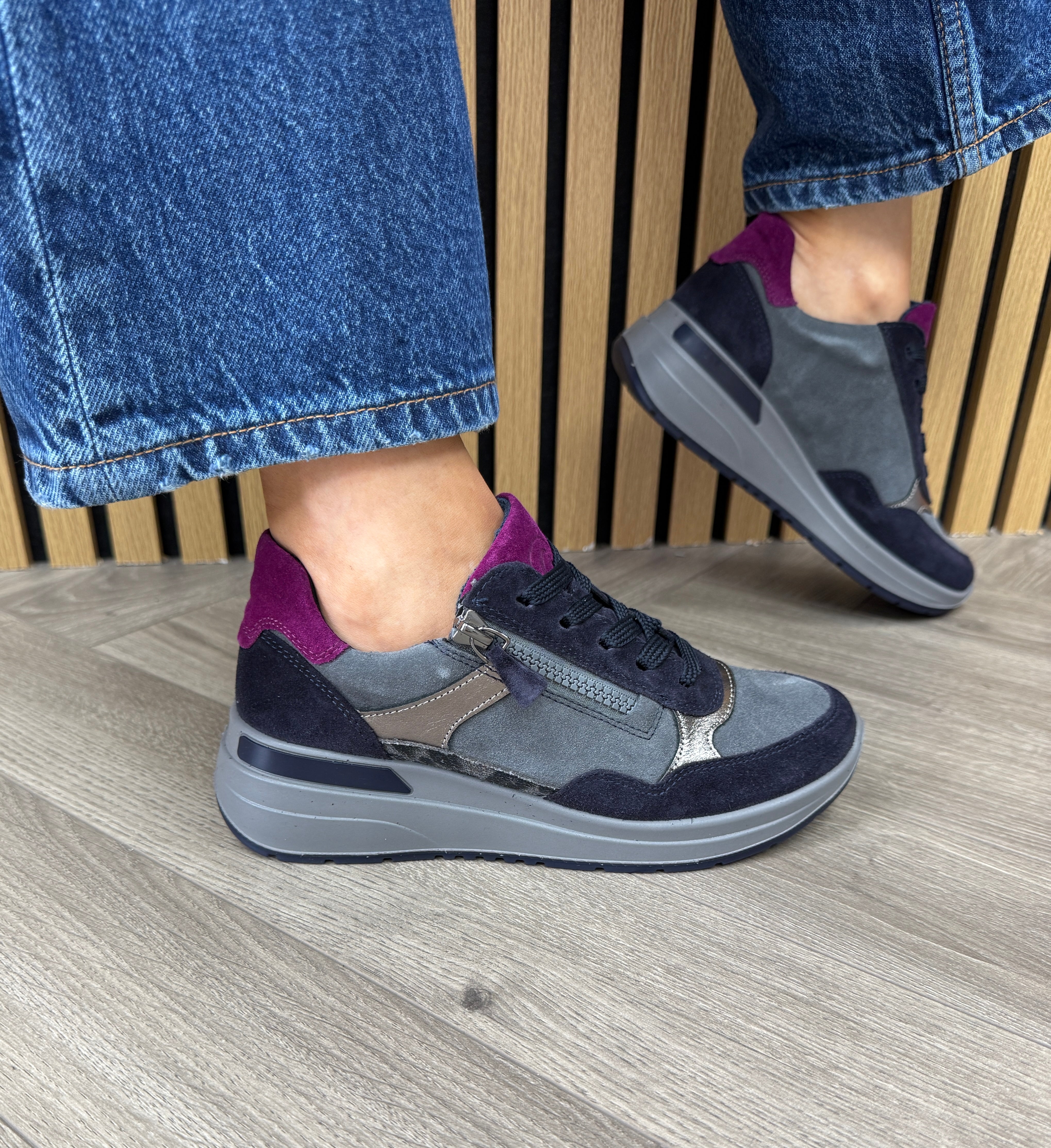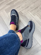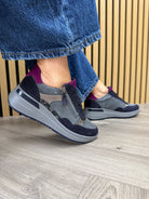 Ara 12-57702-22 Wedge Trainer With Coloured Heel and Tongue - Blu/Graphit/Cashmere/Steel (A1AW)