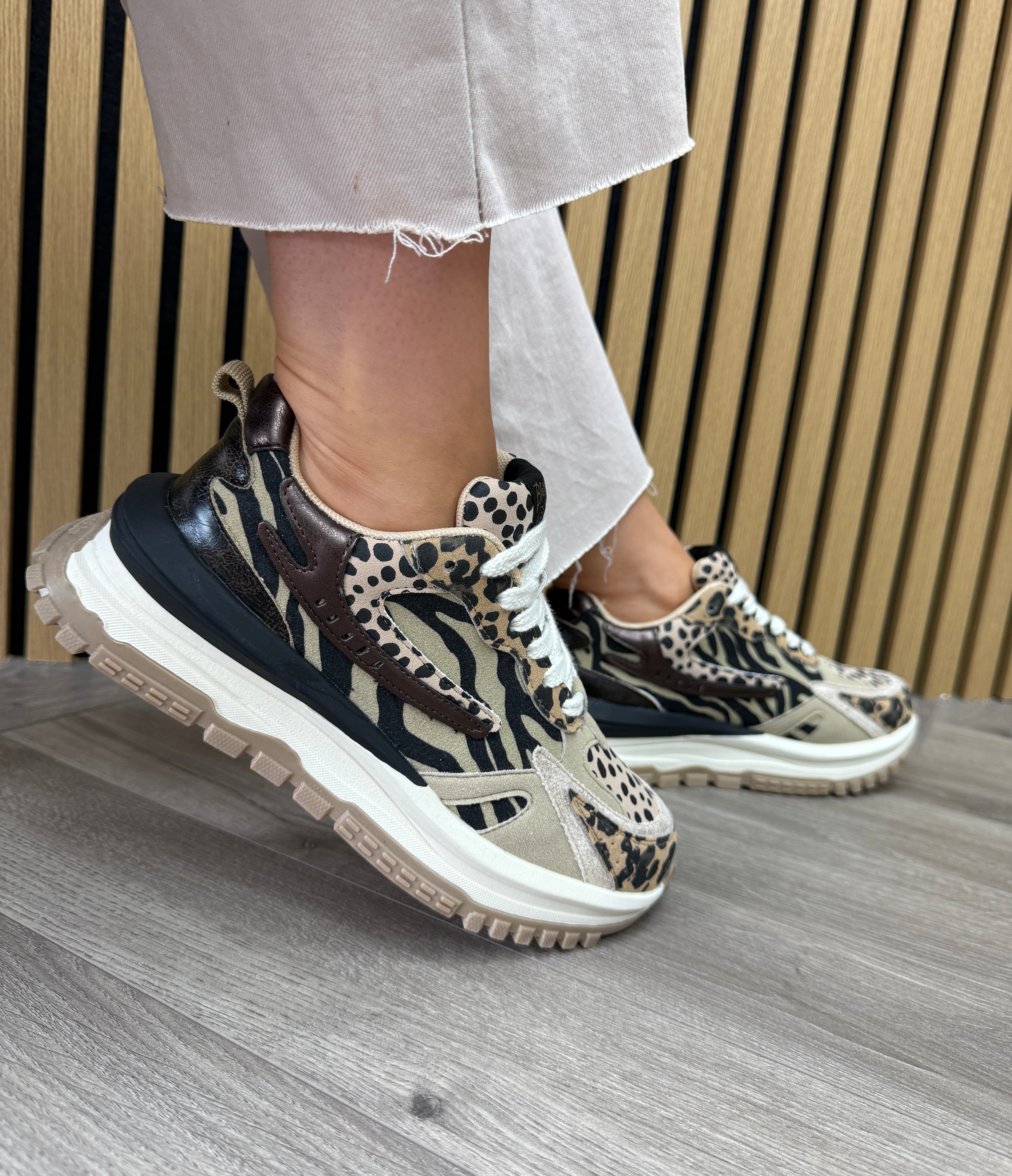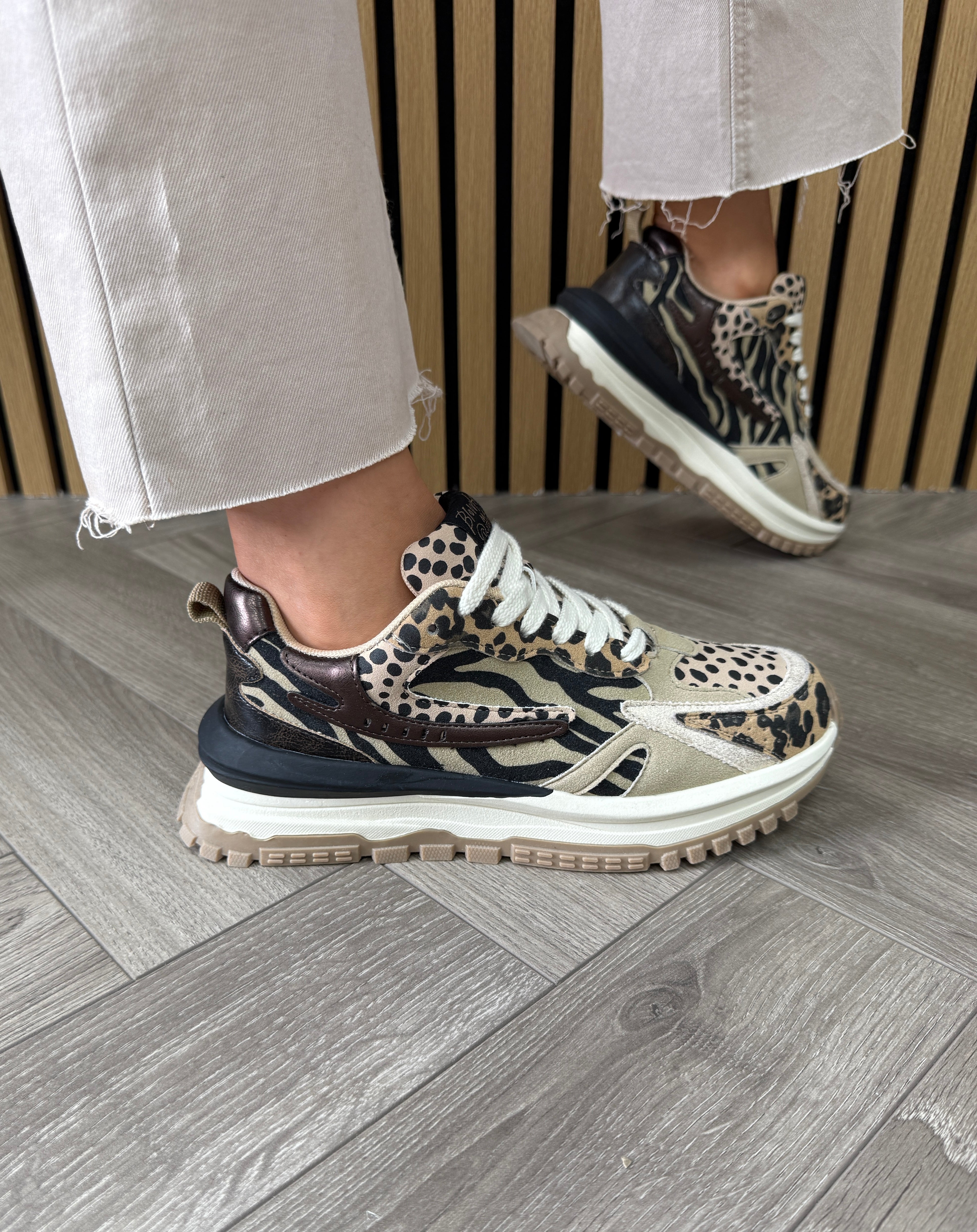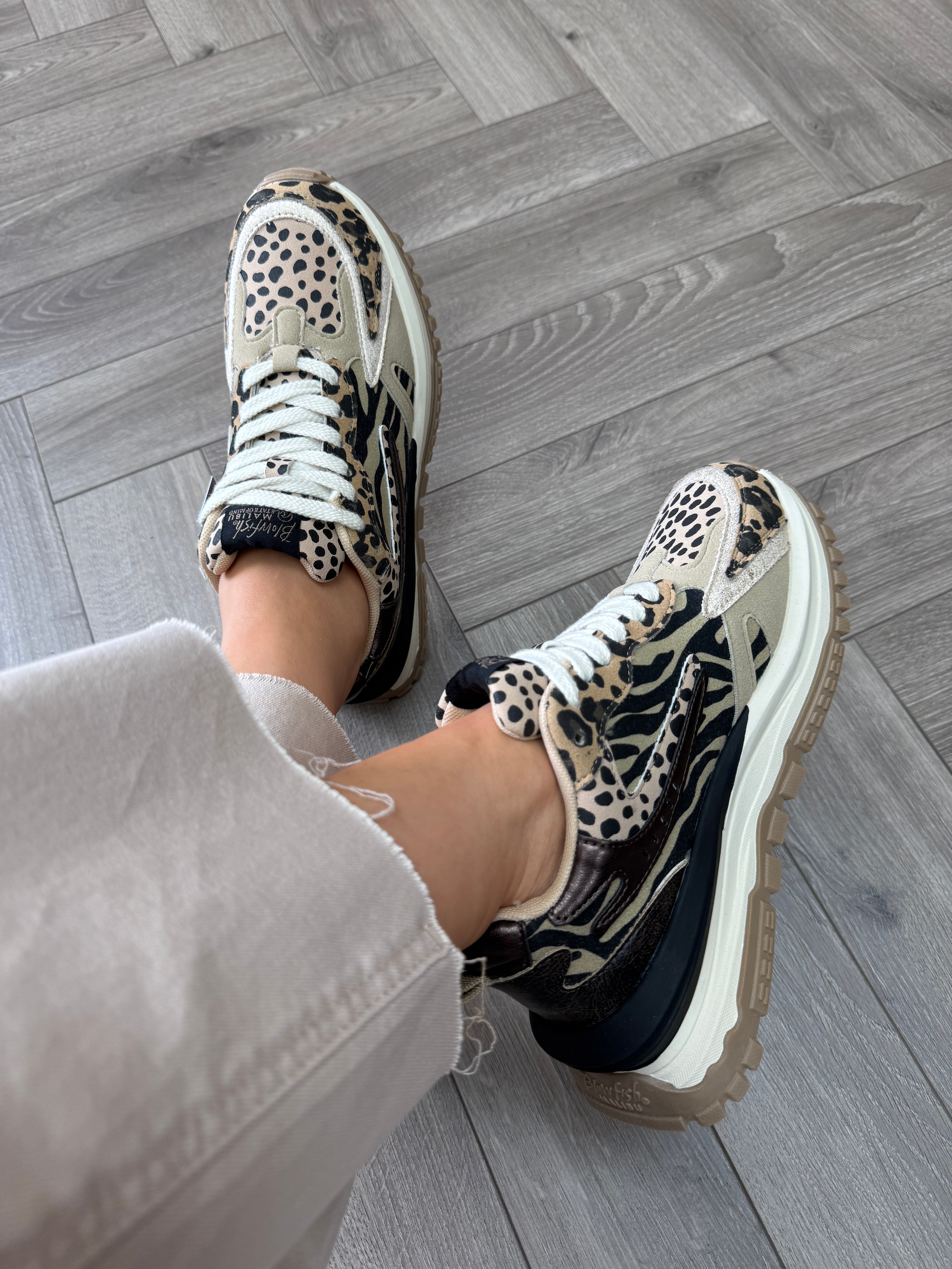 Blowfish (AW25) J2104F4256 Sporty Trainer With Animal Print - Leo/TanBlks/Delprd (BF3AW)