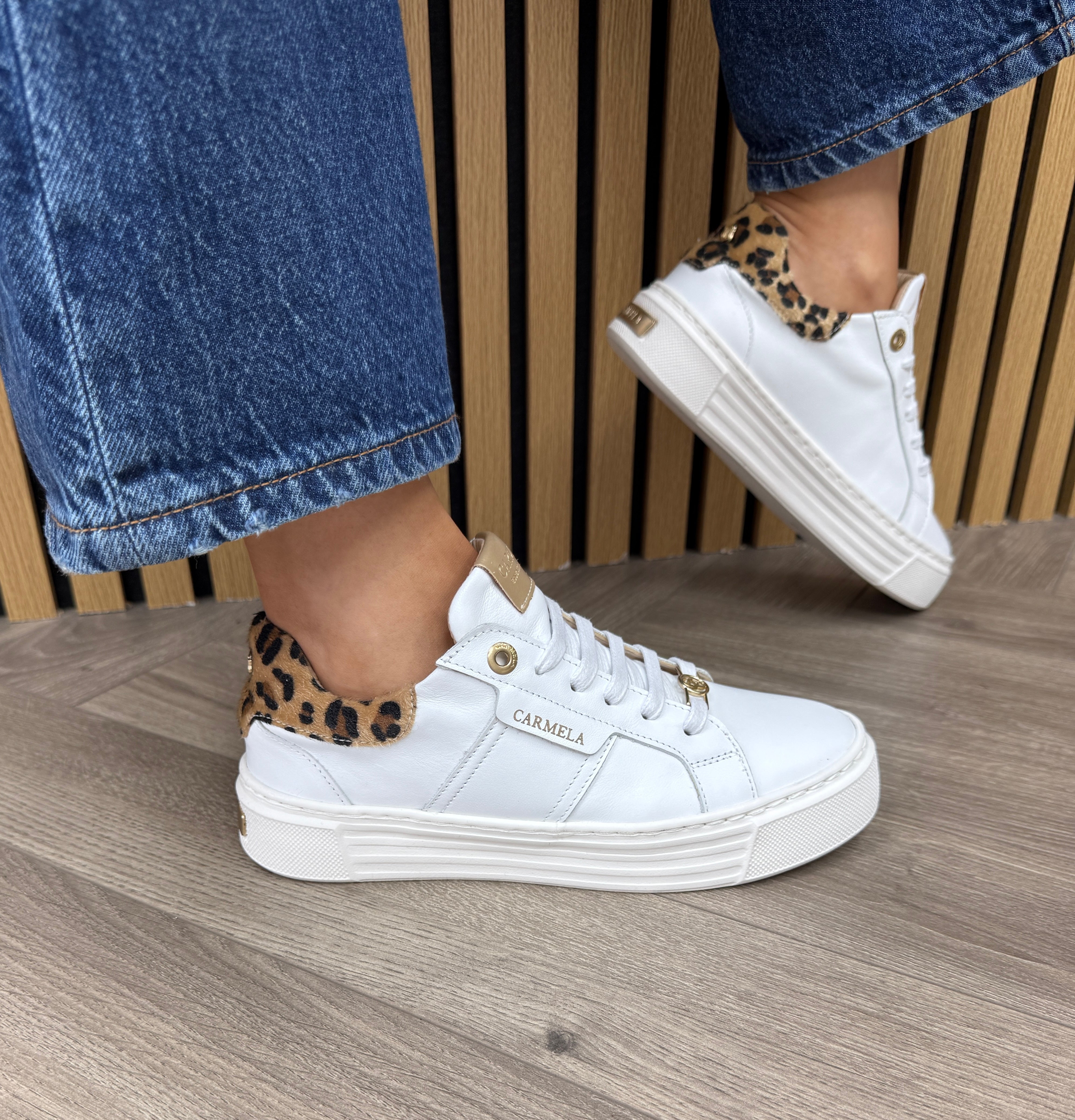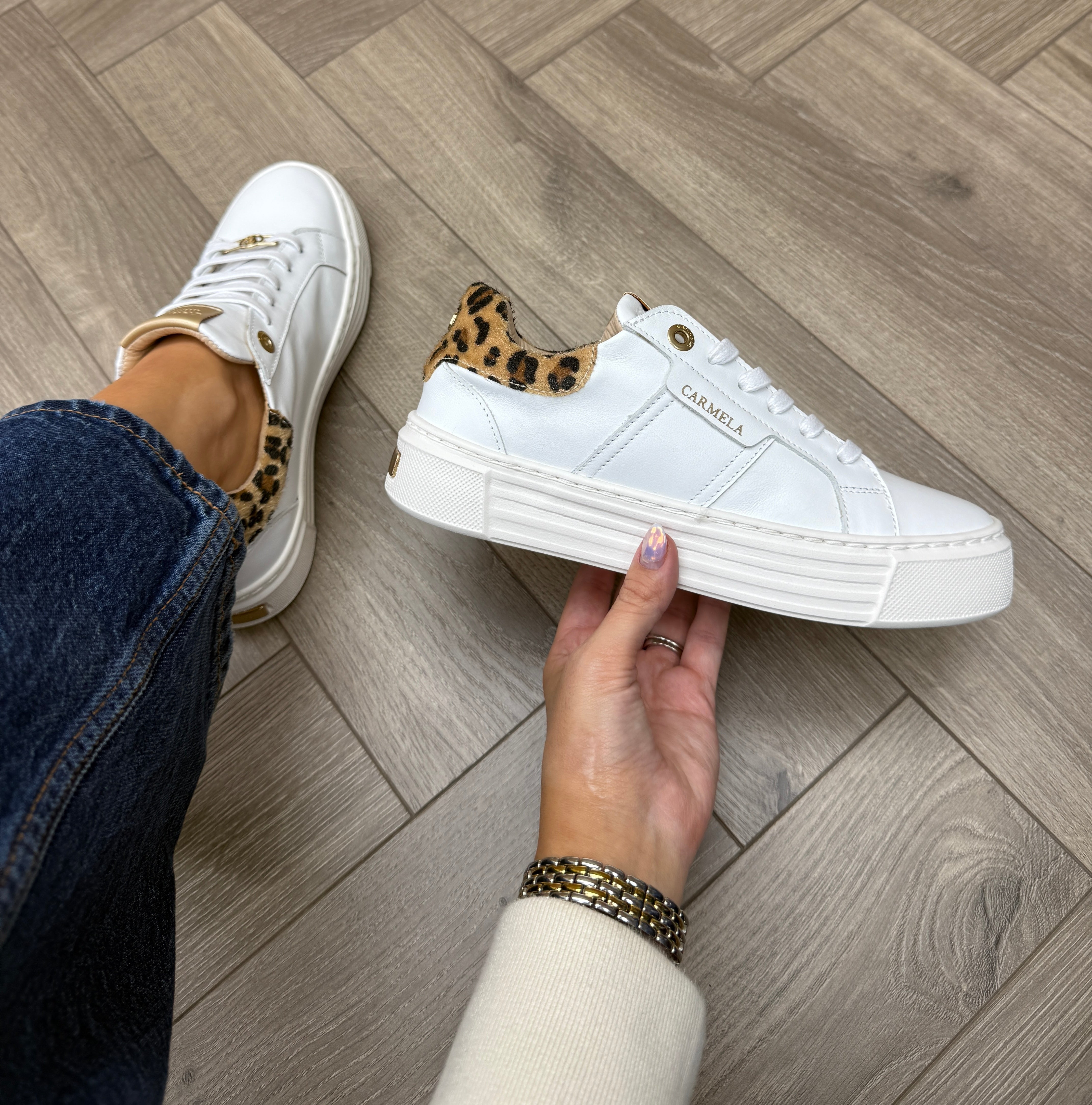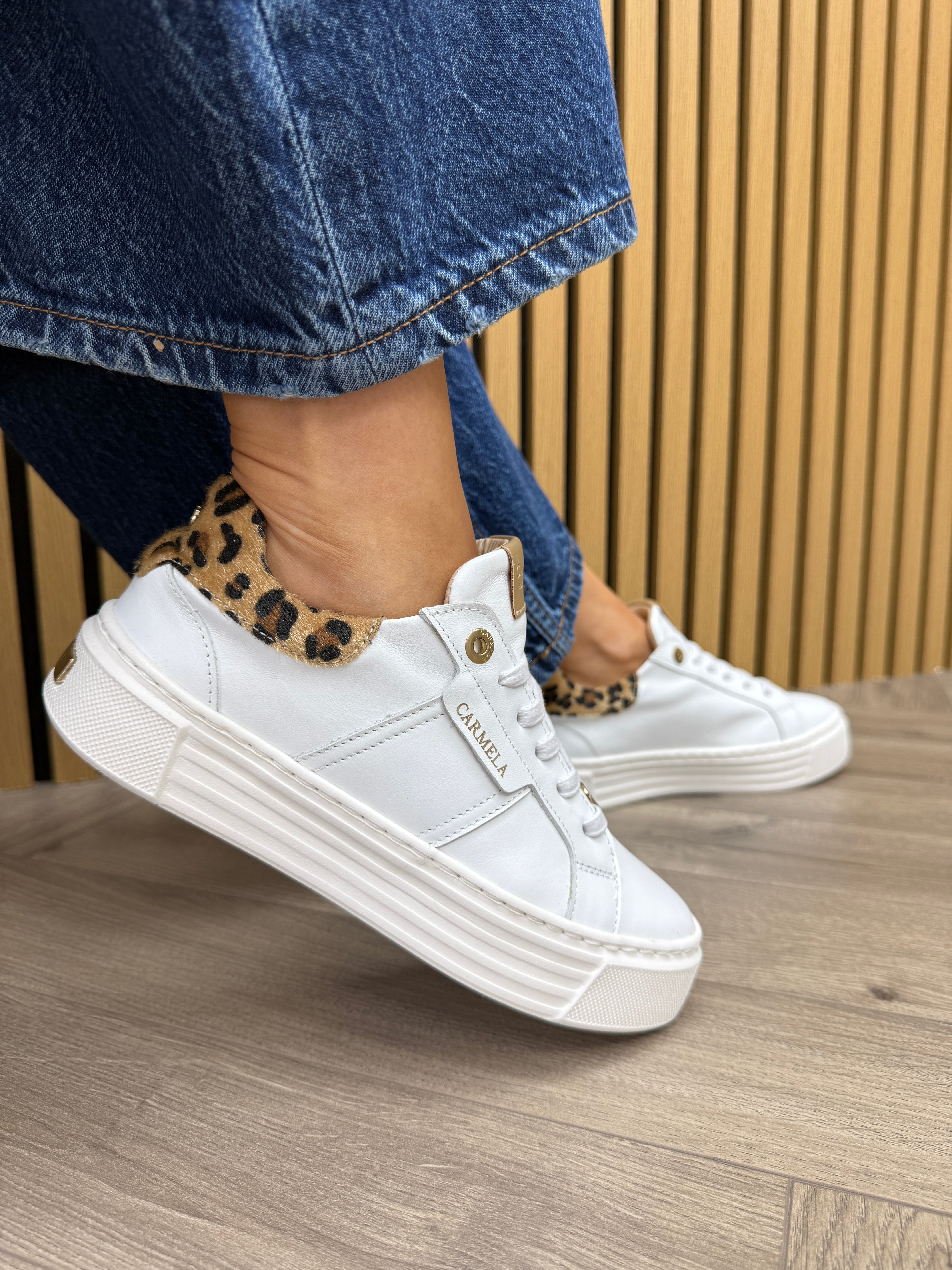Carmela 162696 Platform Trainer With Leopard Heel - Z.Piel Blanco (C6AW)