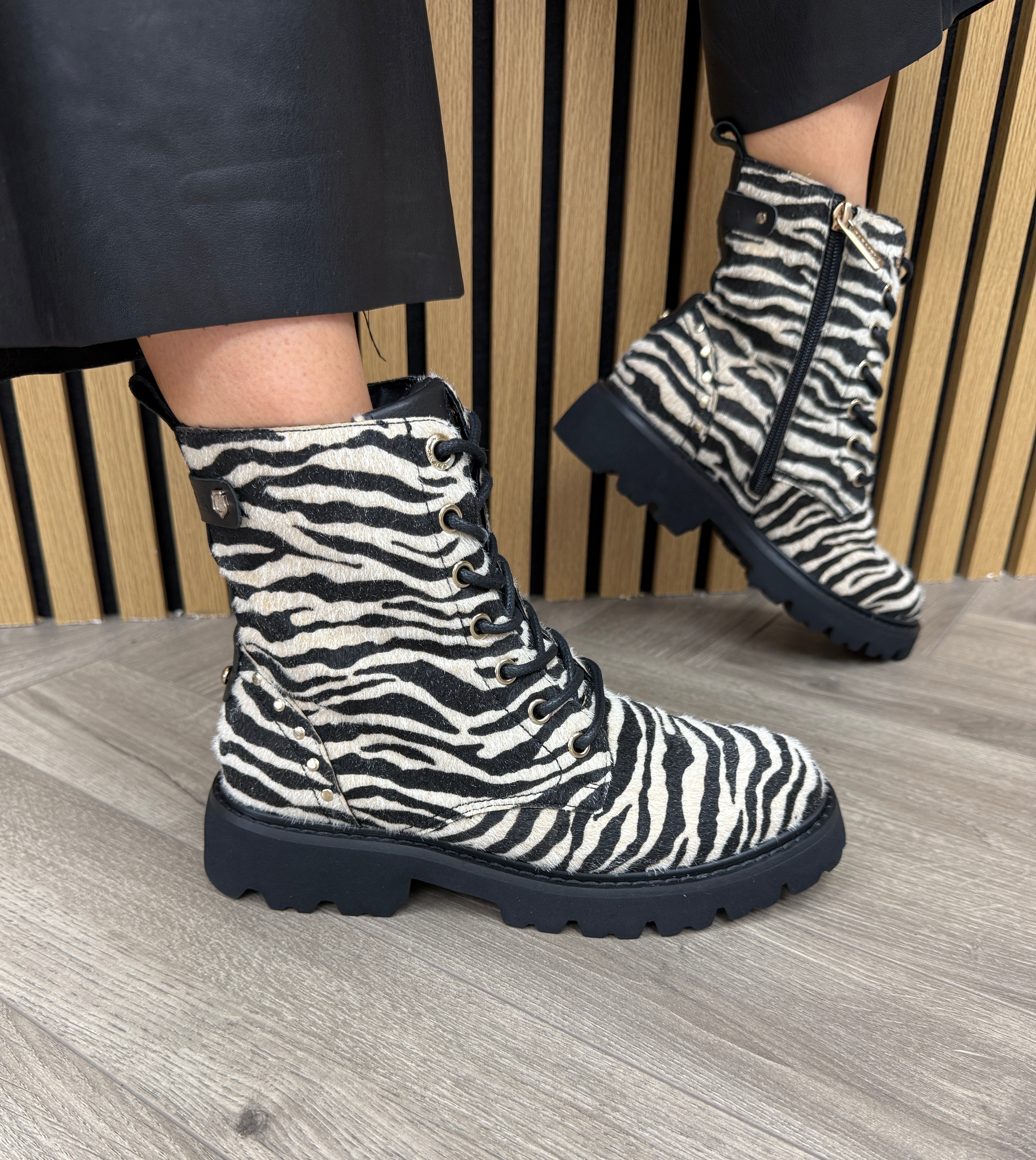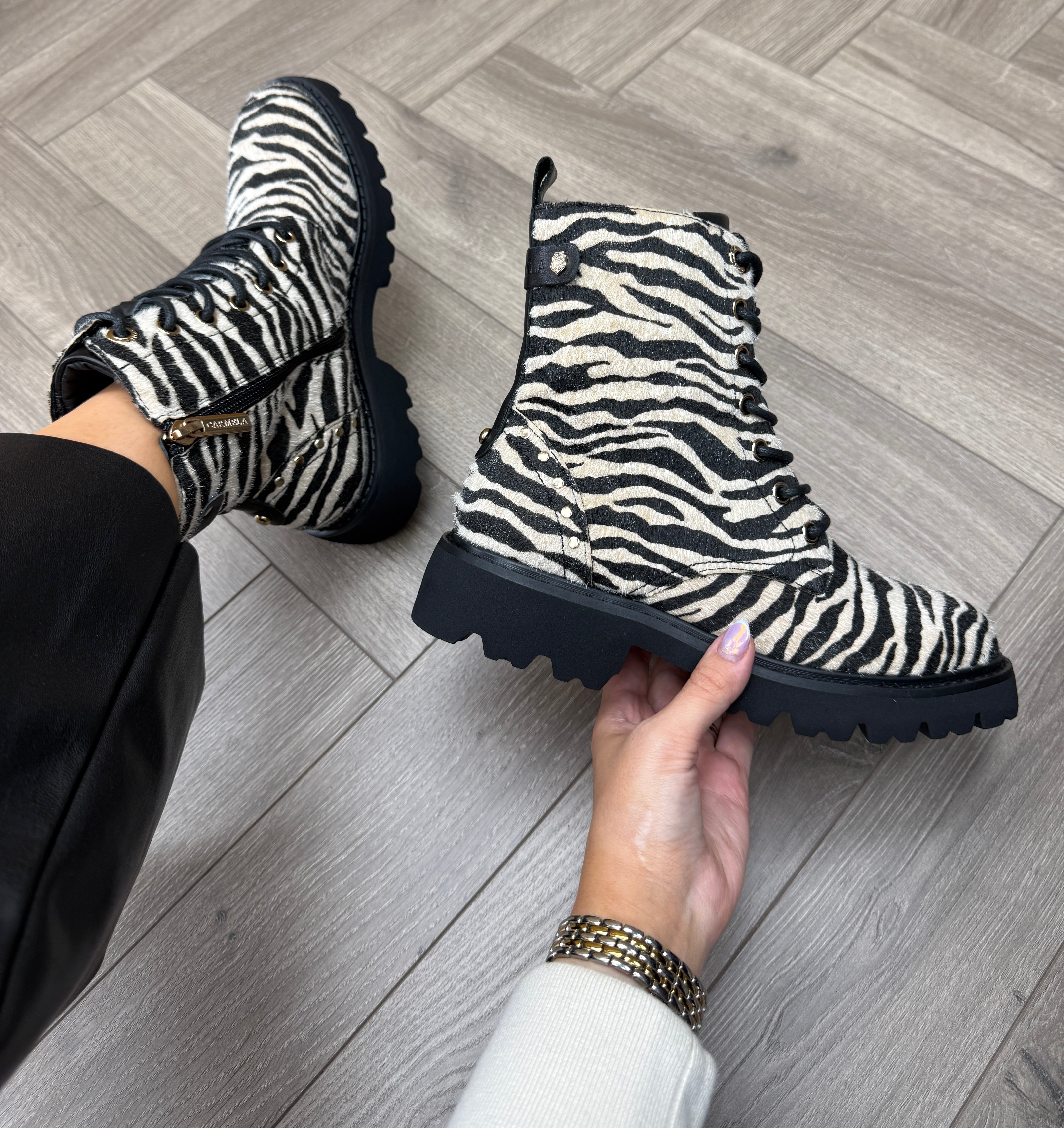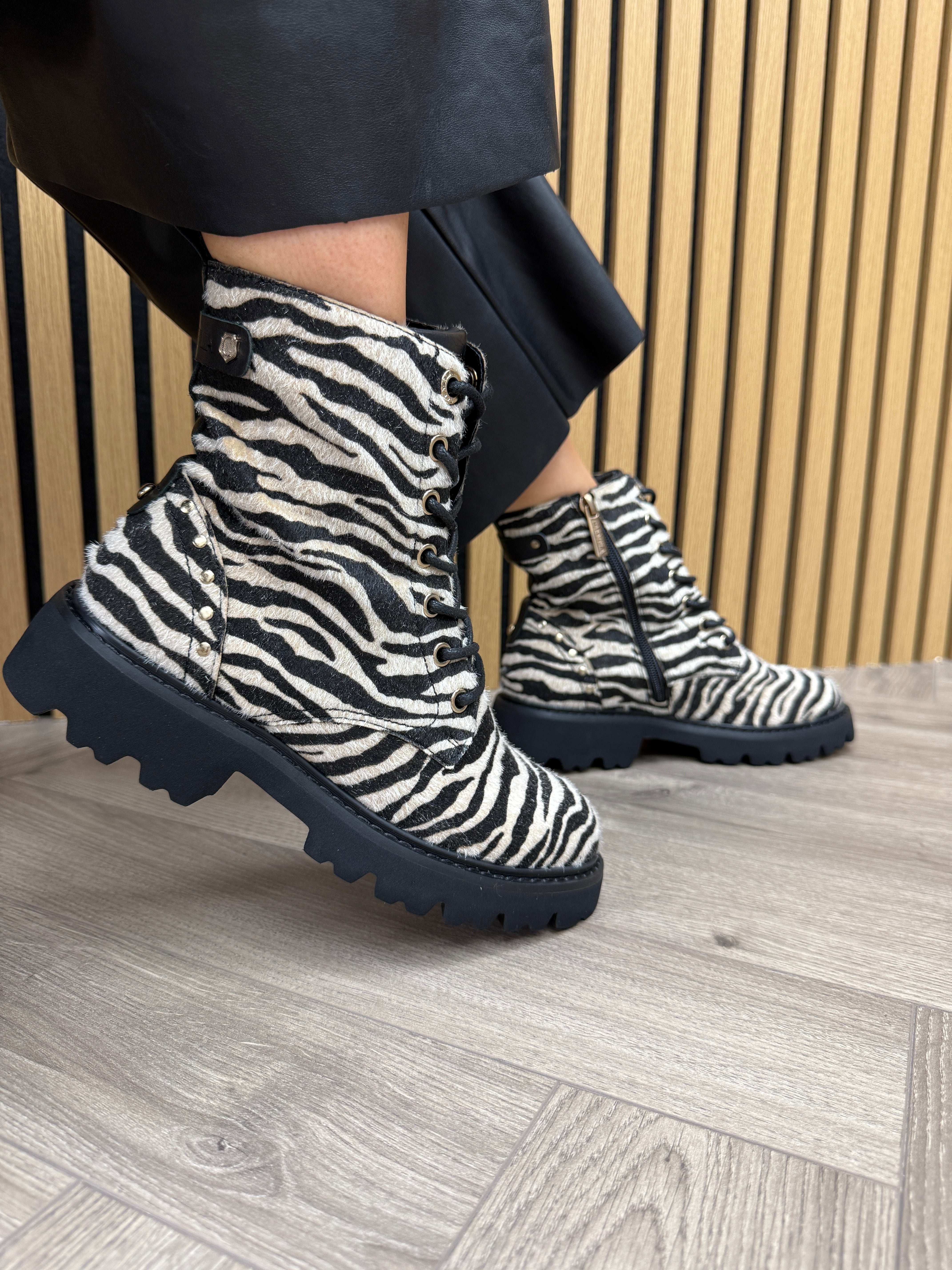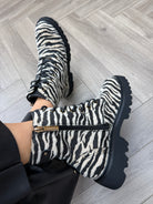 Carmela (C18) Zebra Print Biker Boot 162665 - Cebra