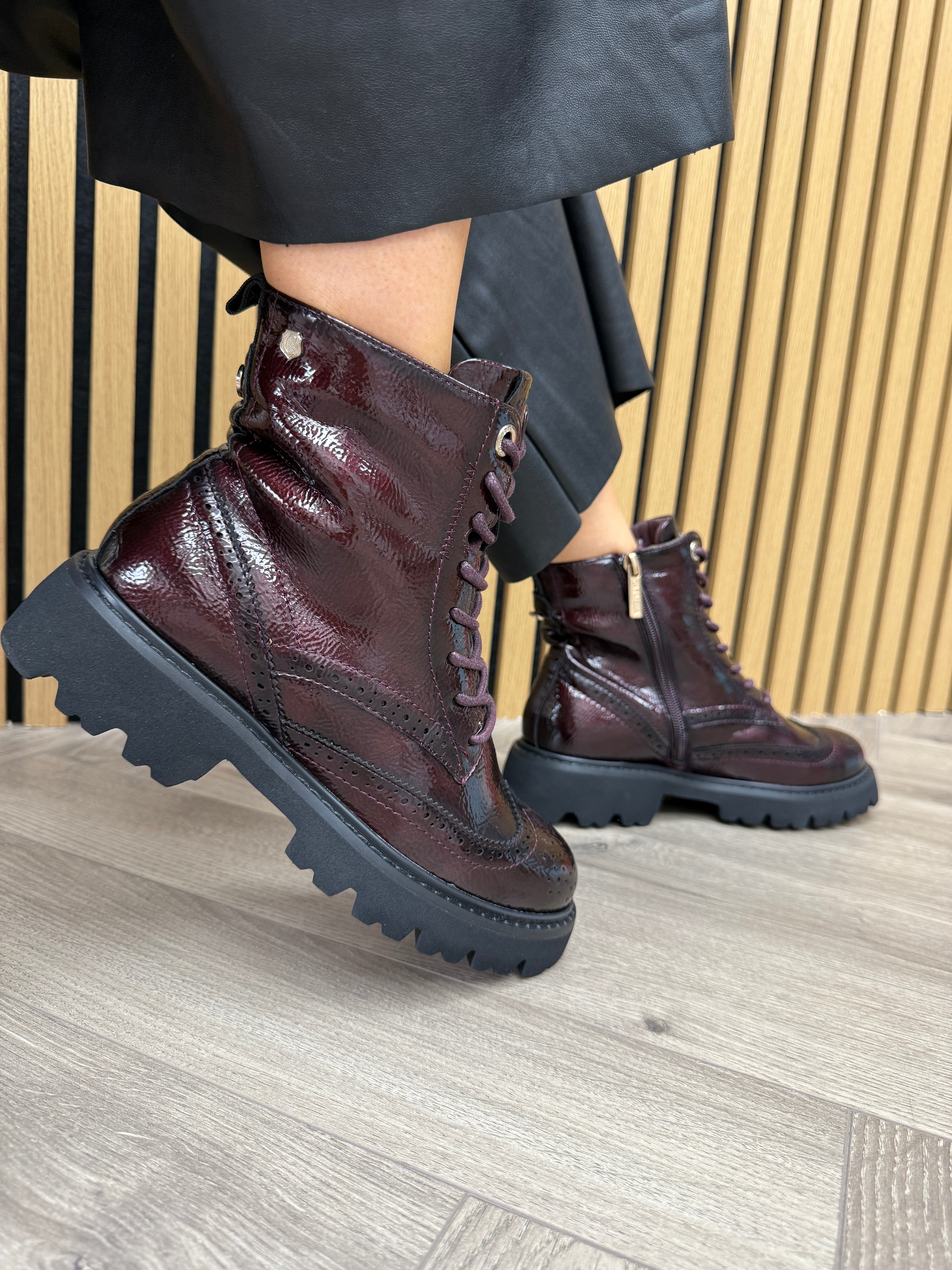 Carmela (C7) Patent Brogue Boot 162593 - Burdeos