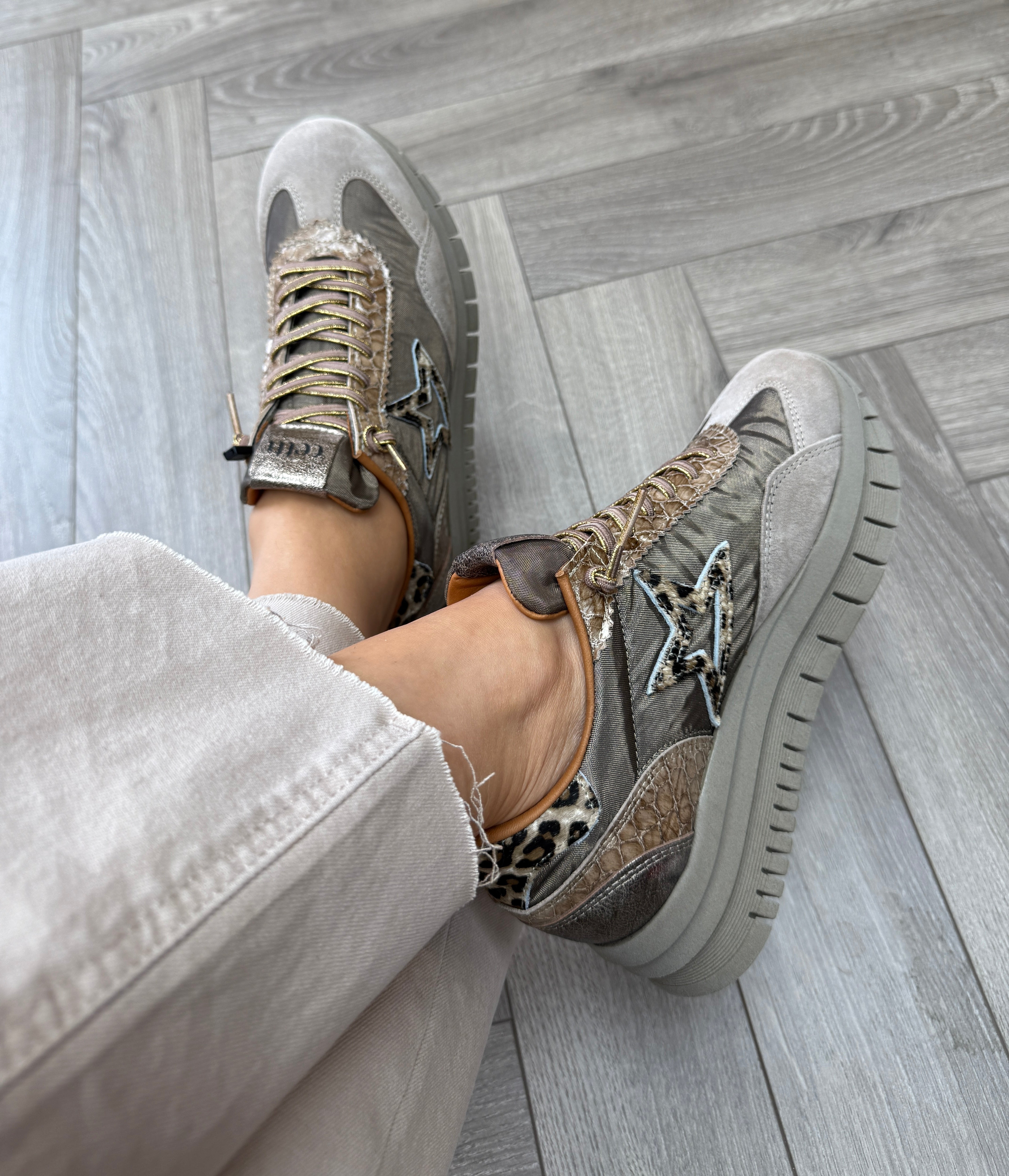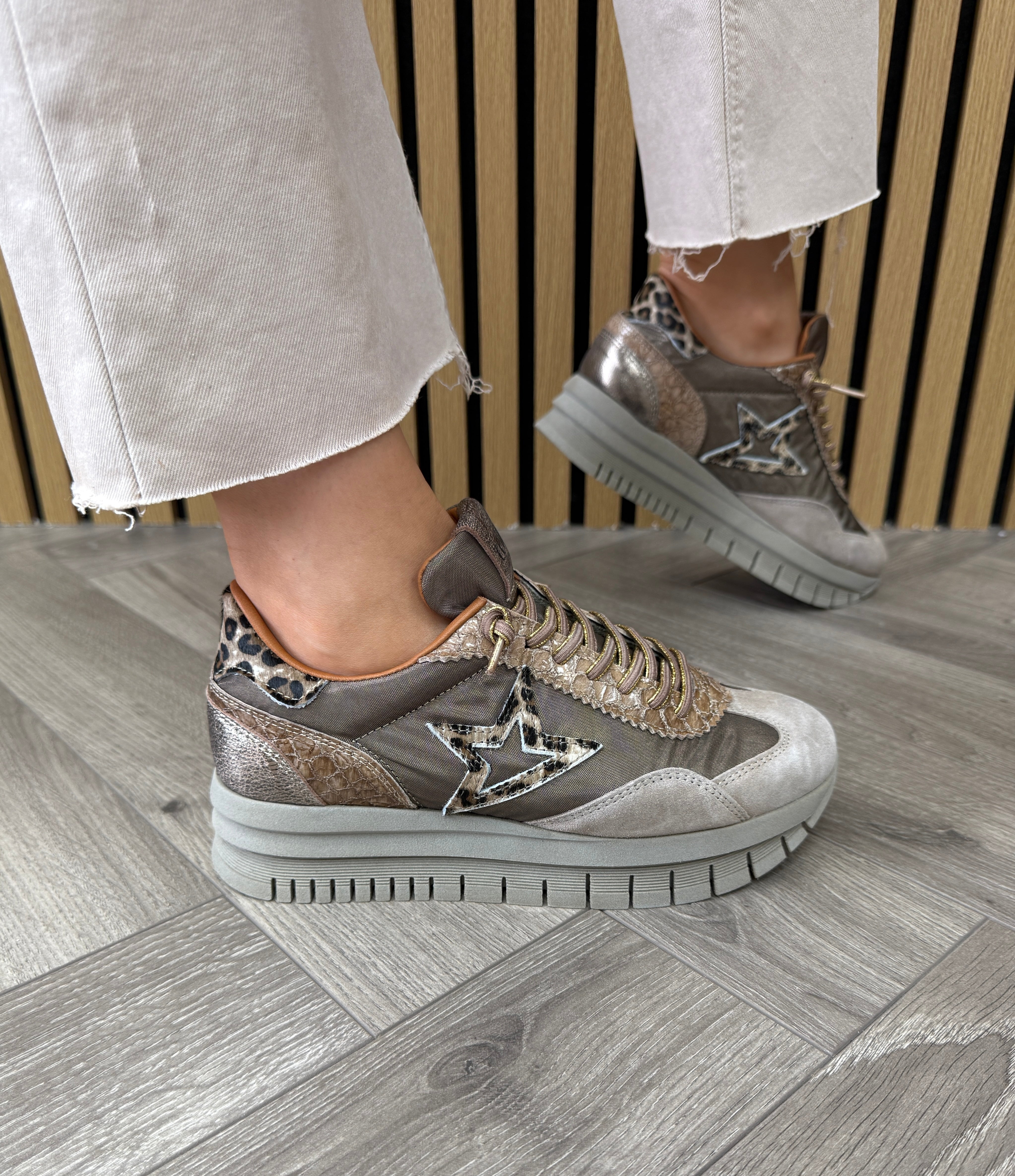 Cetti (AW25) C-1259 SRA XL Platform Trainer With Leopard Star Design - Ante-Metal Dessert (C1AW)