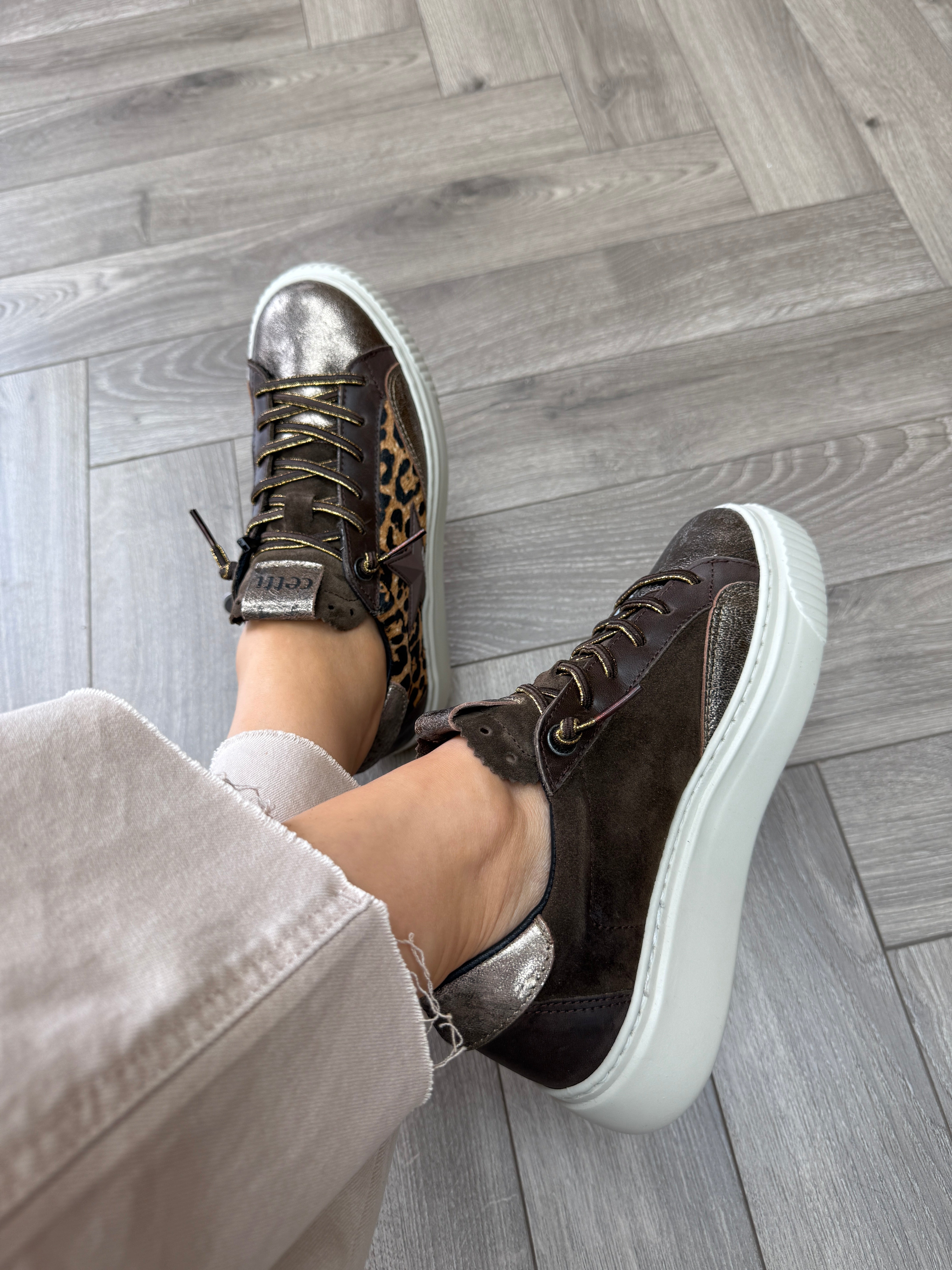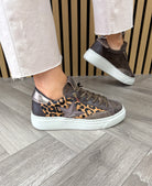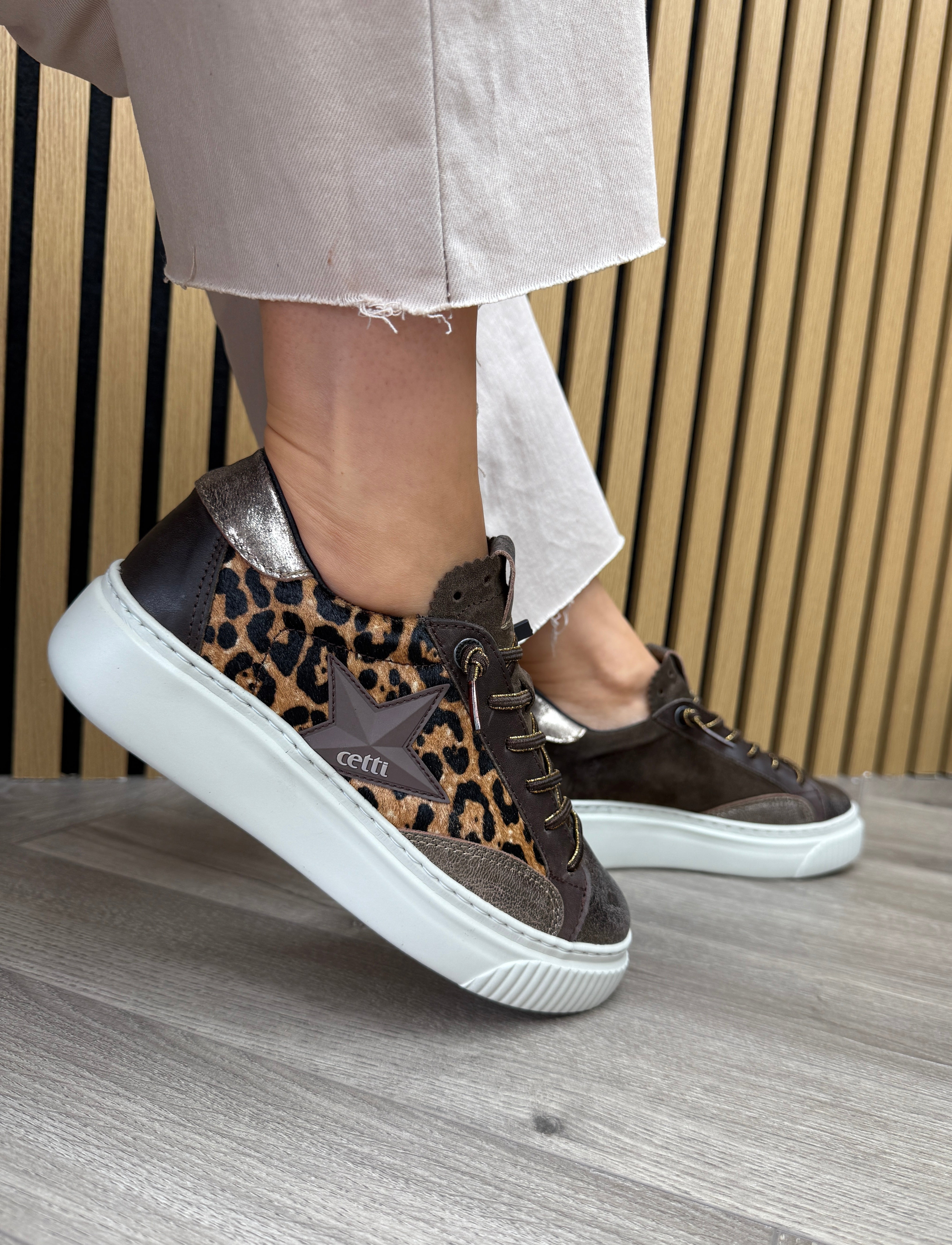 Cetti (AW25) C-1342 SRA XL Platform Trainer With Leopard Print Sides - Metal-Leo Testa (C5AW)