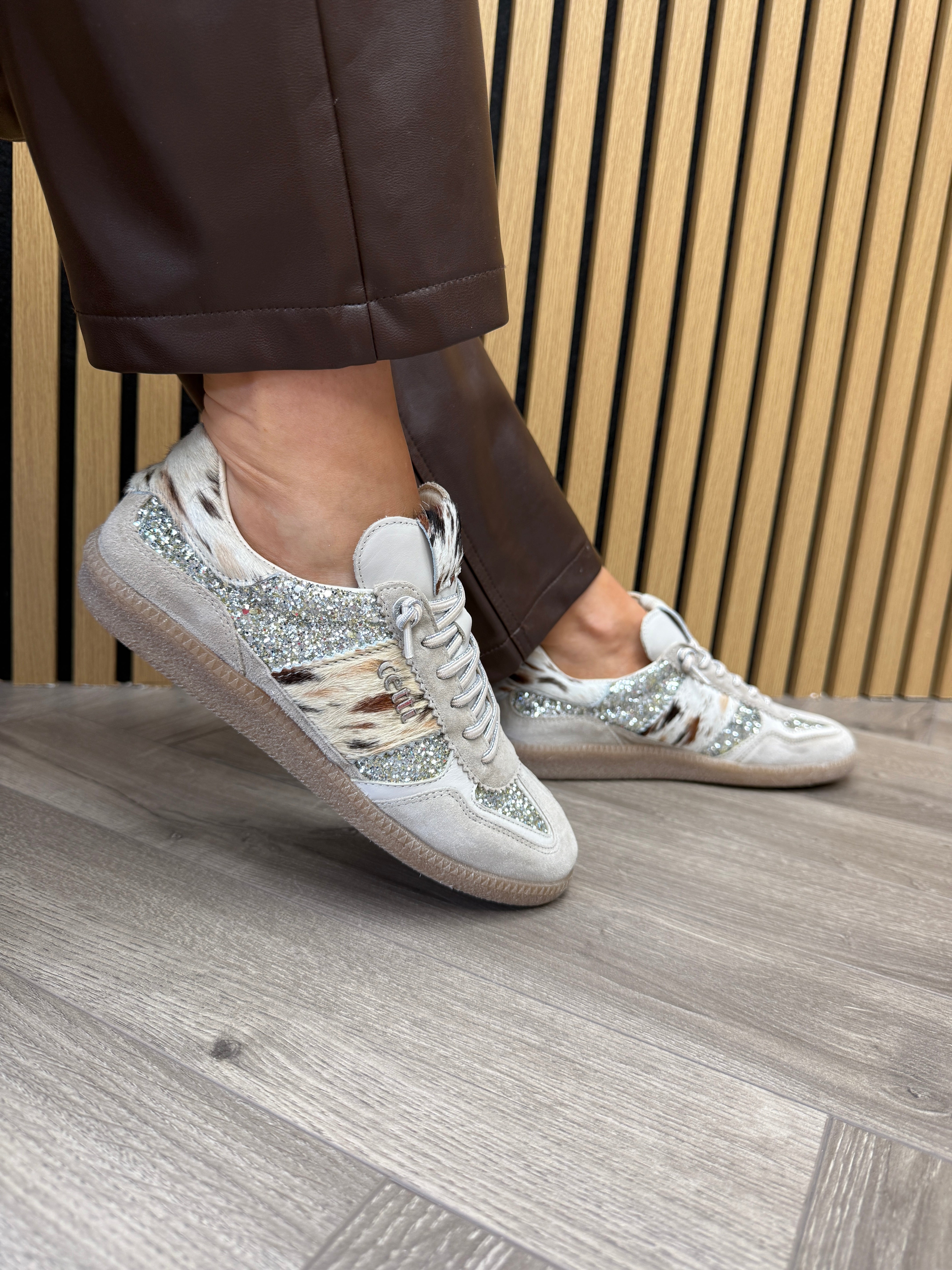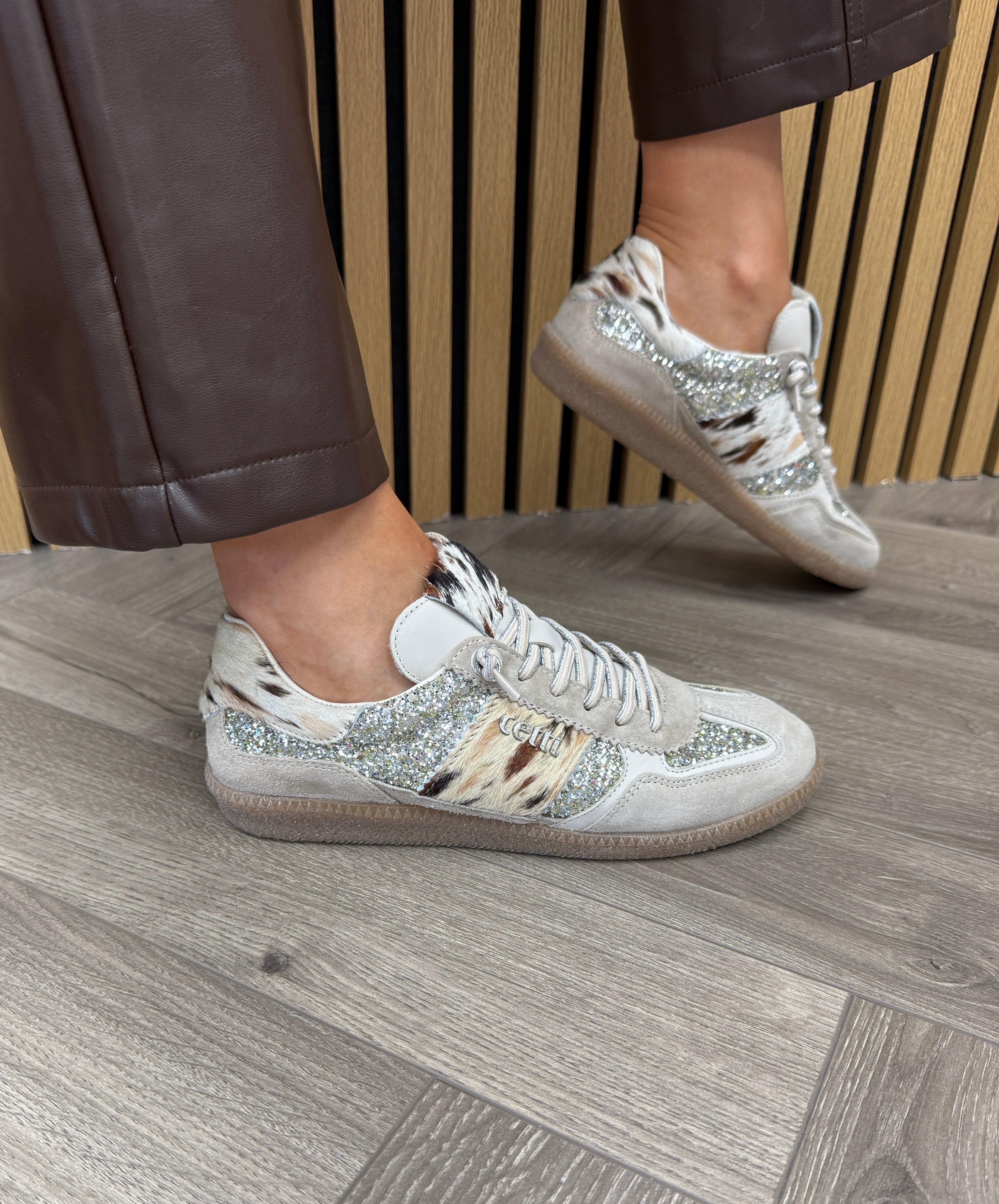 Cetti (AW25) C-1395 SRA Pull On Trainer With Glitter and Animal Print - Ante-Glitter Champagne (C7AW)