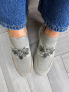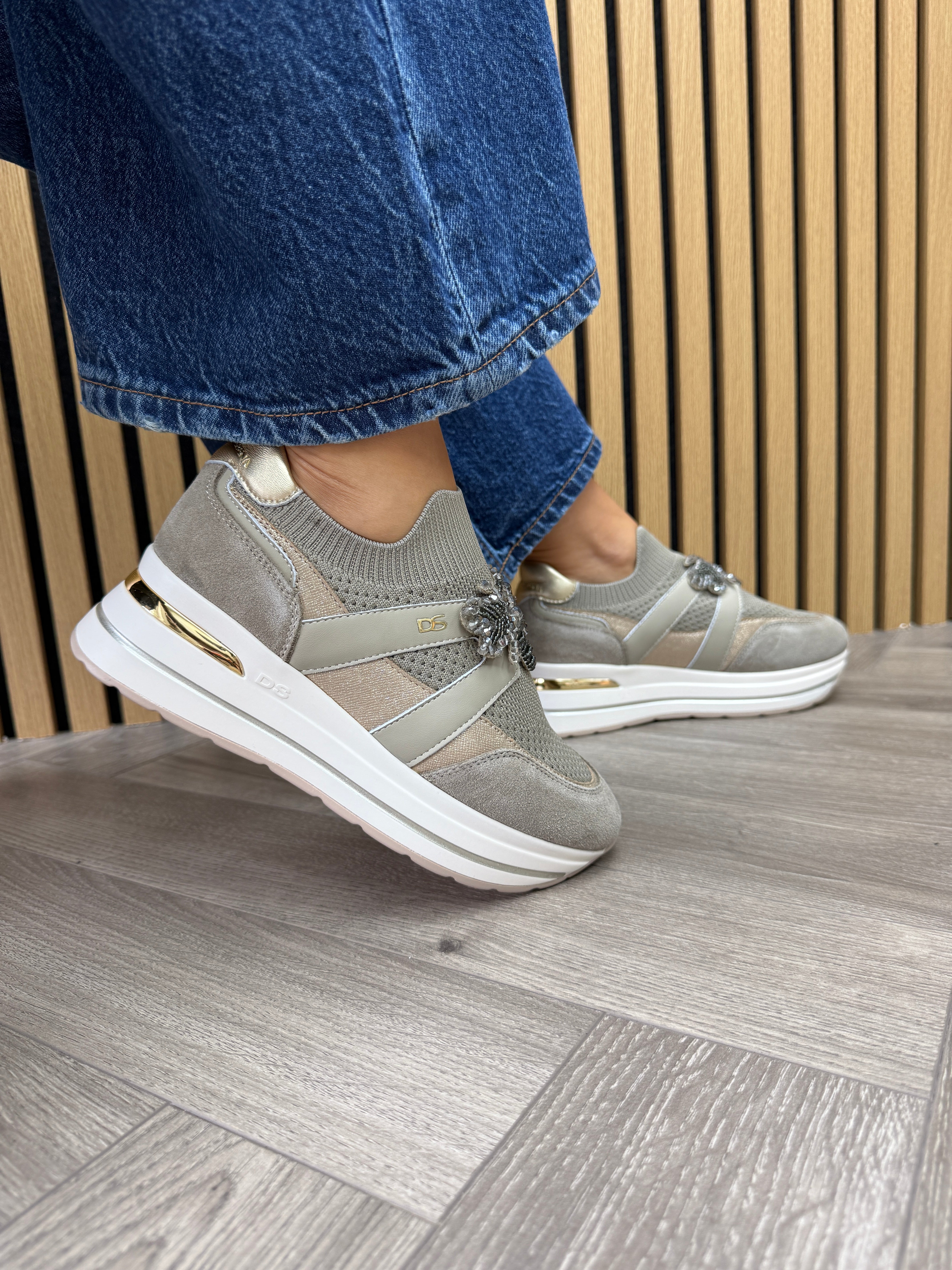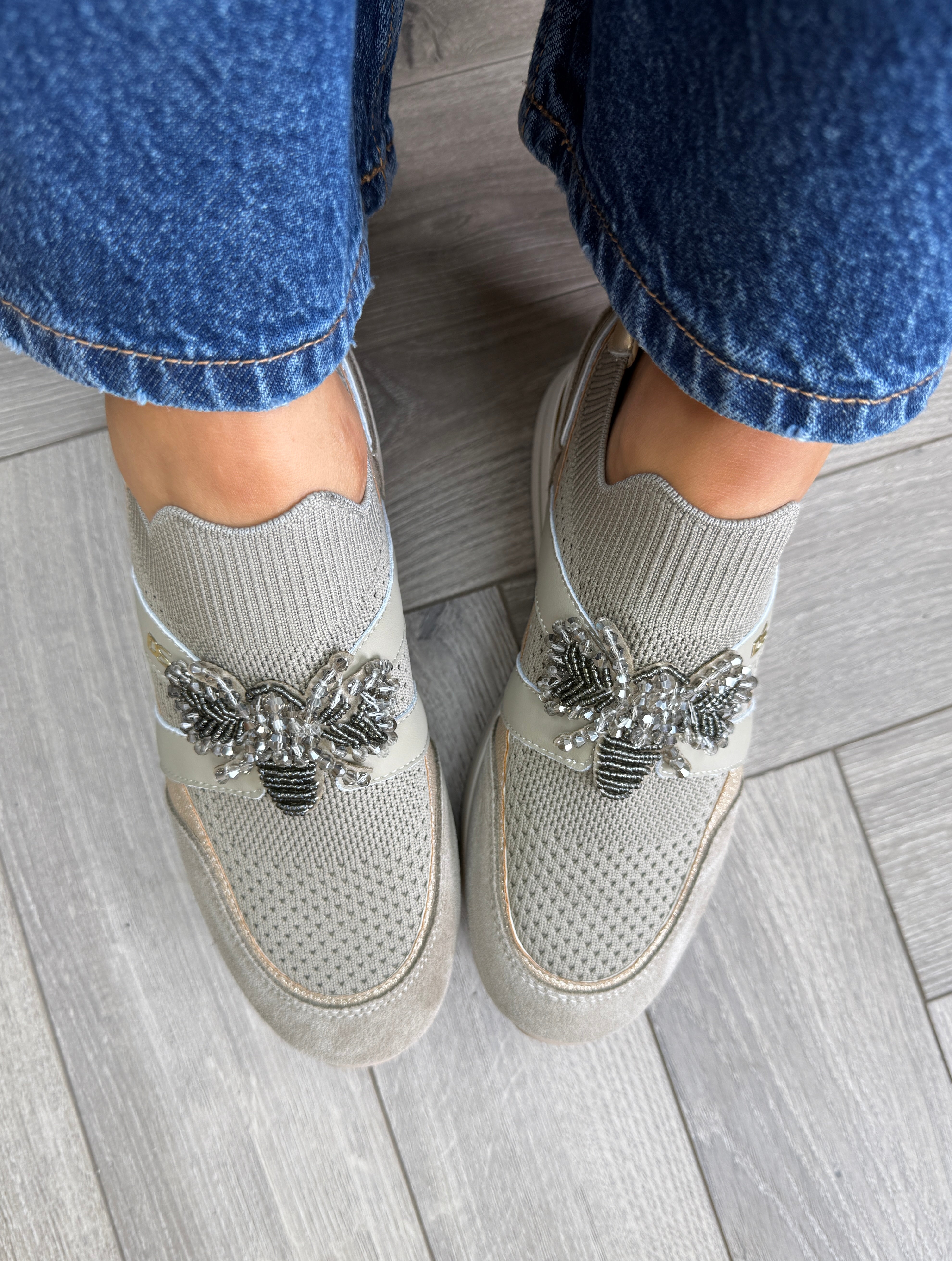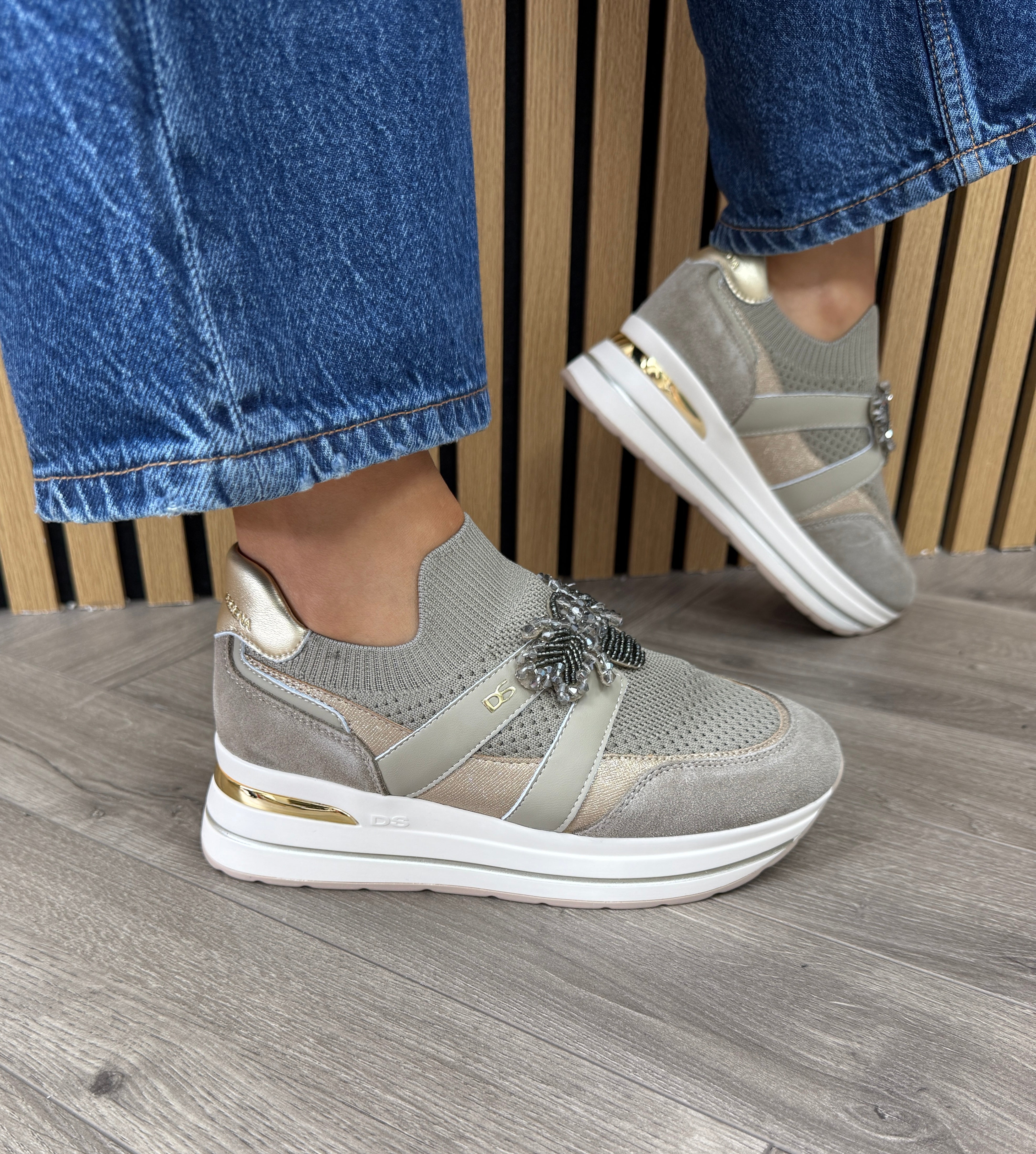 Donna Serena 345756DM Wedge Knitted Trainer With Beaded Bee - Sand Platino (DS10AW)