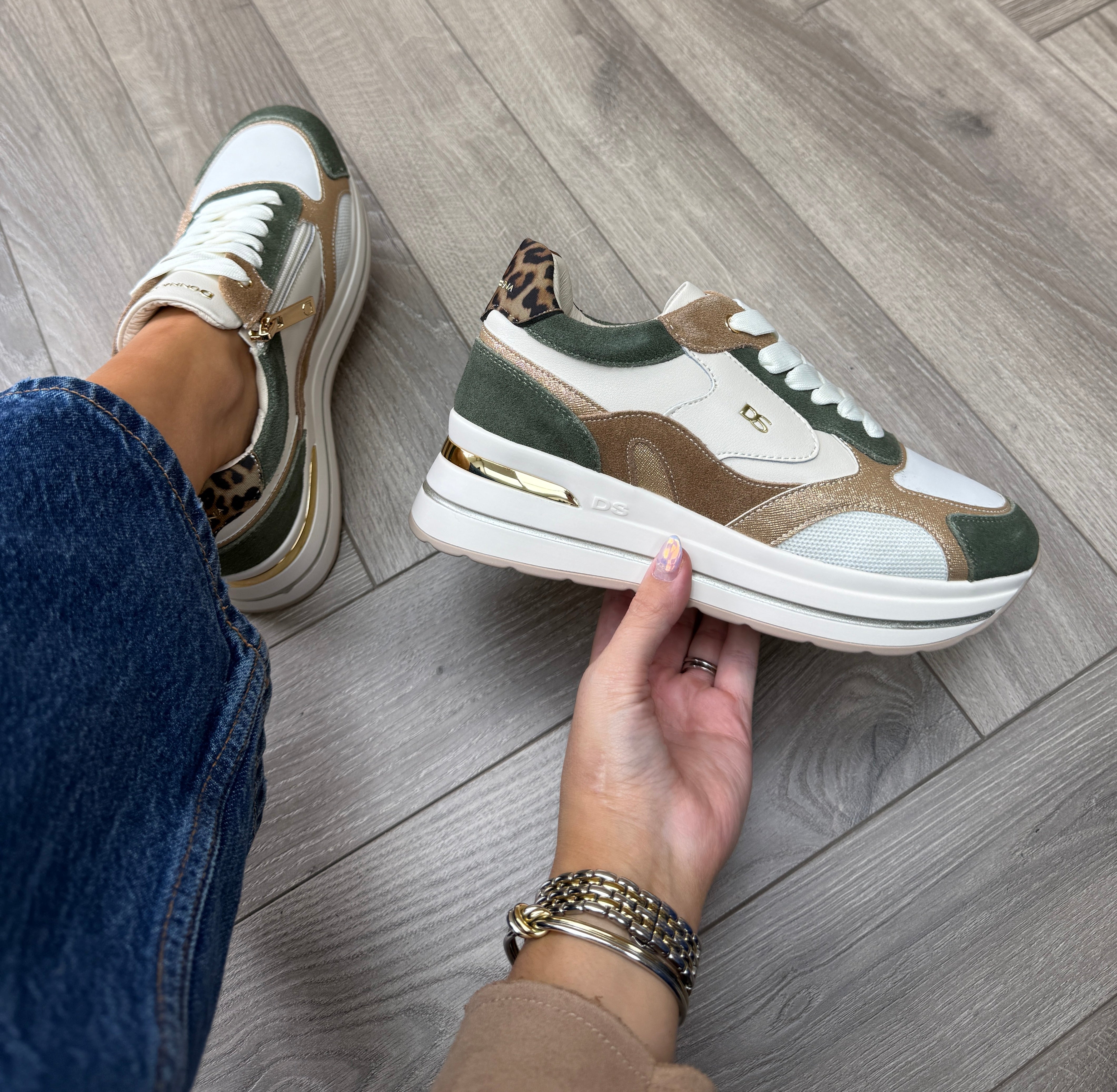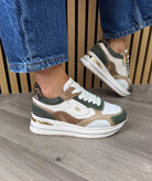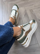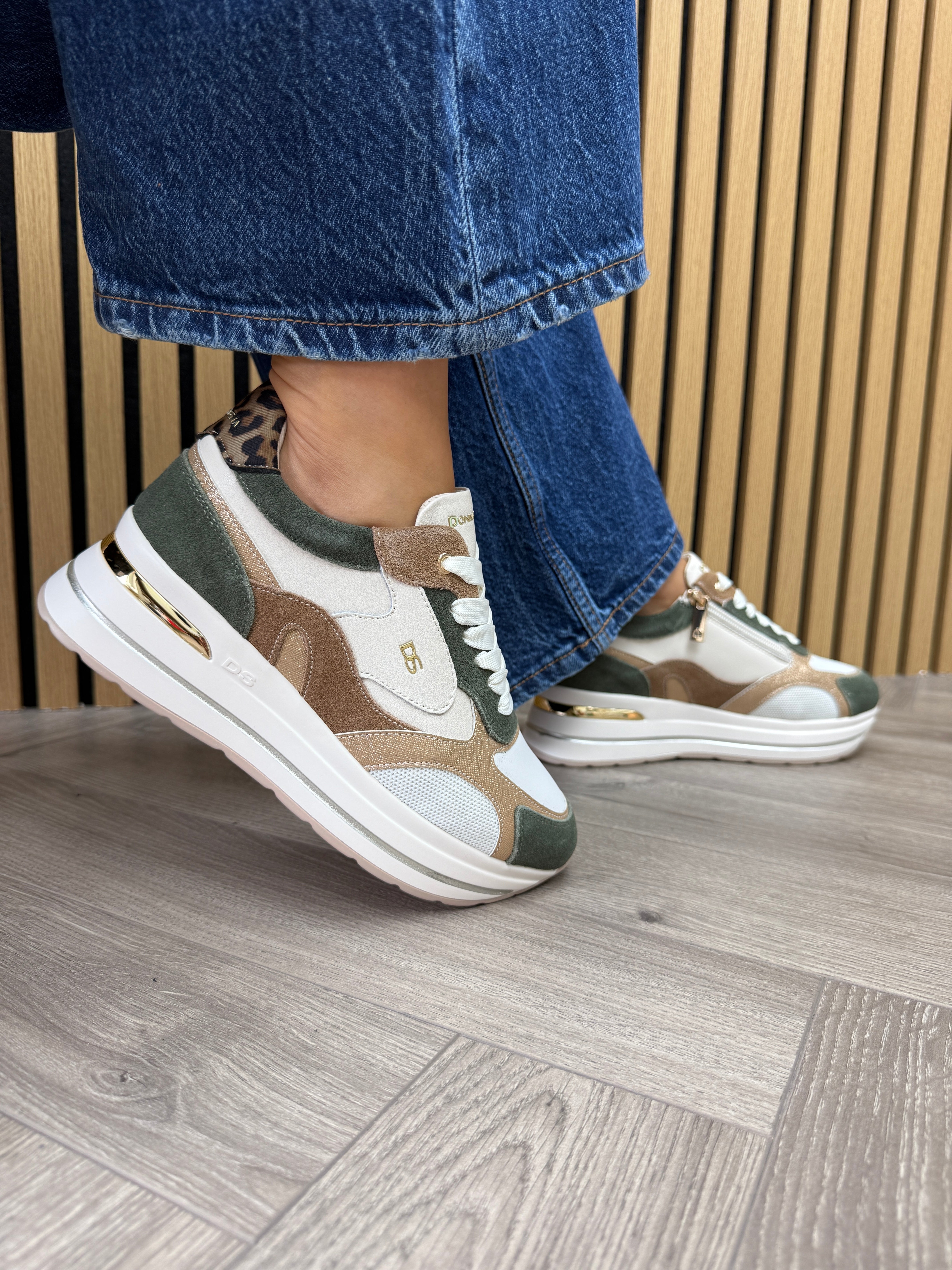 Donna Serena 345758DM Trainer With Green Suede Trim - Bianco/Cuoio (DS14AW)