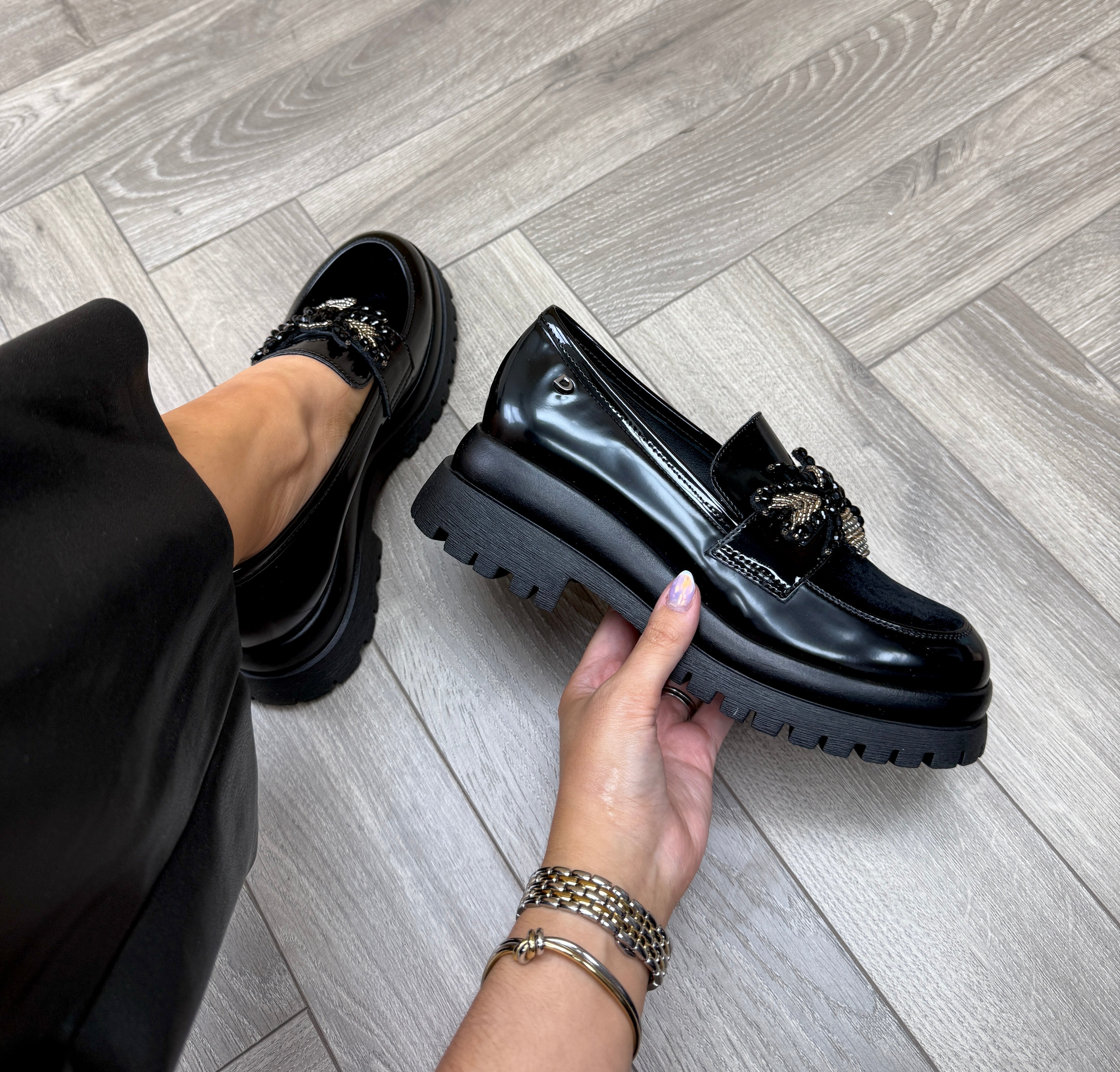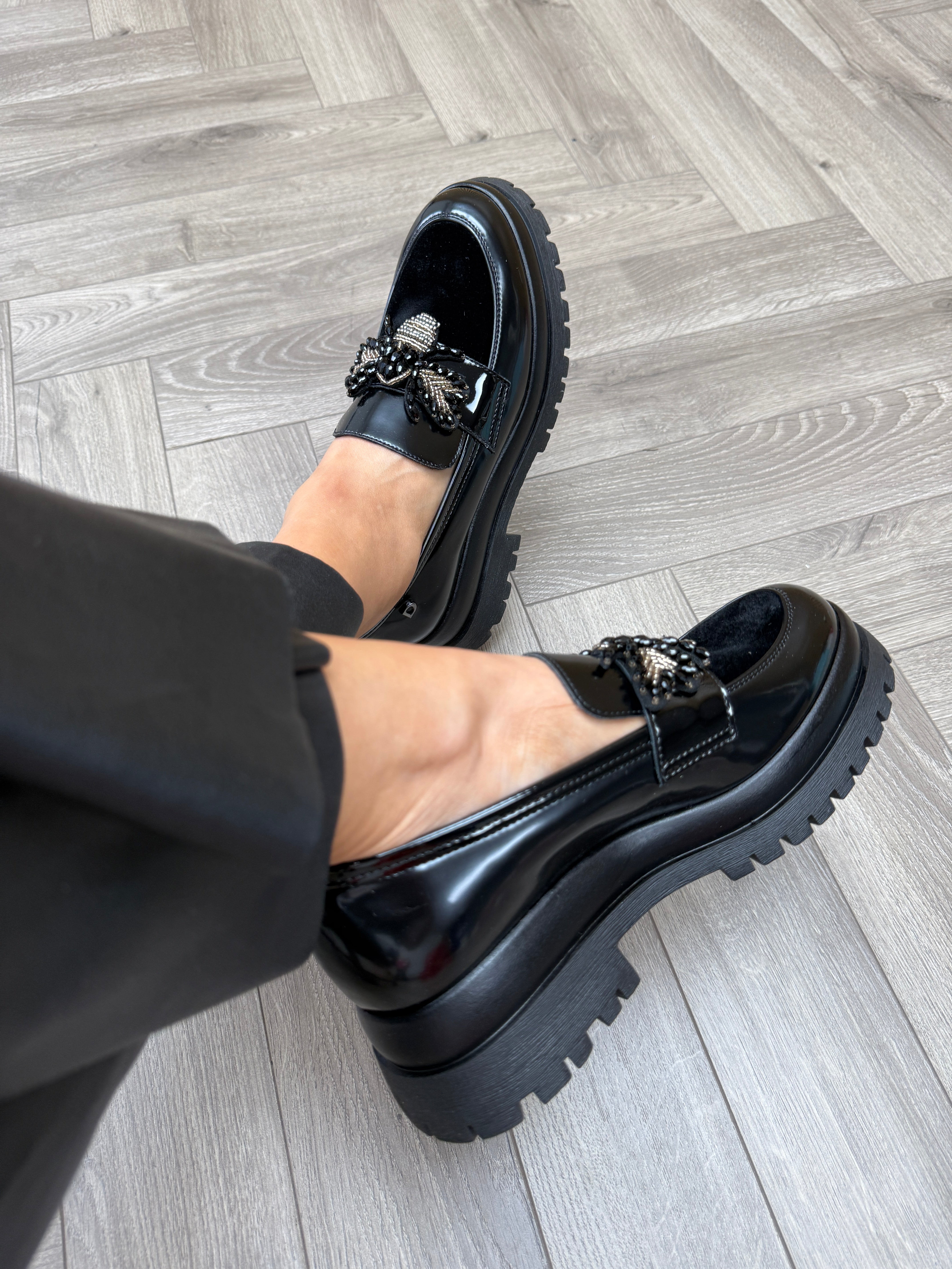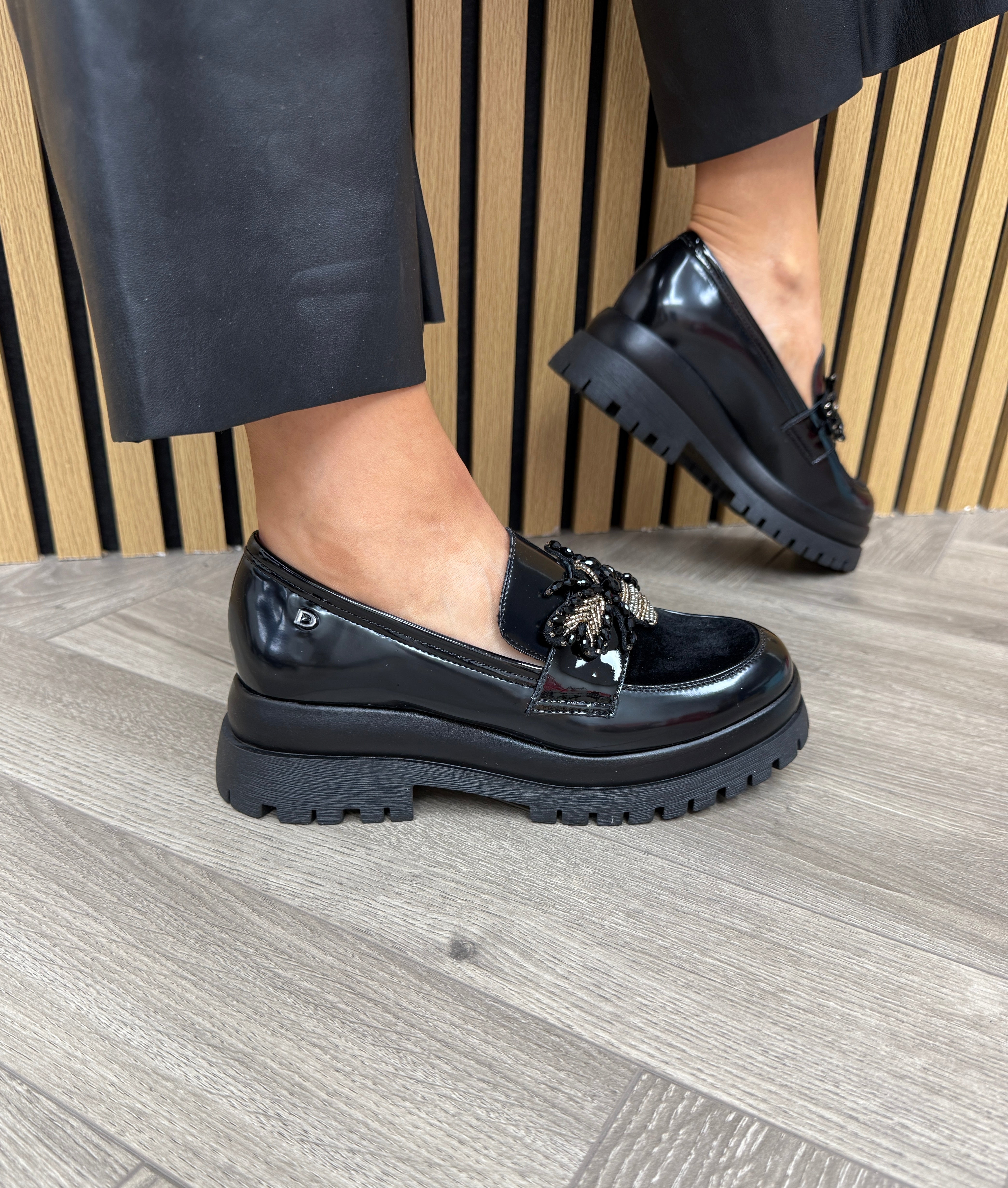 Donna Serena 2P5775DS Chunky Loafer With Beaded Bee -Oxford Rodi 3 Nero/N (DS6AW)