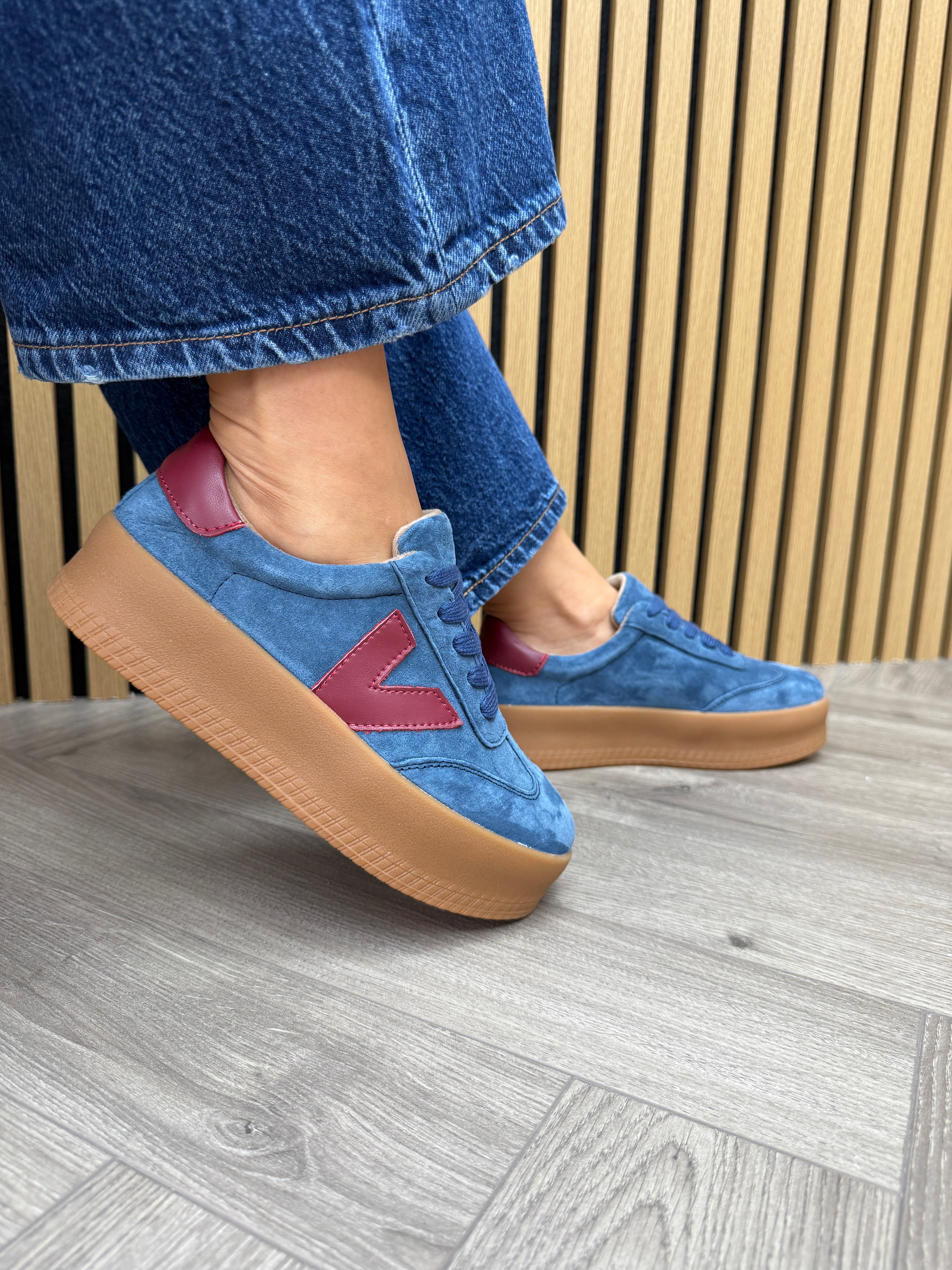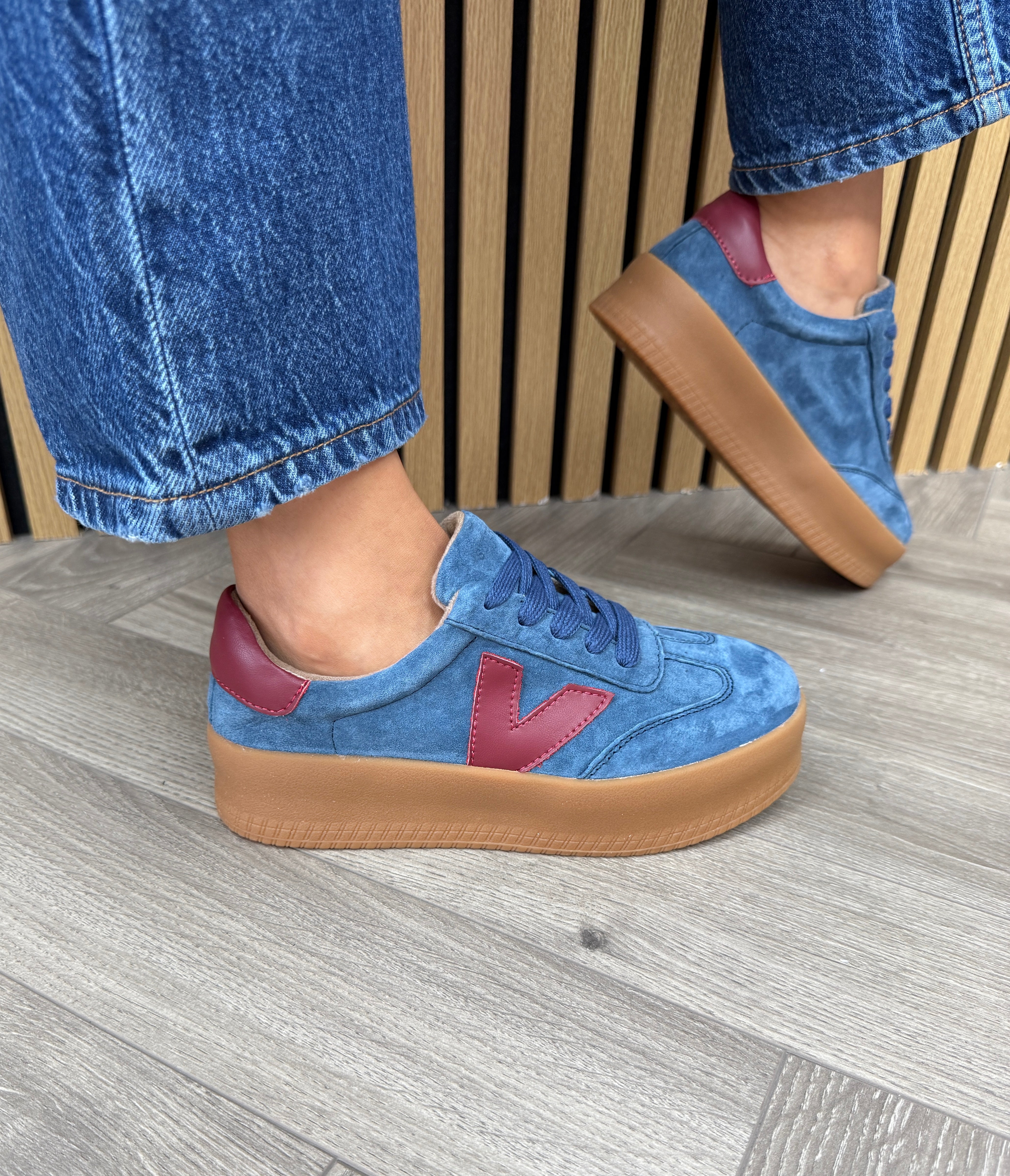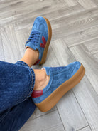 Drilleys ‘Eighty Four’ Platform Gum Sole Trainer with Red V - Cobalt Red (D15AW)