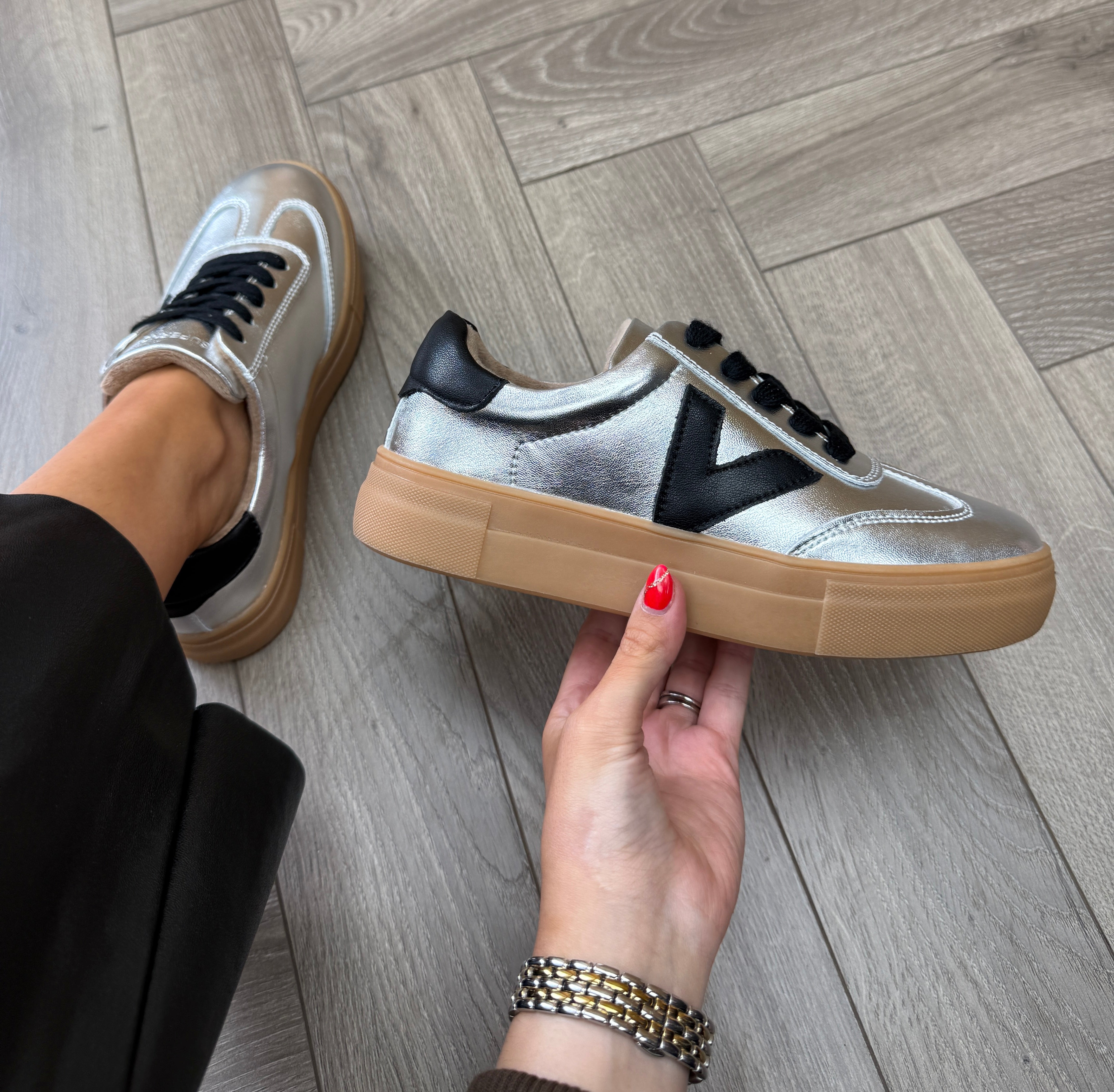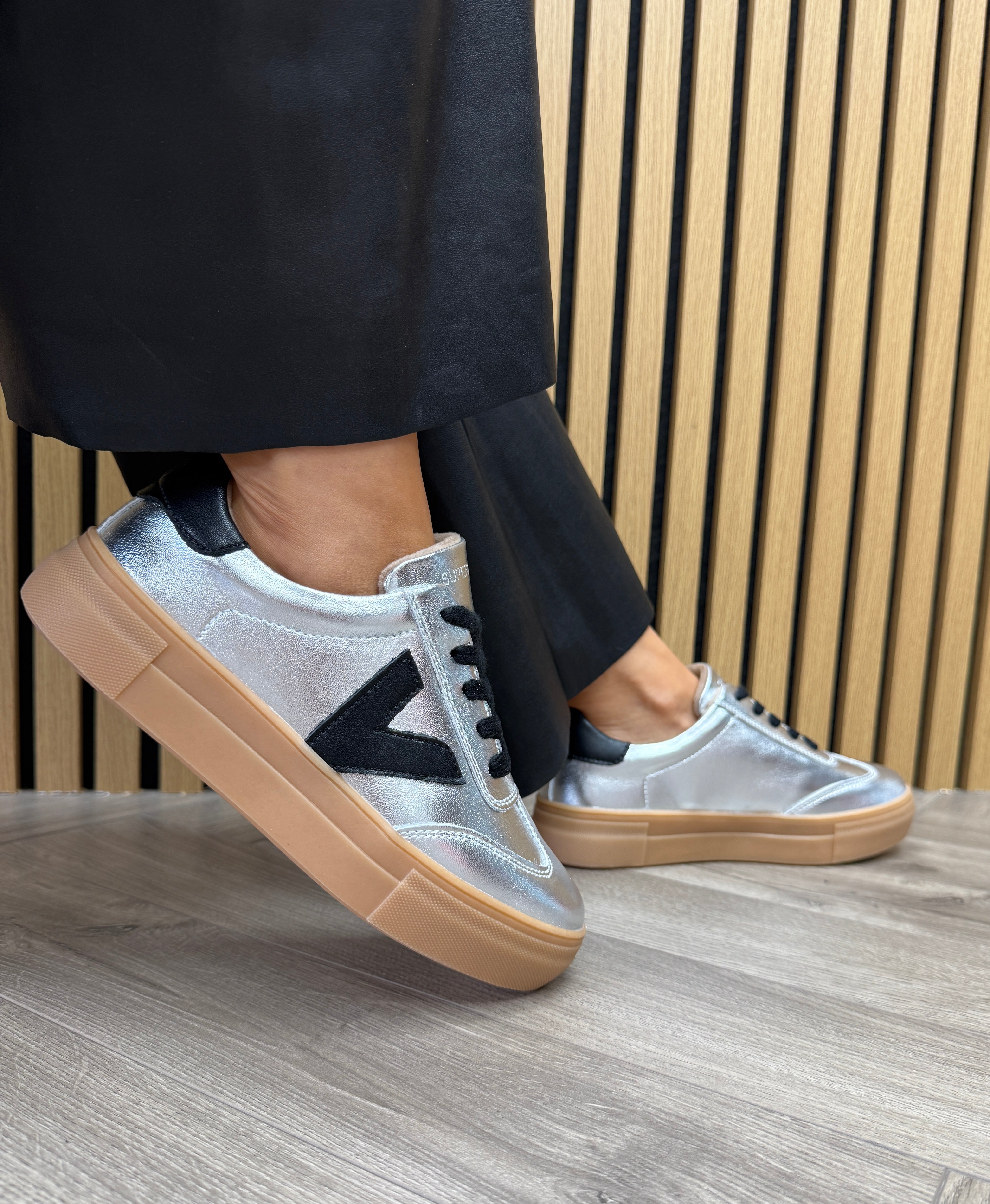 Drilleys ‘Ninety’ Platform Metallic Trainer - Foil Ink (D23)