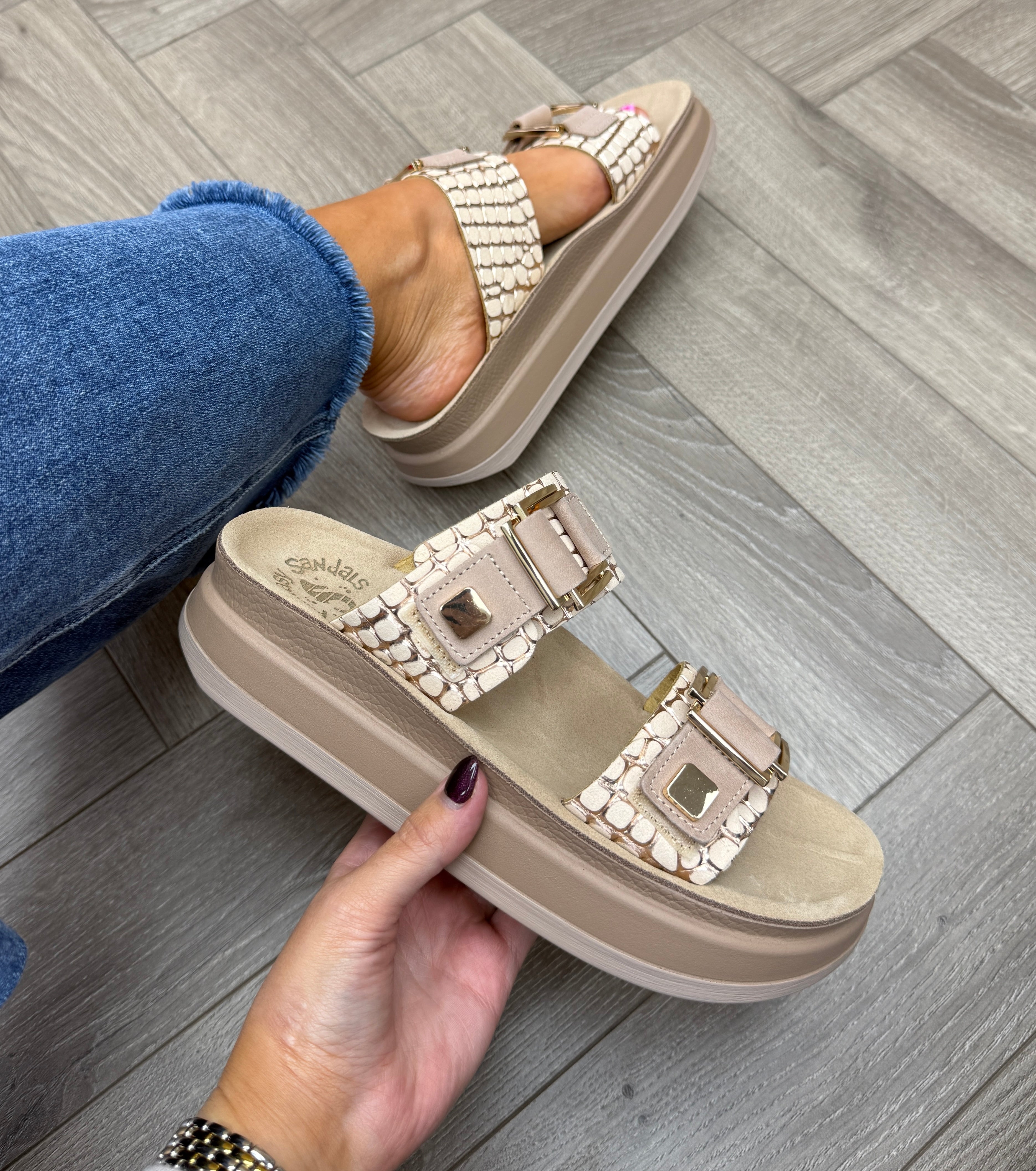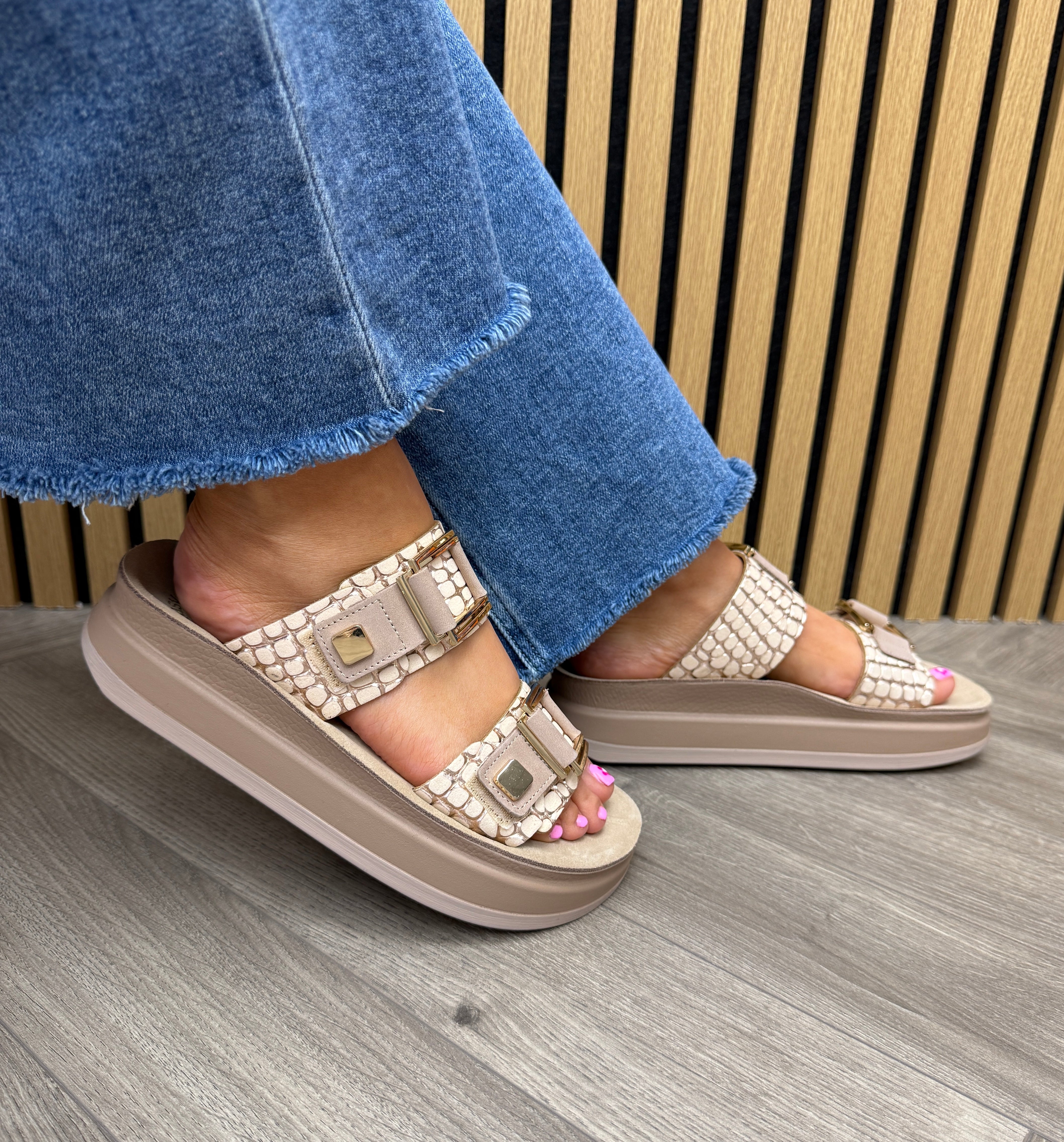 Fantasy Sandals (FS9) Platform Double Buckle Sandal S1112 Adelita - Rosegold Croco