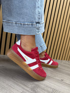 Gola (GOAW1) Grandslam Suede Trainer CLA589 - Red/Off White/Gum