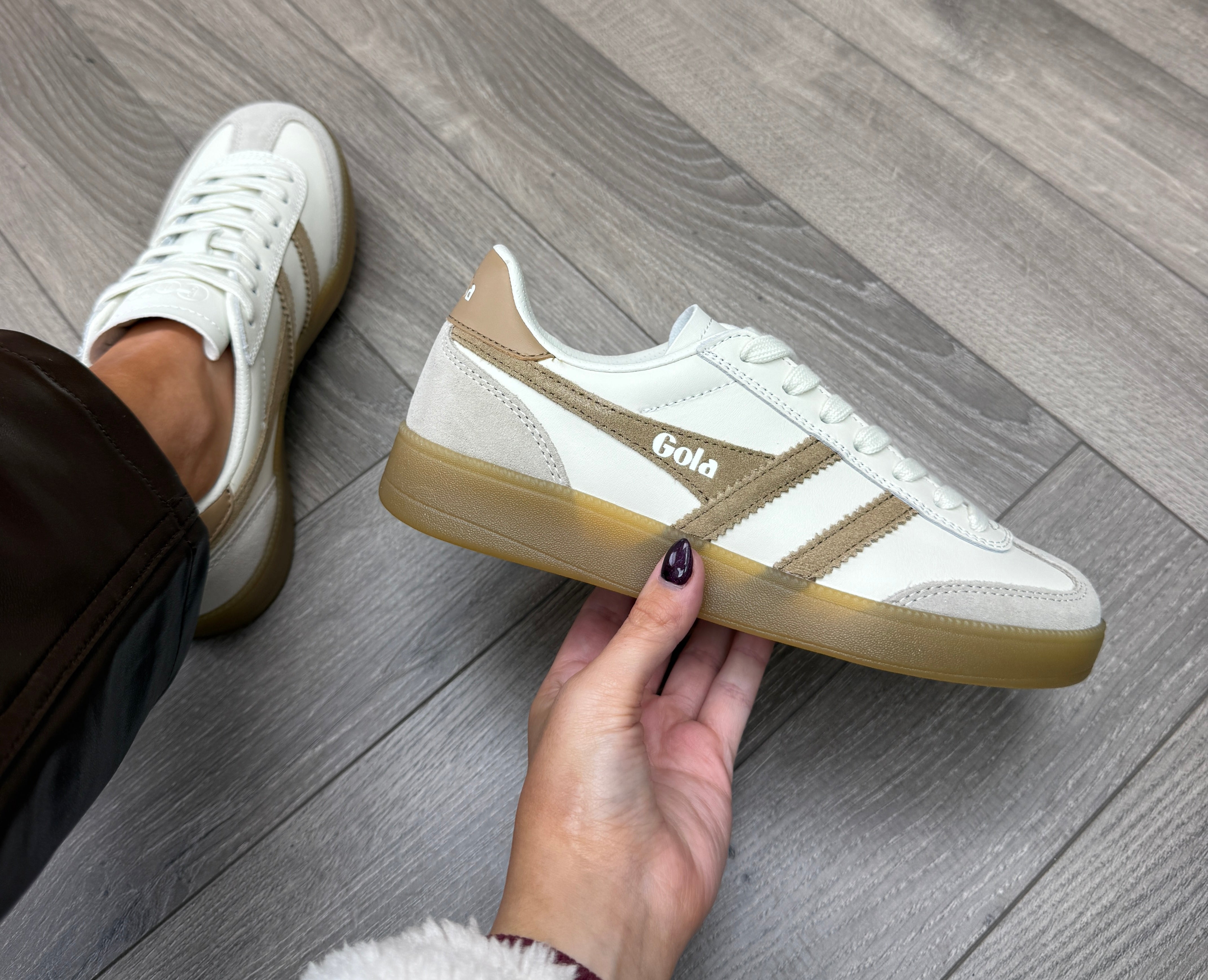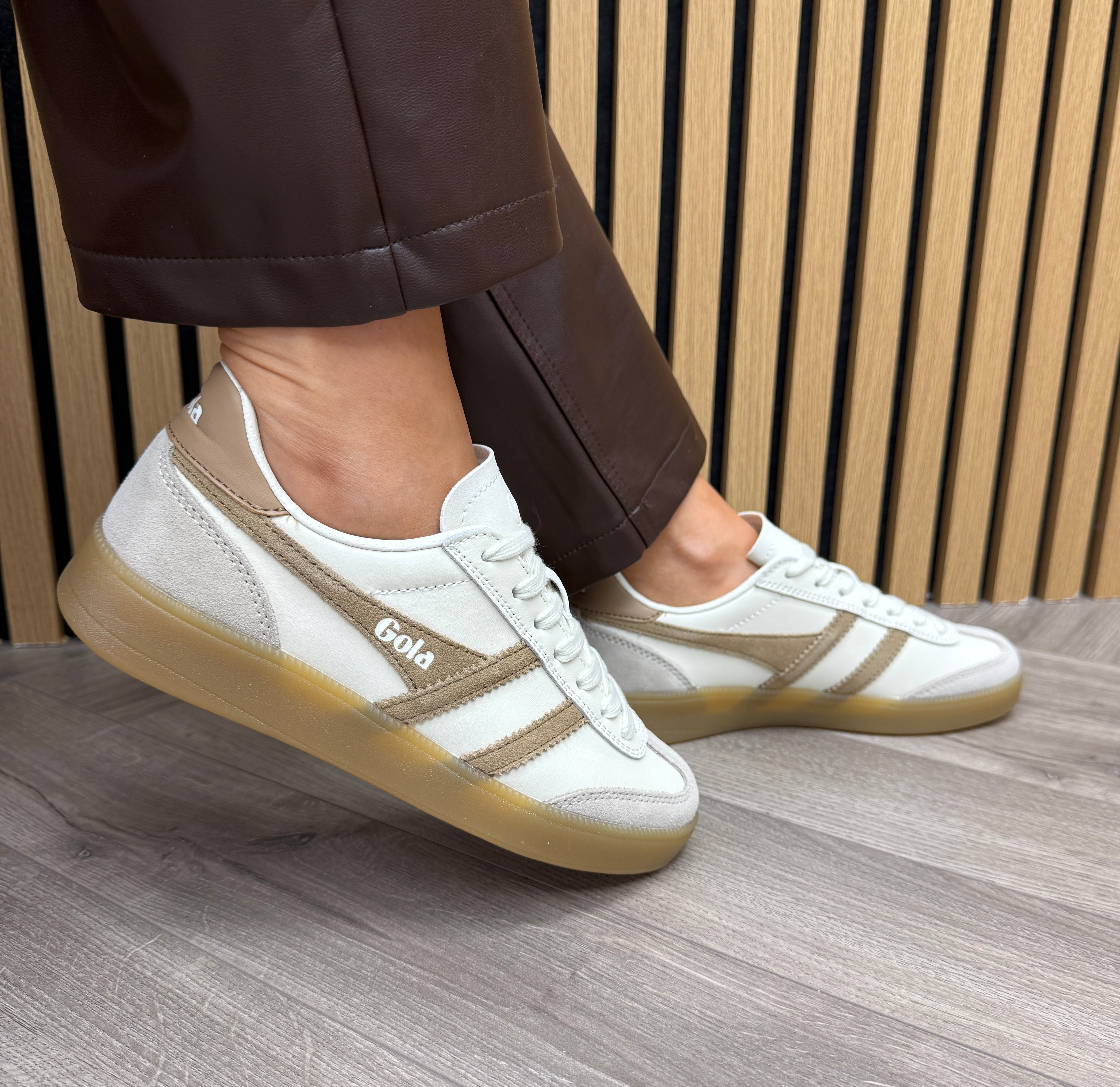 Gola (SS26) ‘Viper Leather’ CLB744 Gum Sole Trainer With Carmel Heel - Offwhite/Bone/Light Carmel/Gum (GO1)
