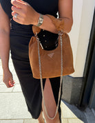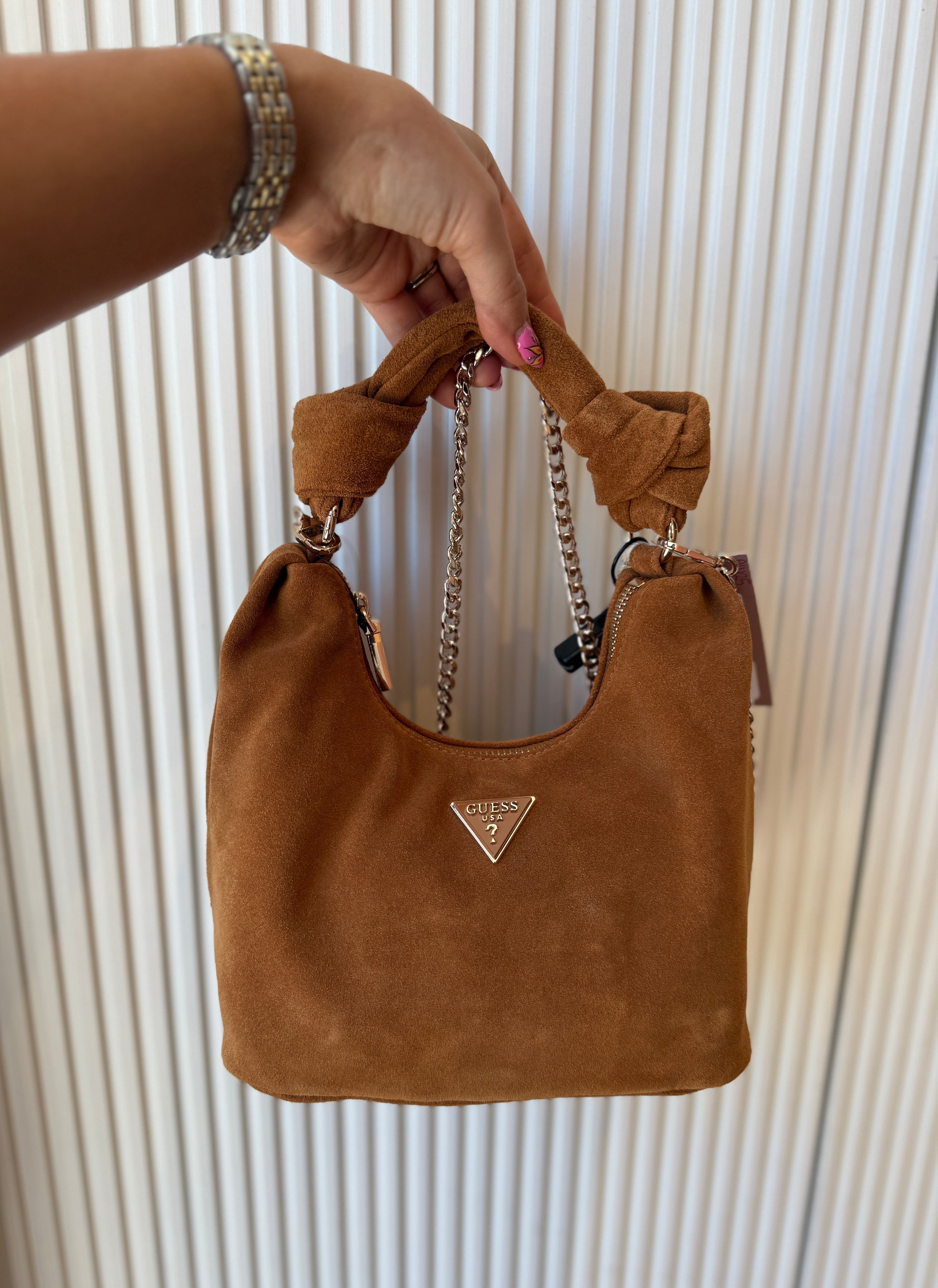 Guess (AW25) ‘Isotta’ Mini Suede Handbag With Knotted Handle - Cognac (GB11AW)