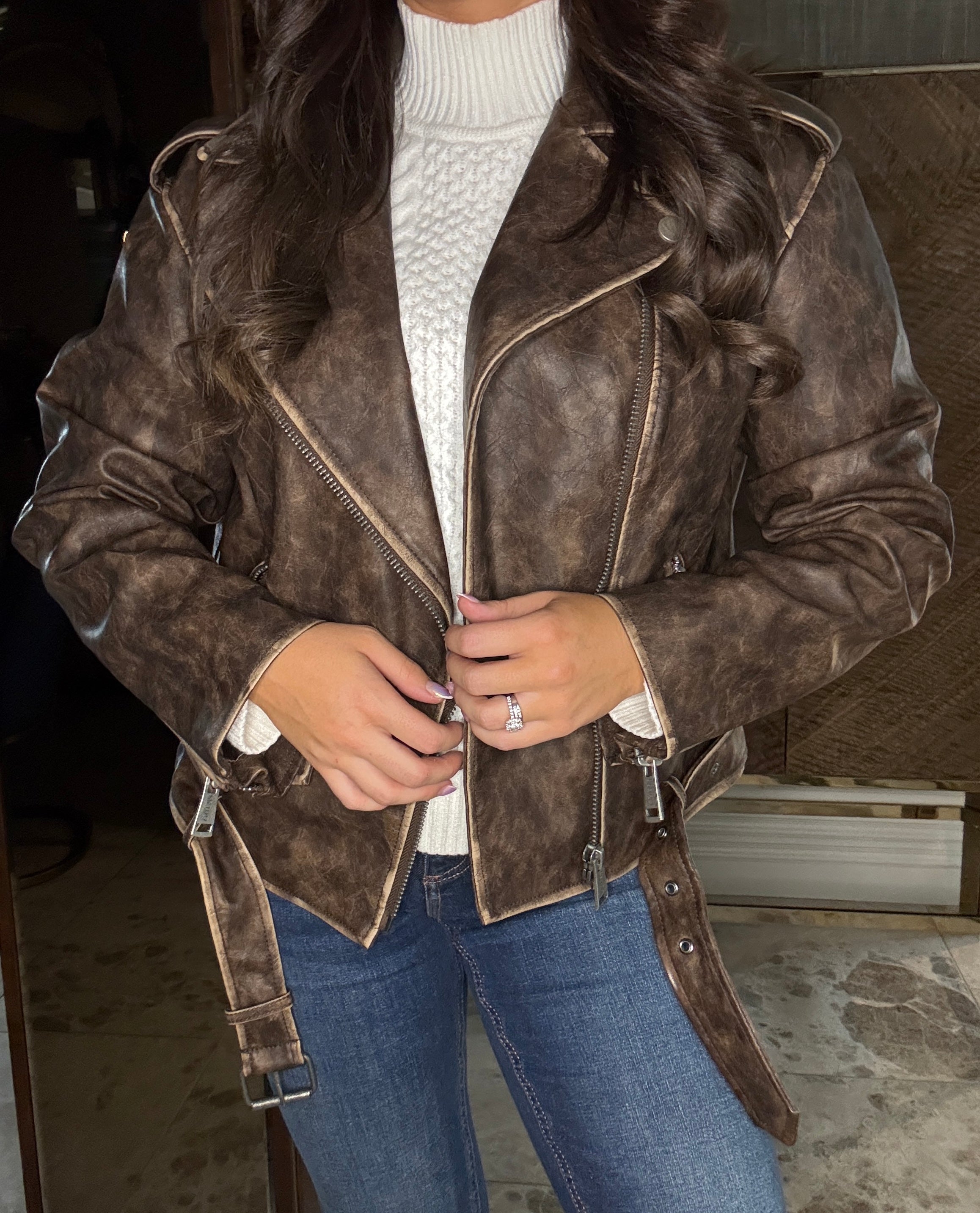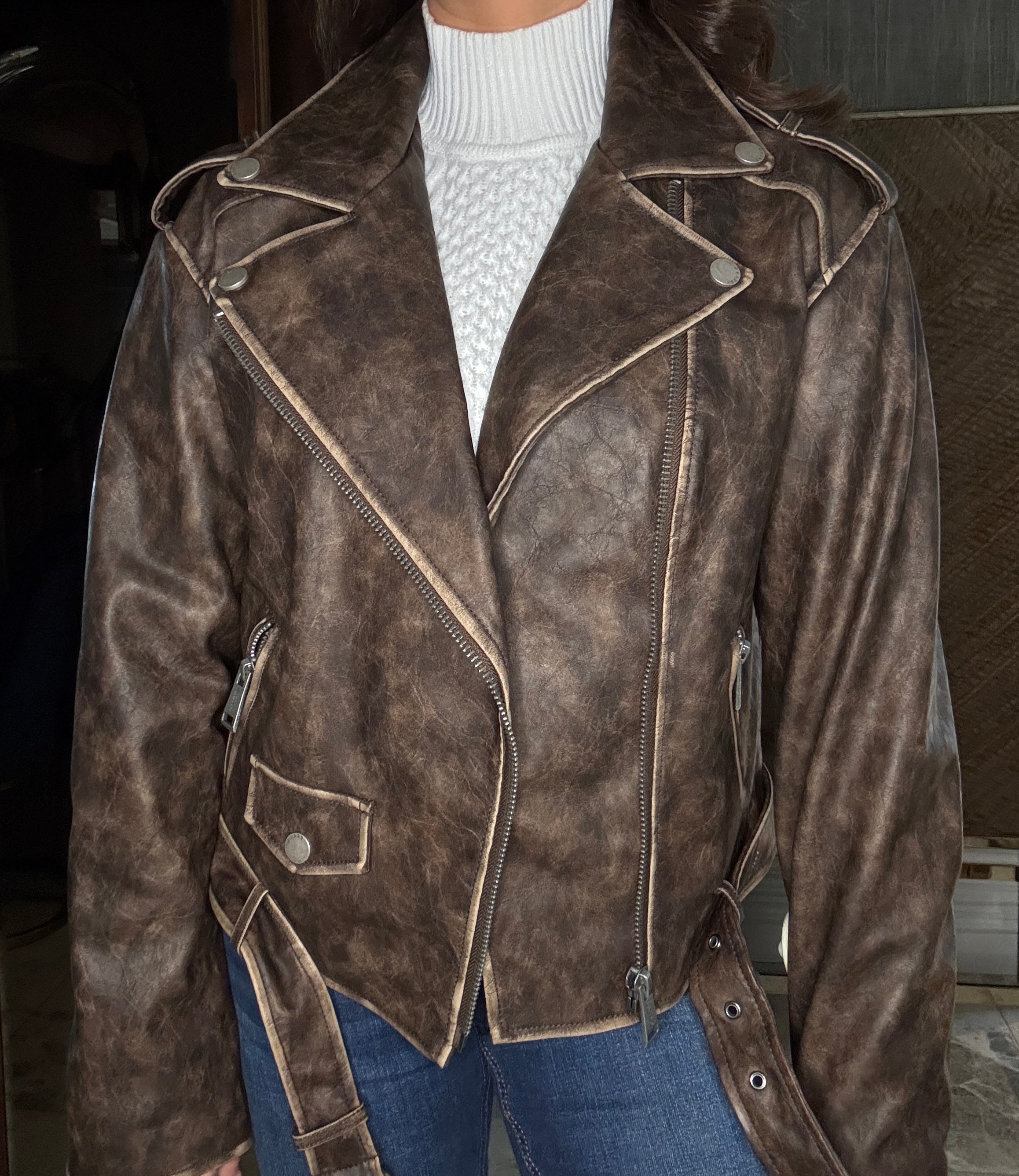 Guess W5YL35WHGW0 Vintage Biker Jacket - F1GQ Espresso Brown (GC23)