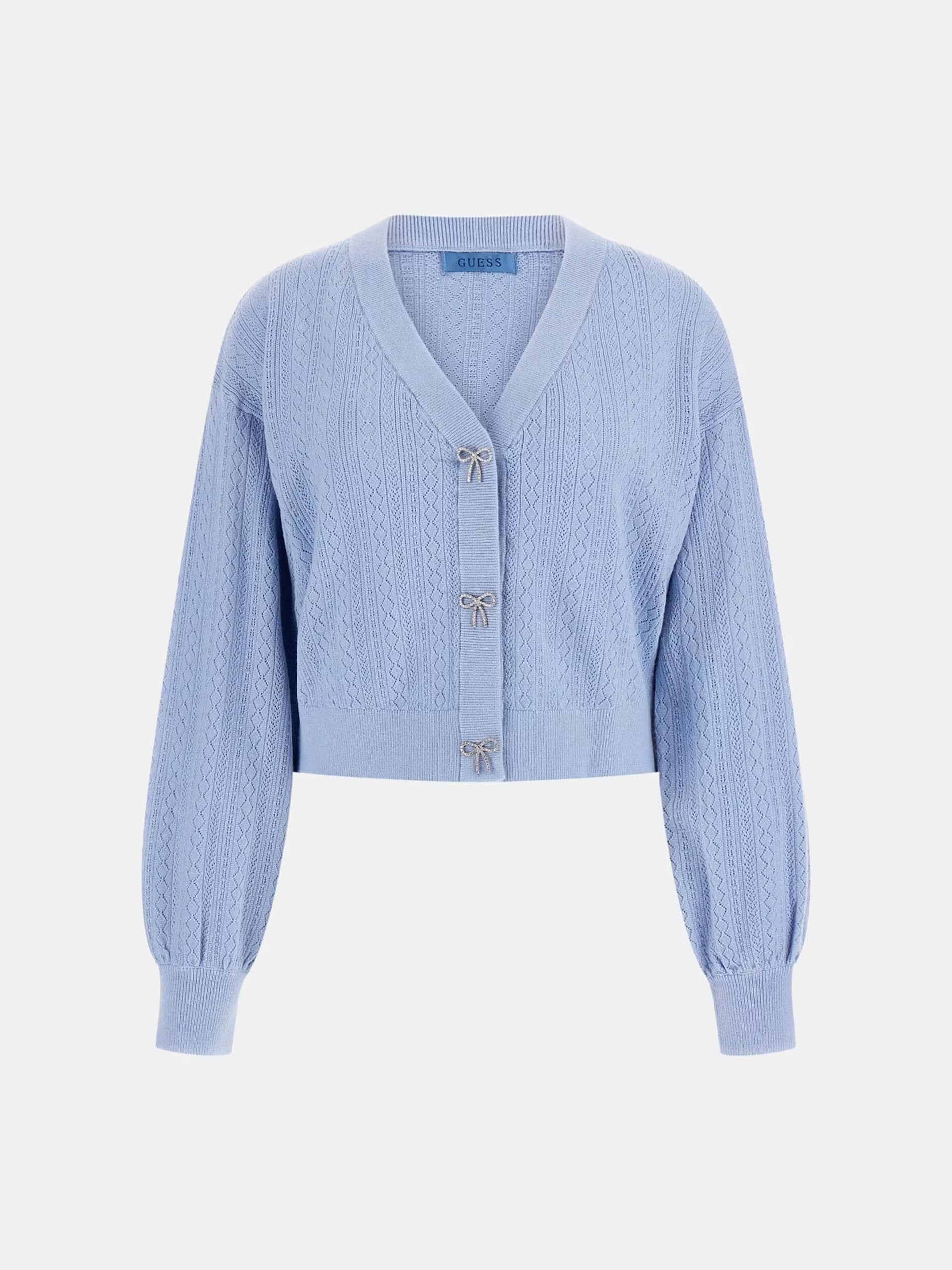 Guess (AW25) W5YR01Z22K2 Cardigan With Diamanté Bow Buttons - A70Q (Blue) (GC6)