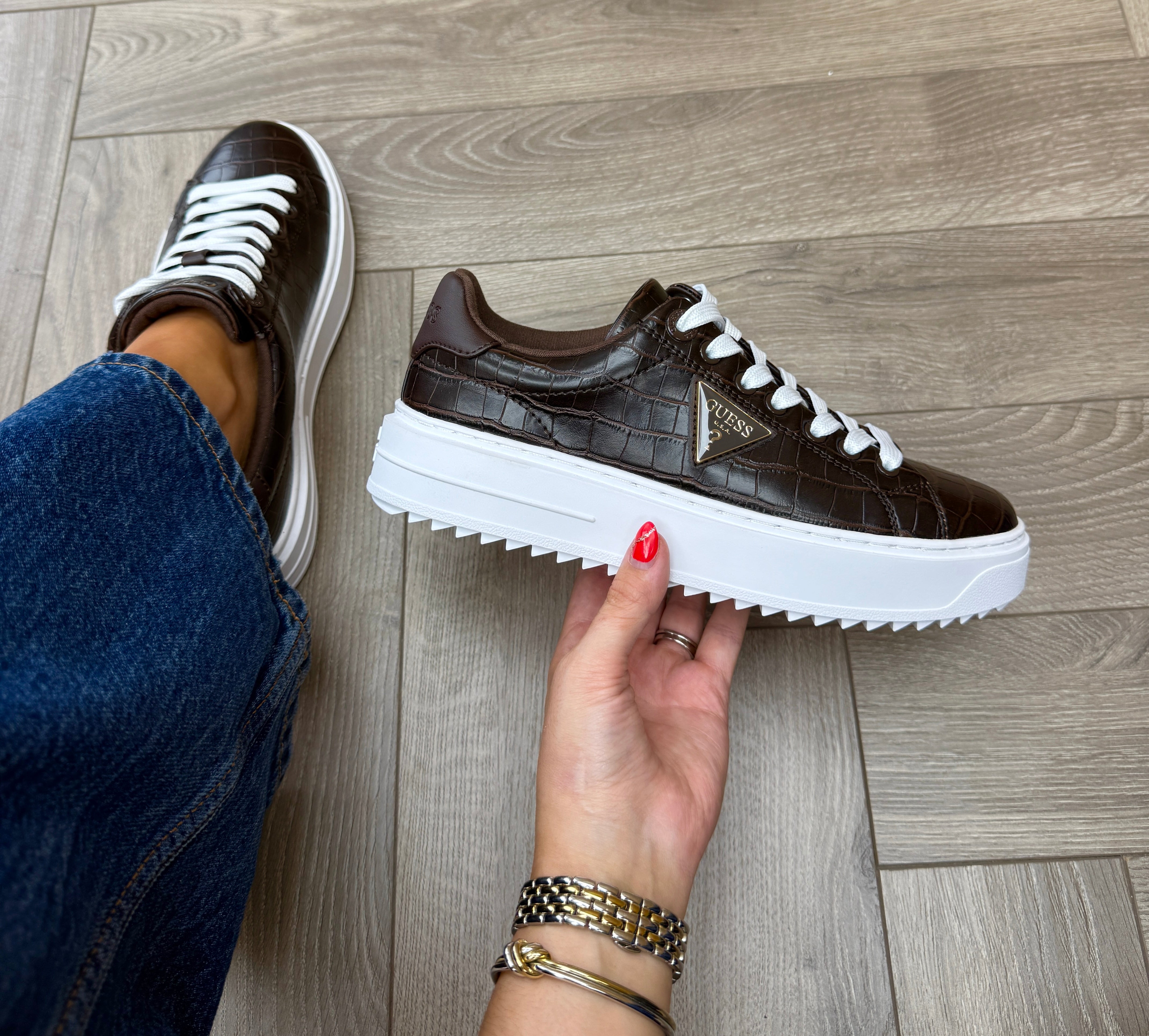 Guess FLFD15PEL12 Platform Croc Print Trainer - DBrown (G16)