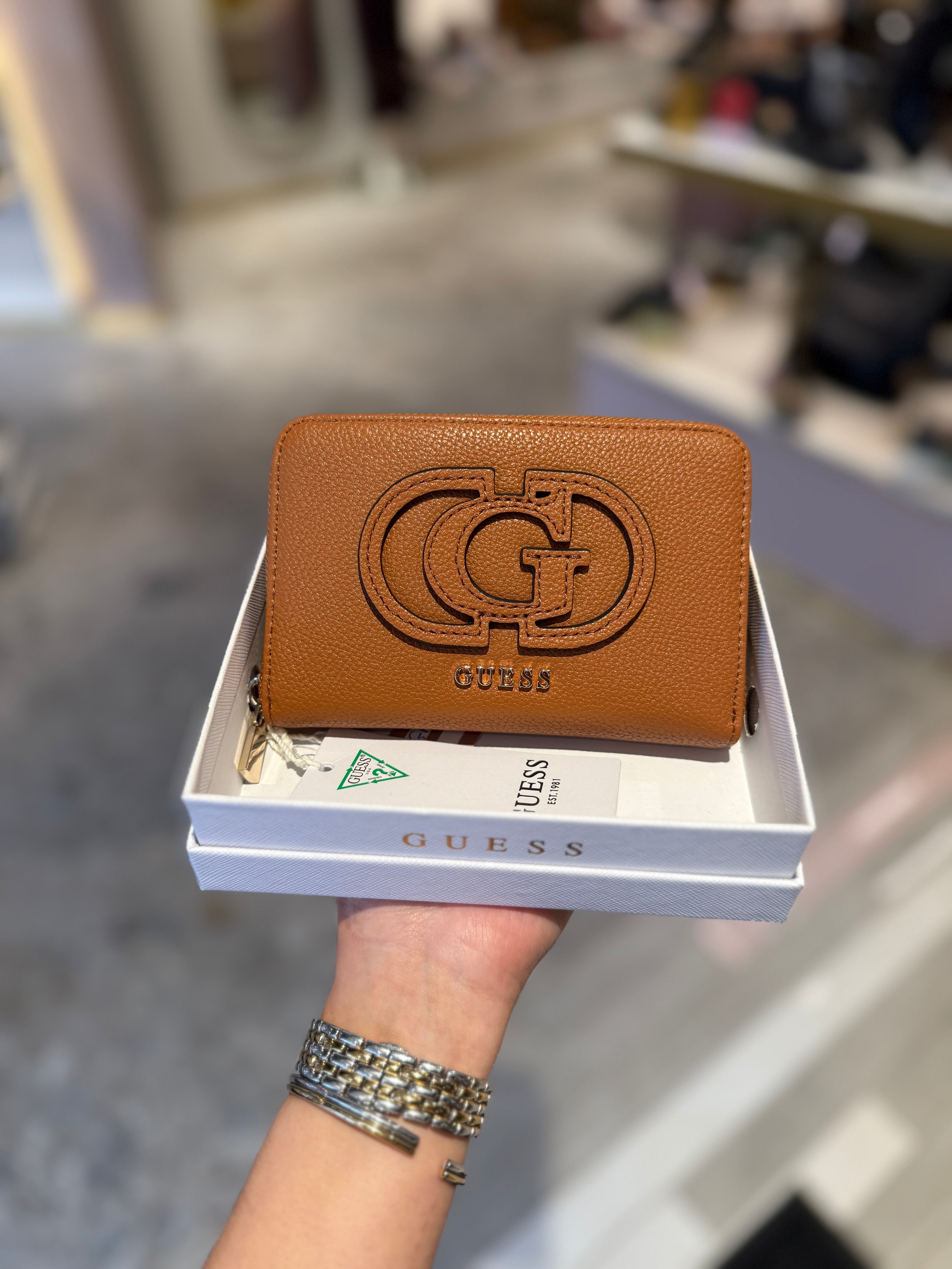 Guess (GPAW2) ‘Calebra’ Medium Zip Around Purse with Front Logo BG9536140 - Cognac