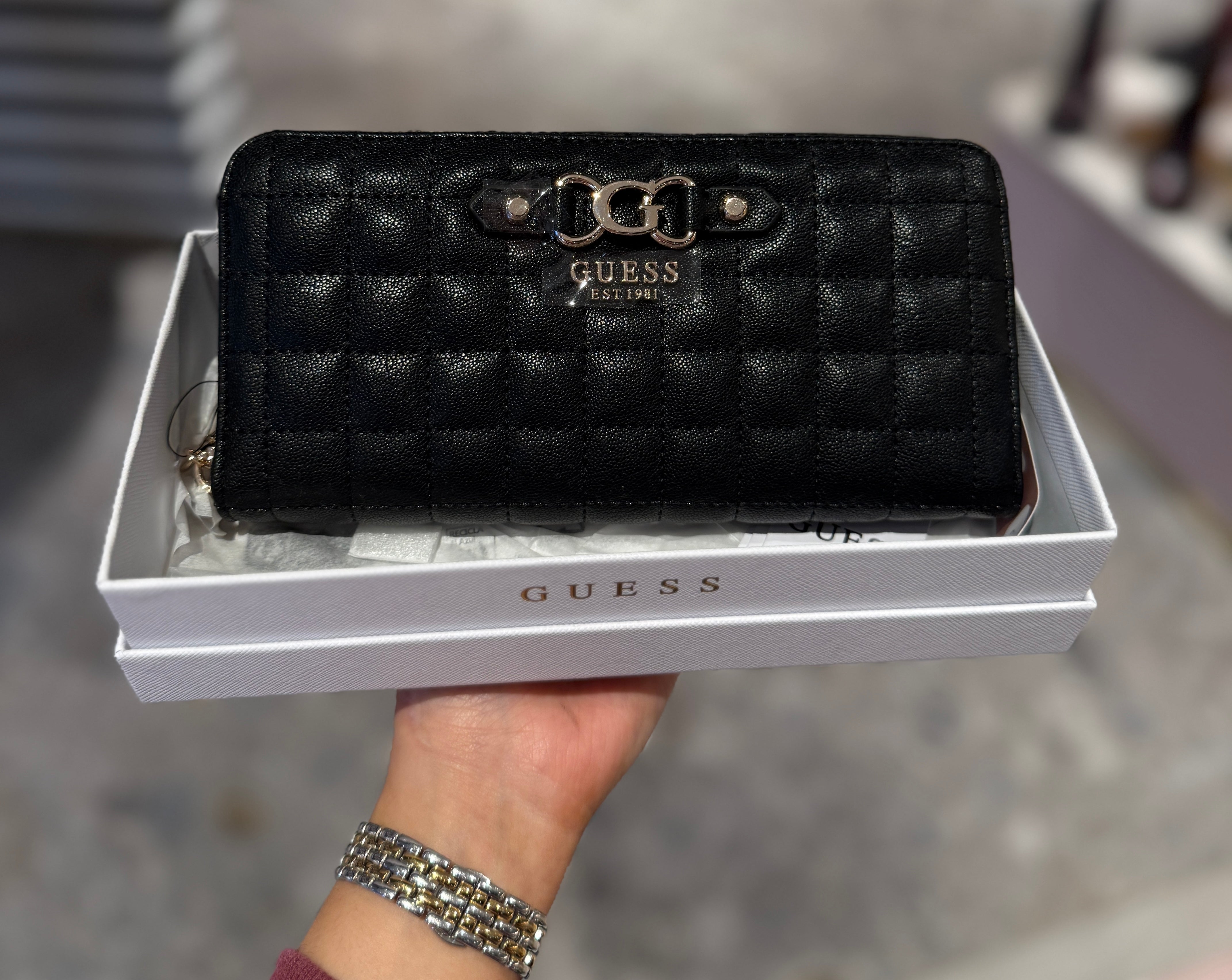 Guess ‘Nadira SLG’ Large Zip Around Quilted Purse - Black (GP15AW)