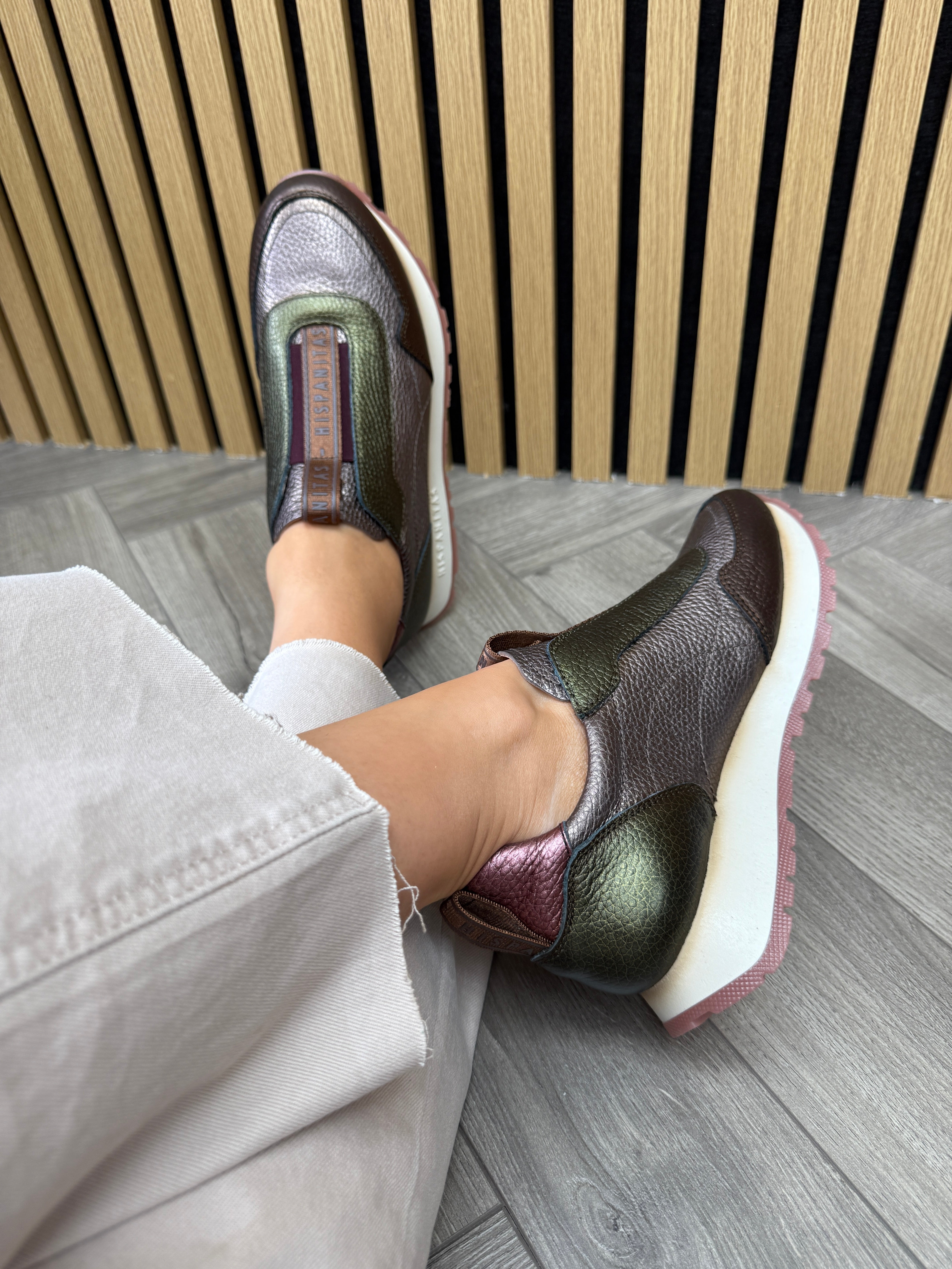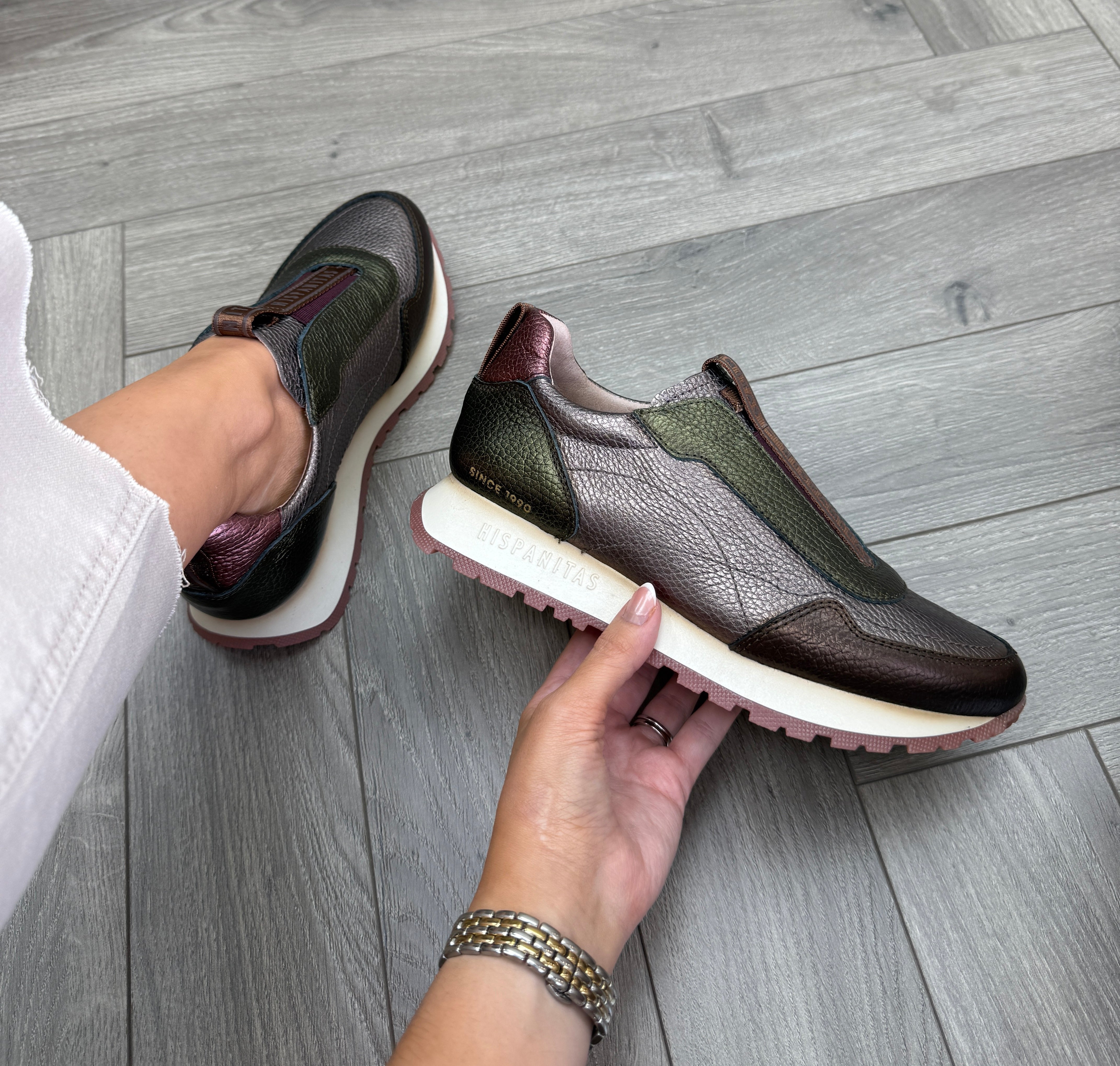 Hispanitas (AW25) (H15) CHI254311 Multi Metallic Slip On Trainer - Avellana Topo