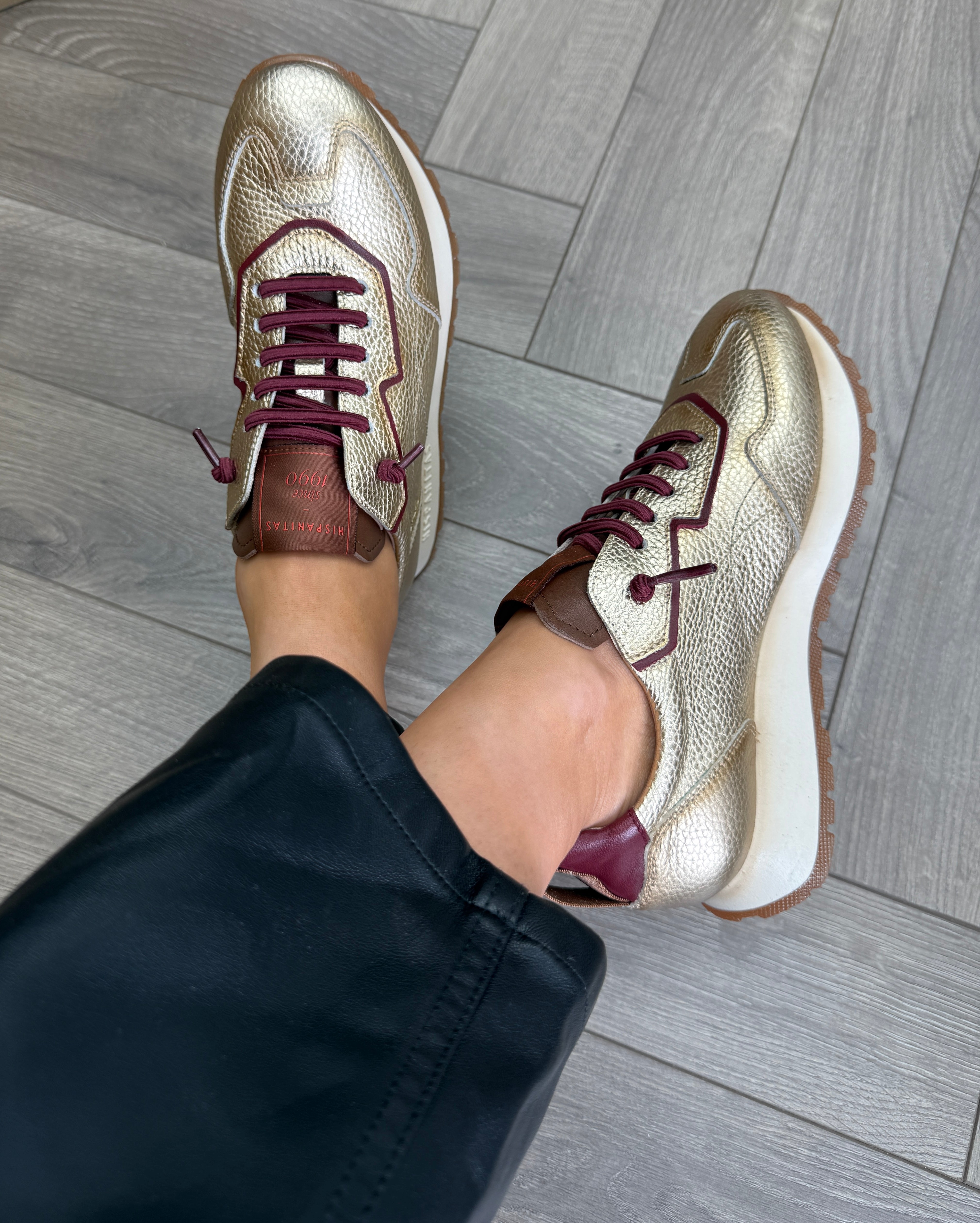 Hispanitas (AW25) (H18) CHI254312 Metallic Elastic Lace Slip On Trainer - Antico/Antico