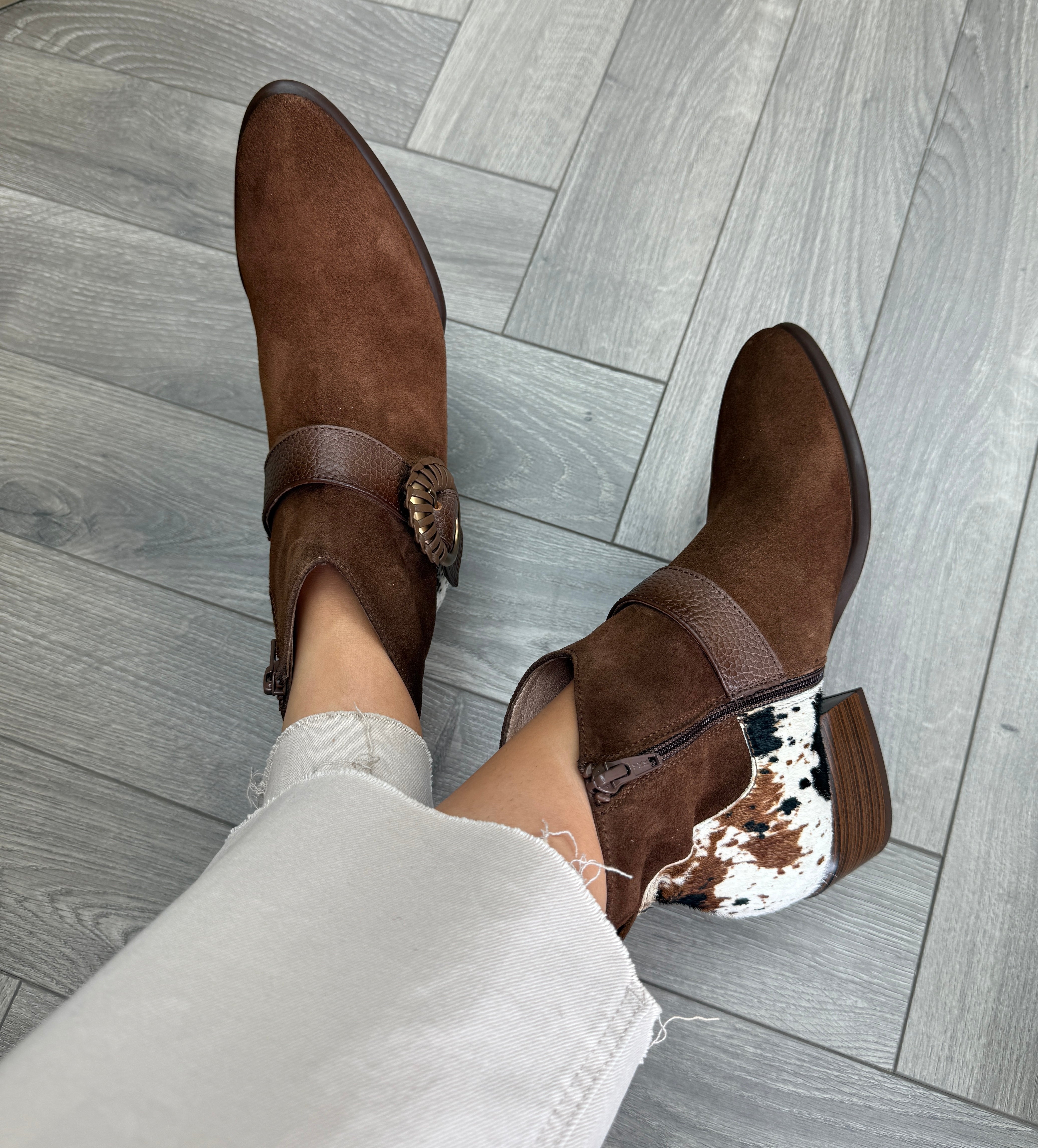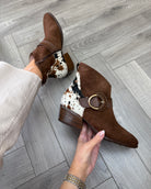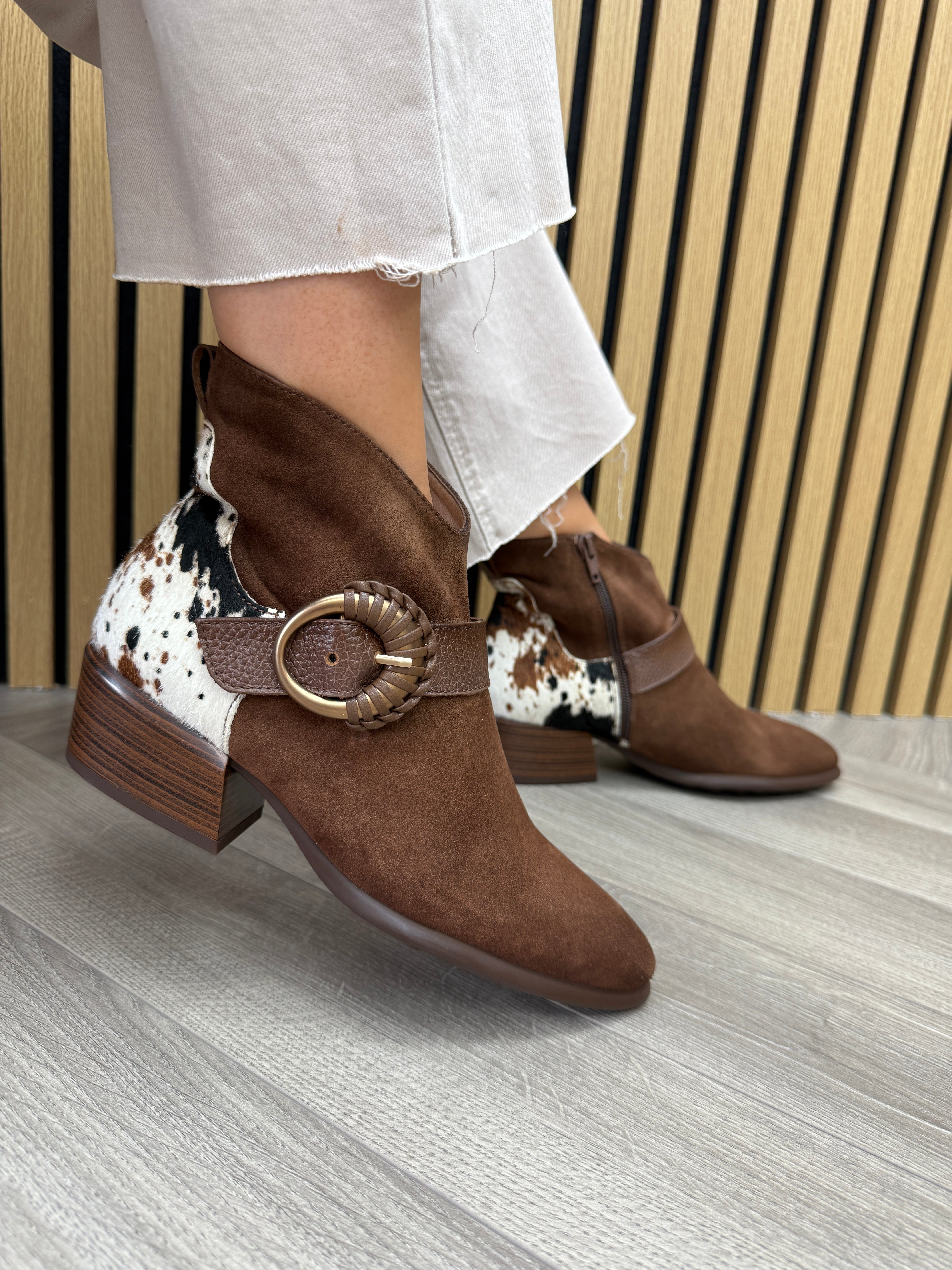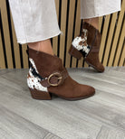 Hispanitas (AW25) (H7) ZPI254256 Western Ankle Boot With Cow Print - Avellana Multi