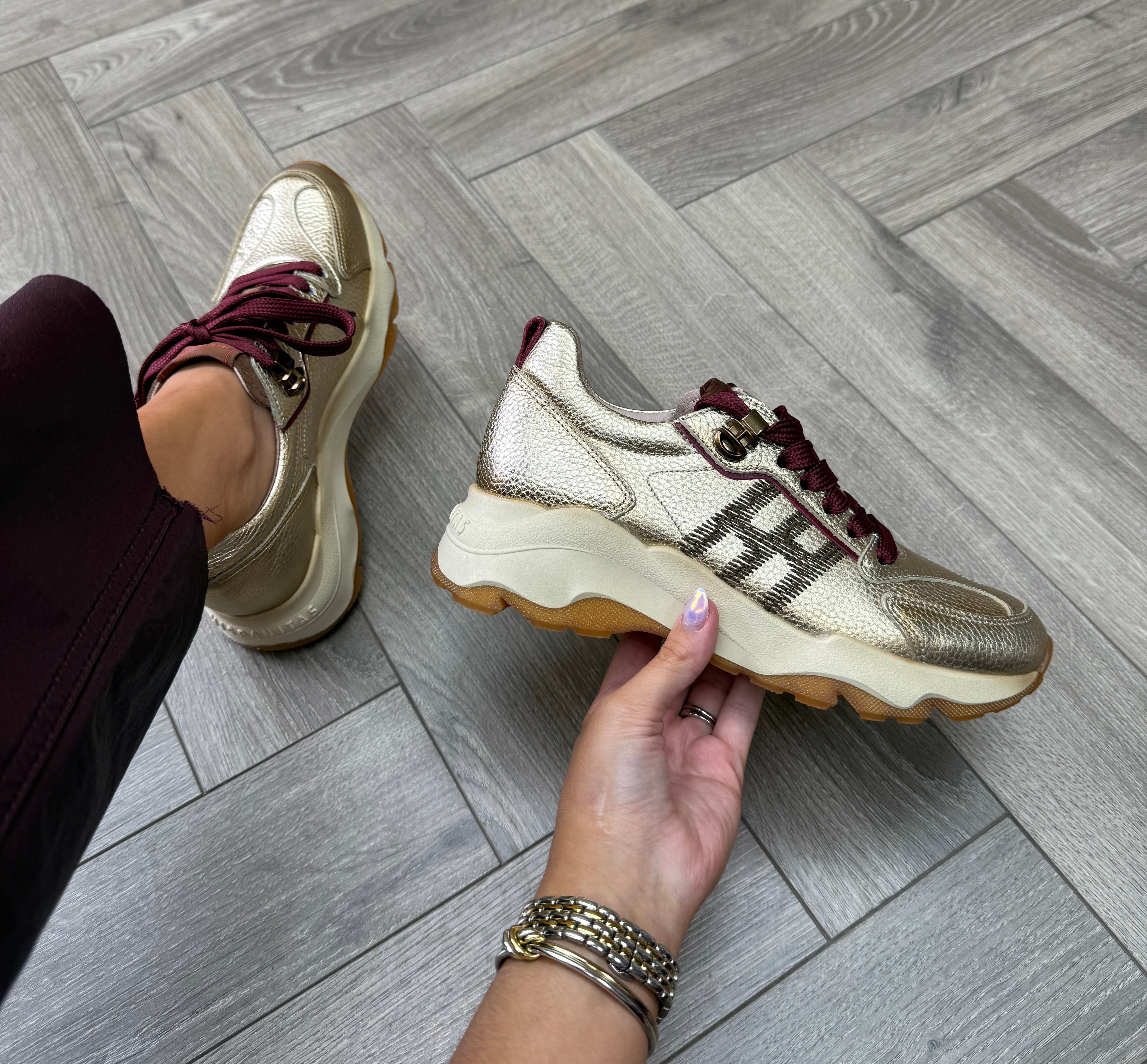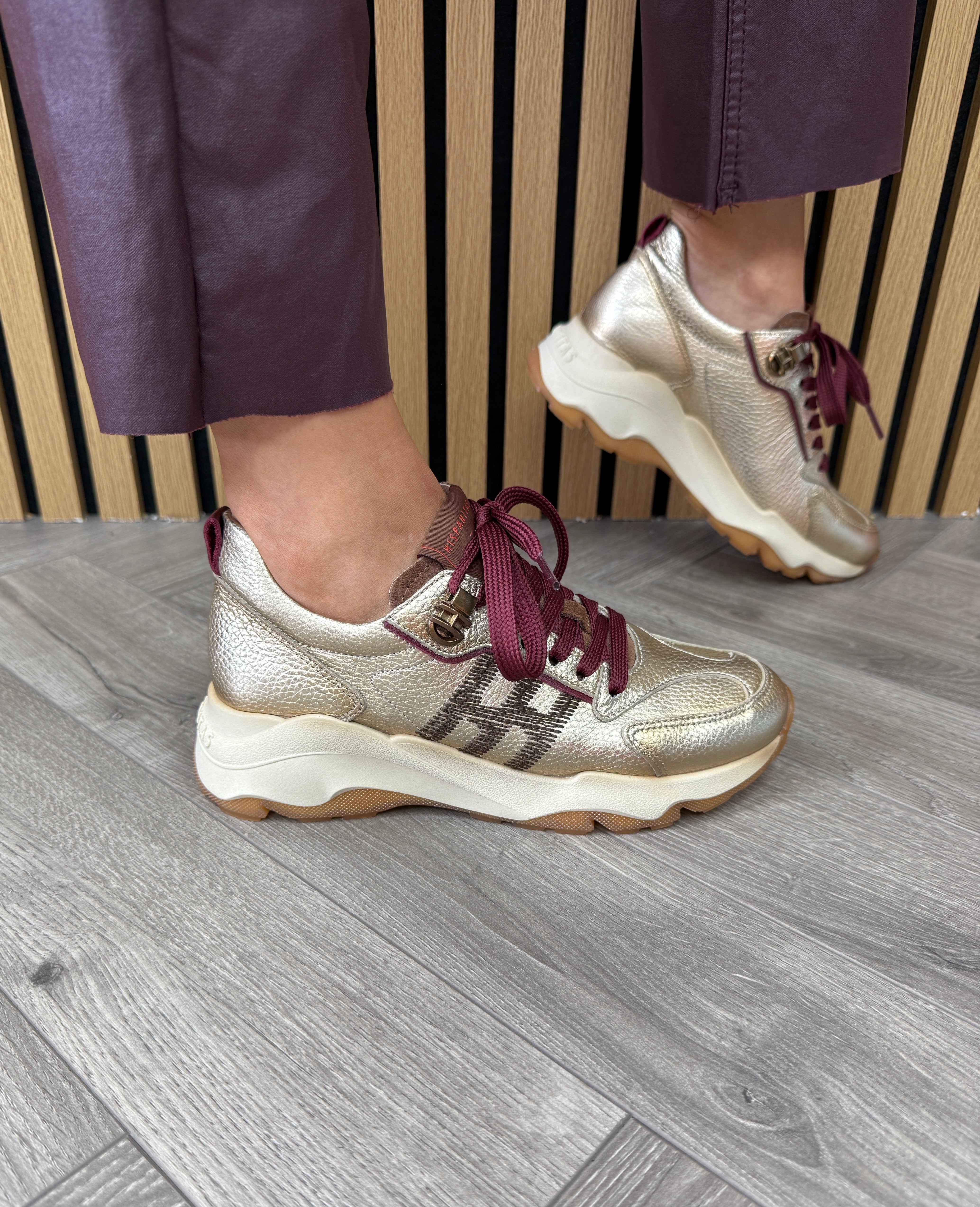 Hispanitas HI254375 Metallic Trainer With Burgundy Lace - Antico (H33AW)