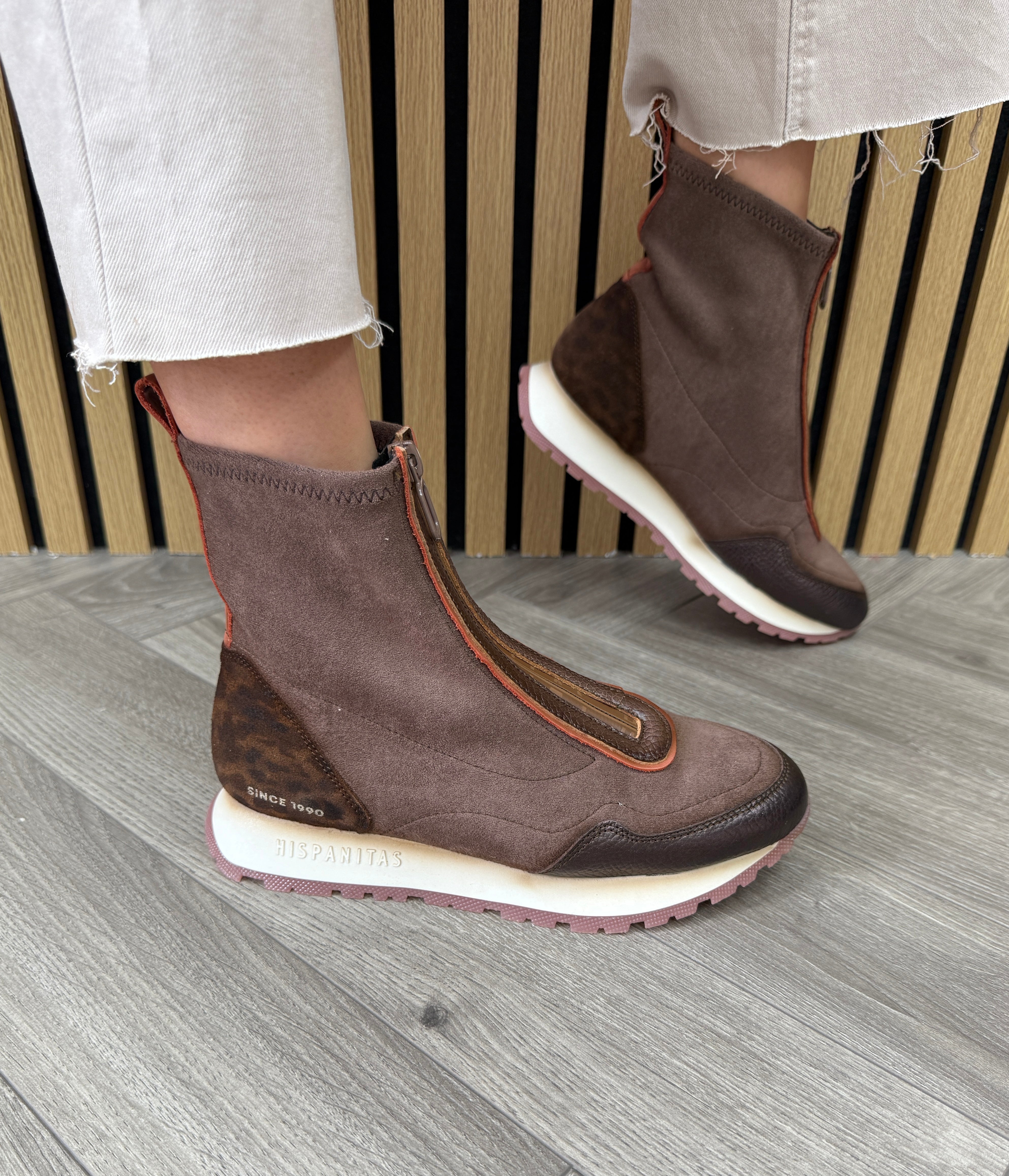 Hispanitas (HAW22) Front Zip Suede Trainer Boot H1254354 - Avellana