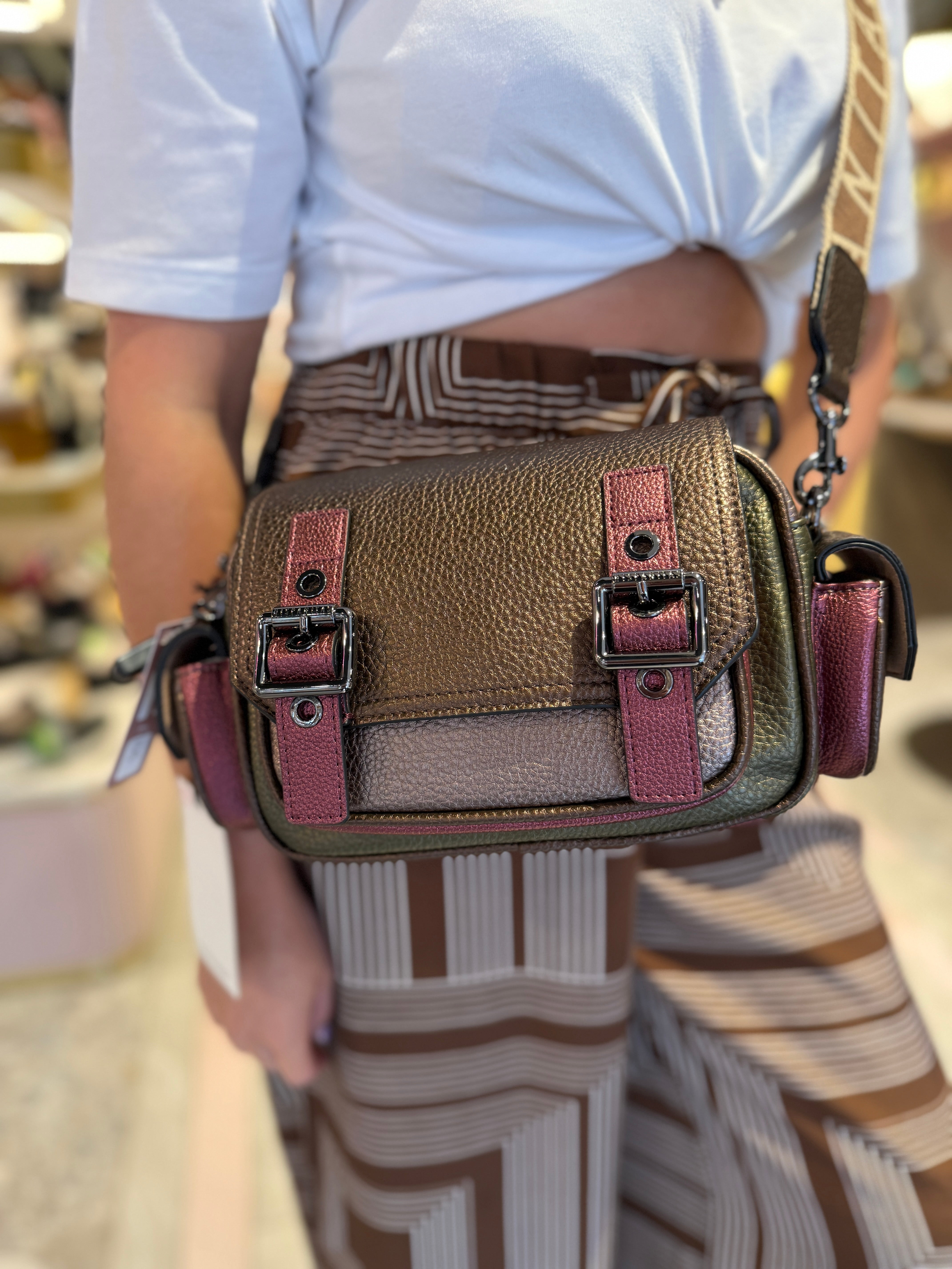 Hispanitas (HBAW2) Metallic Flap Over Crossbody with Buckles BI254327 - Avellana/Wine