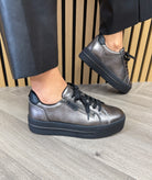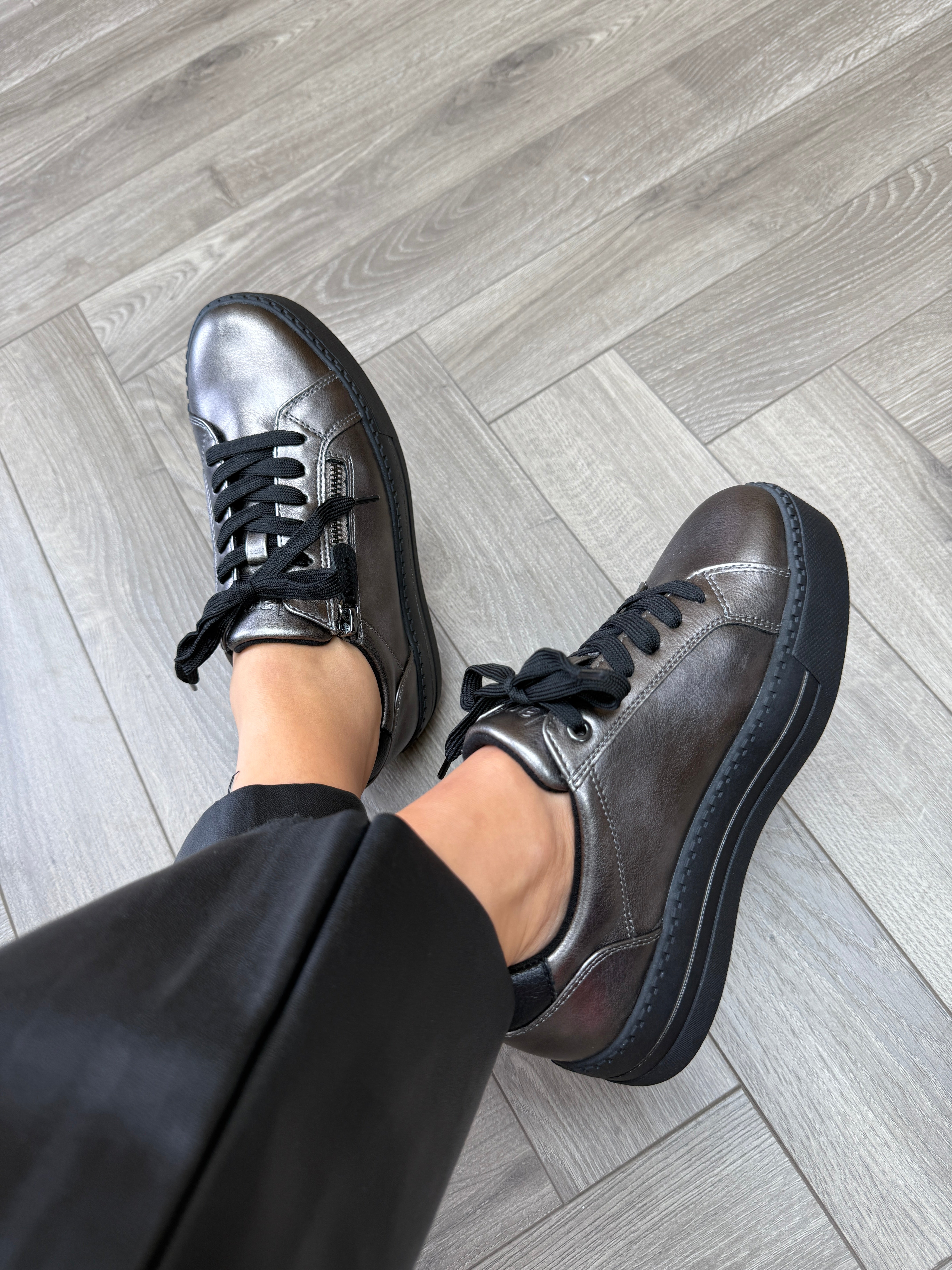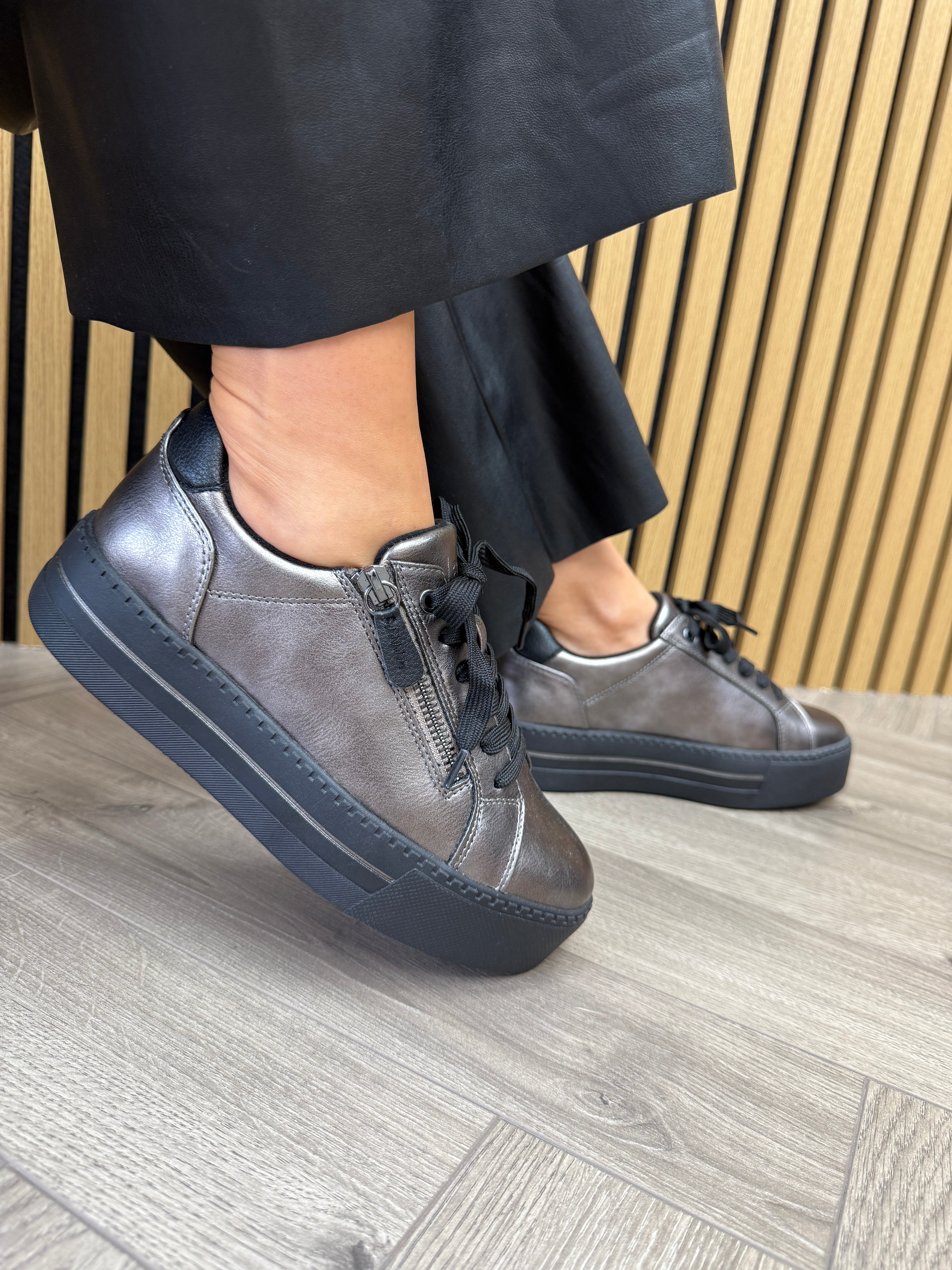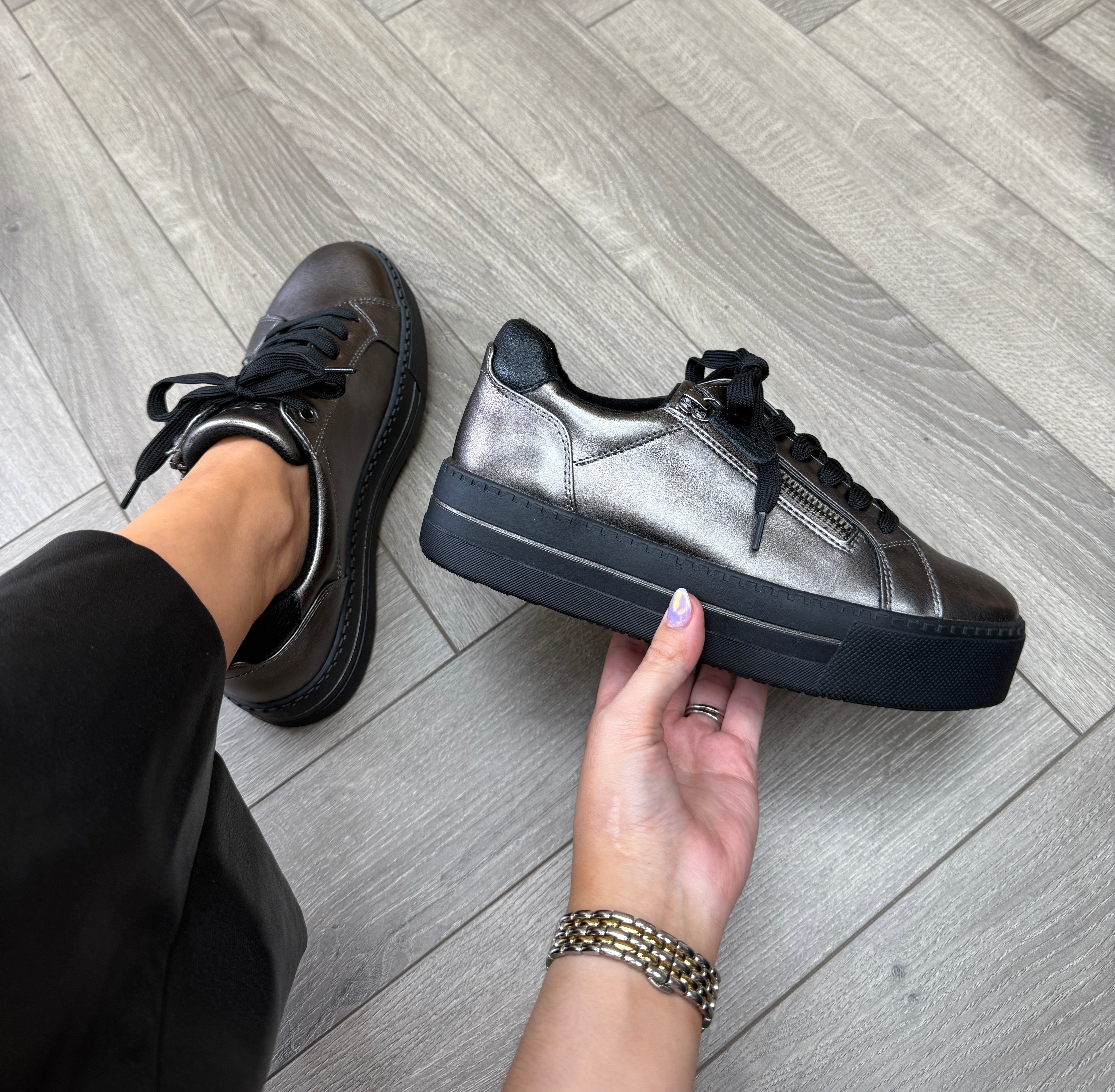 Jana (AW25) 8-23767-43 Chunky Sole Metallic Trainer With Side Zip - Pewter/Black (JAW3)