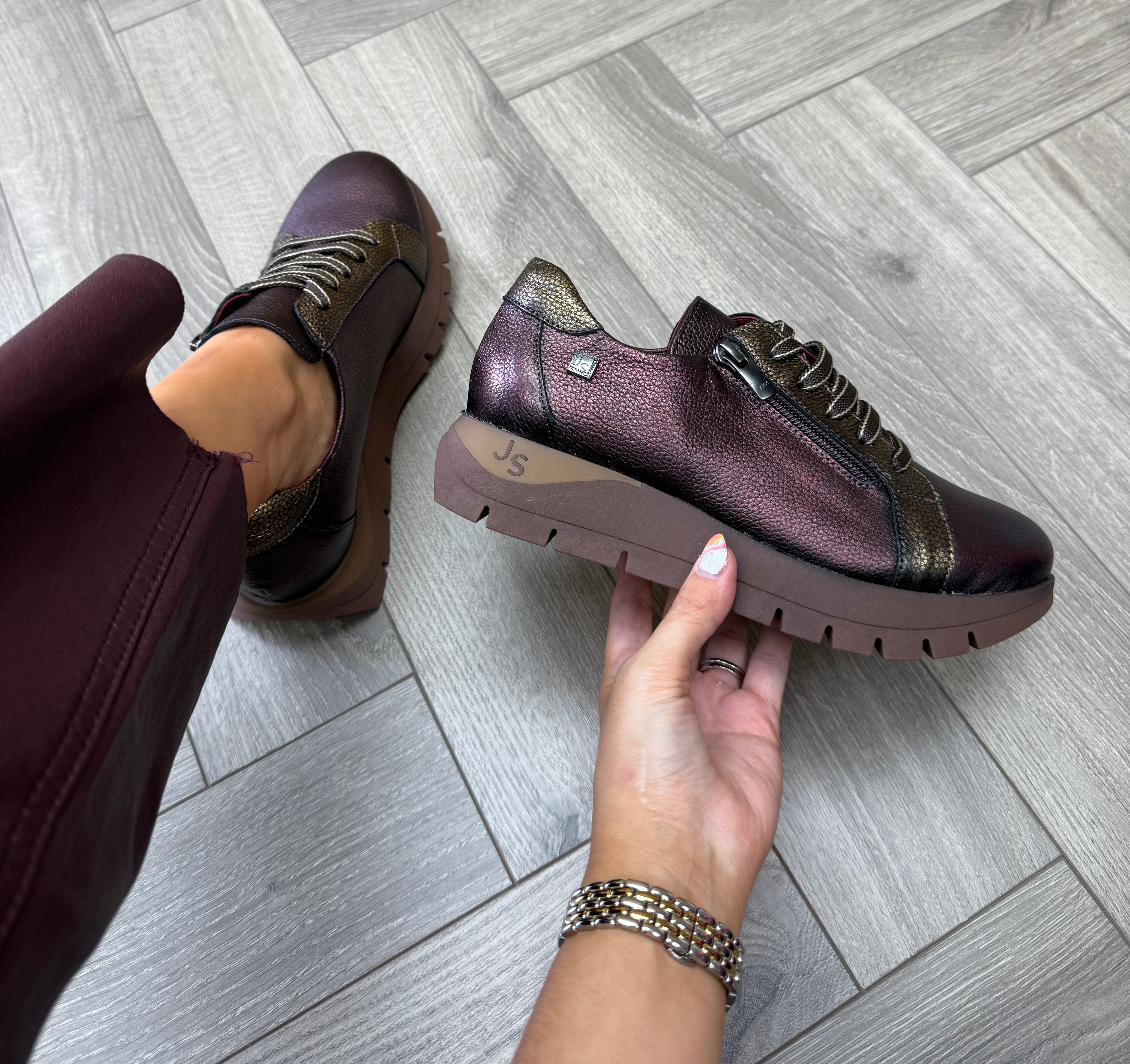 Jose Saenz (AW25) 2276-H Chunky Metallic Trainer With Side Zip - Rioja/Bronce/Herce ( JSAW5)