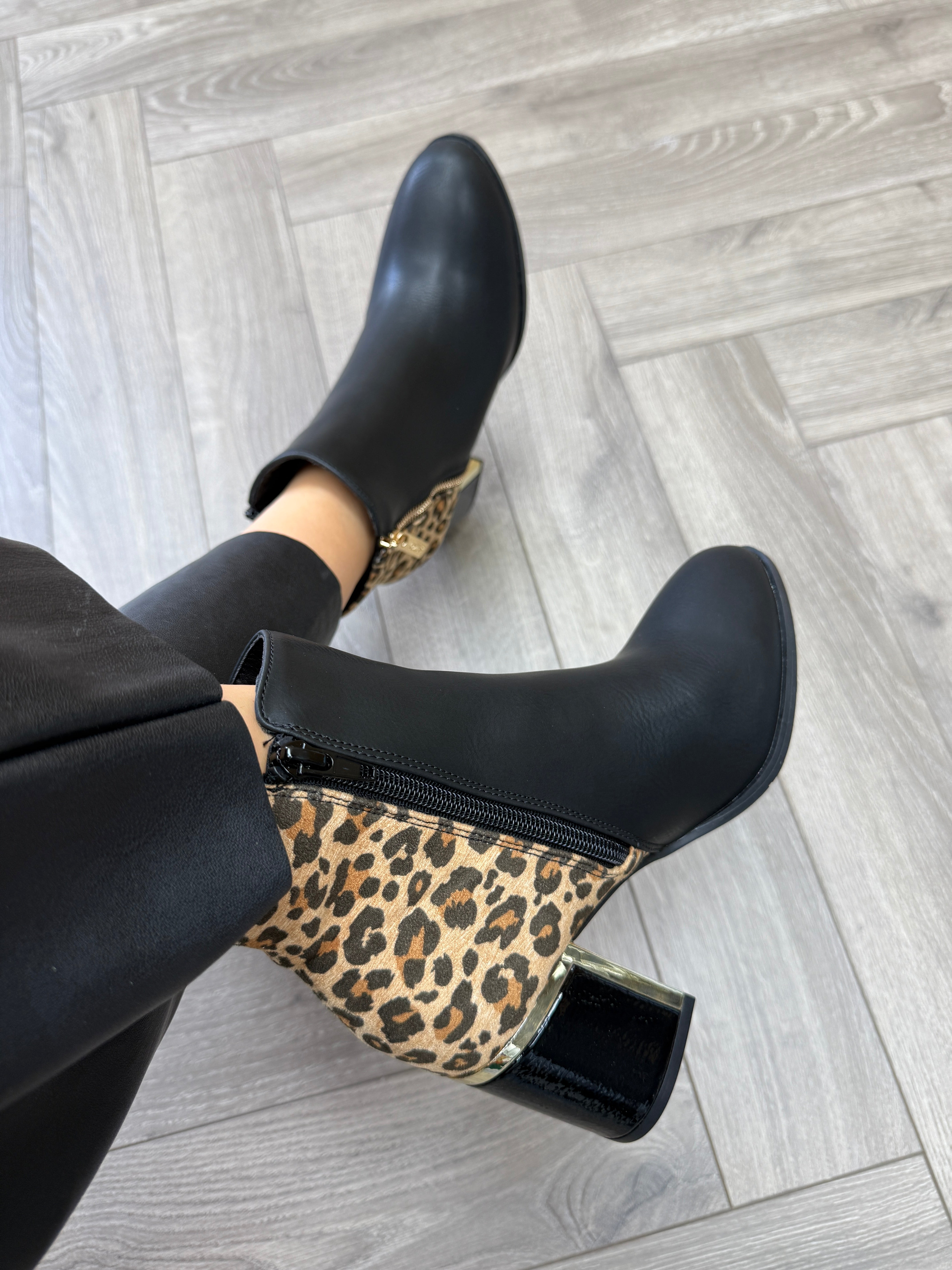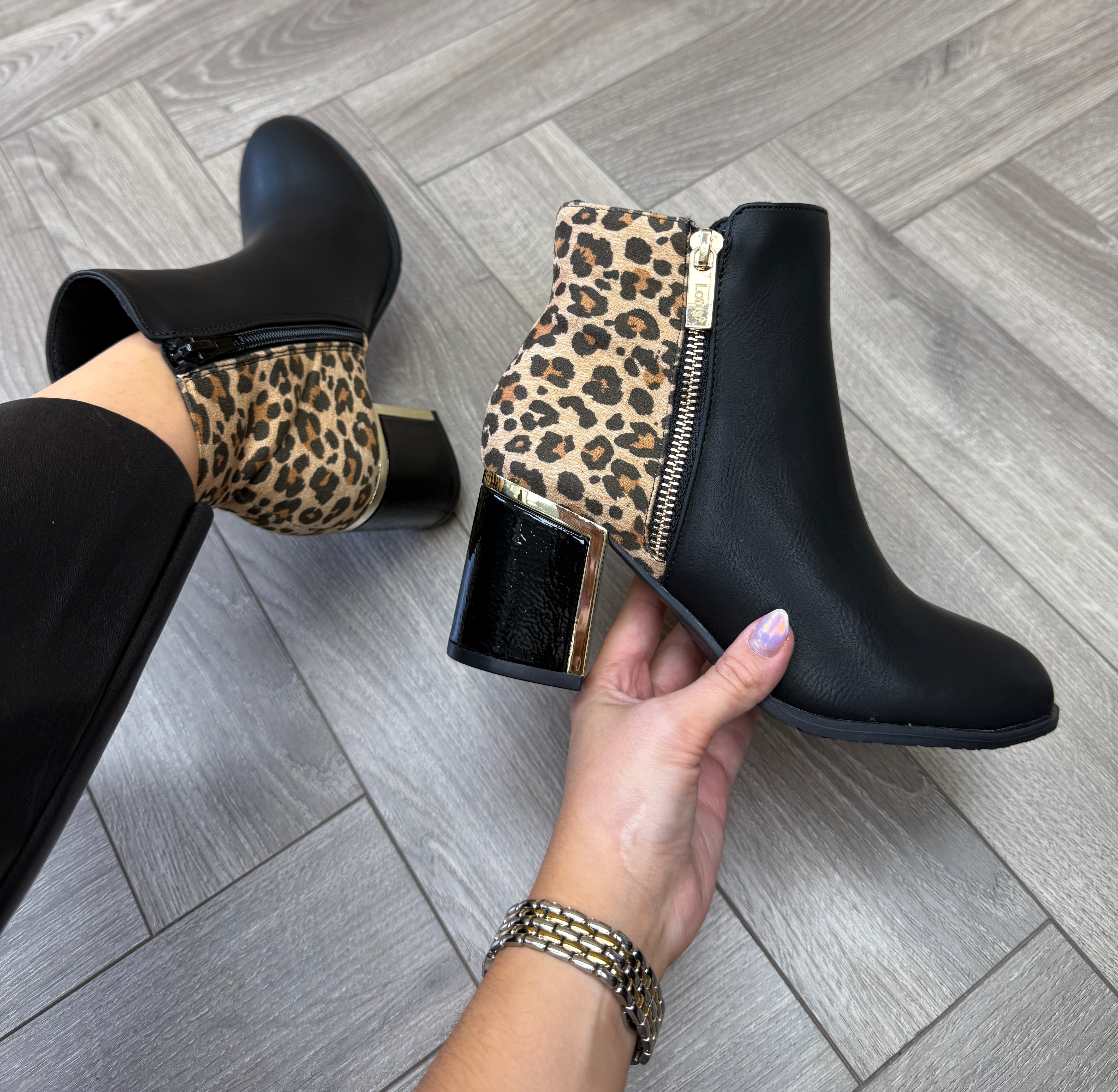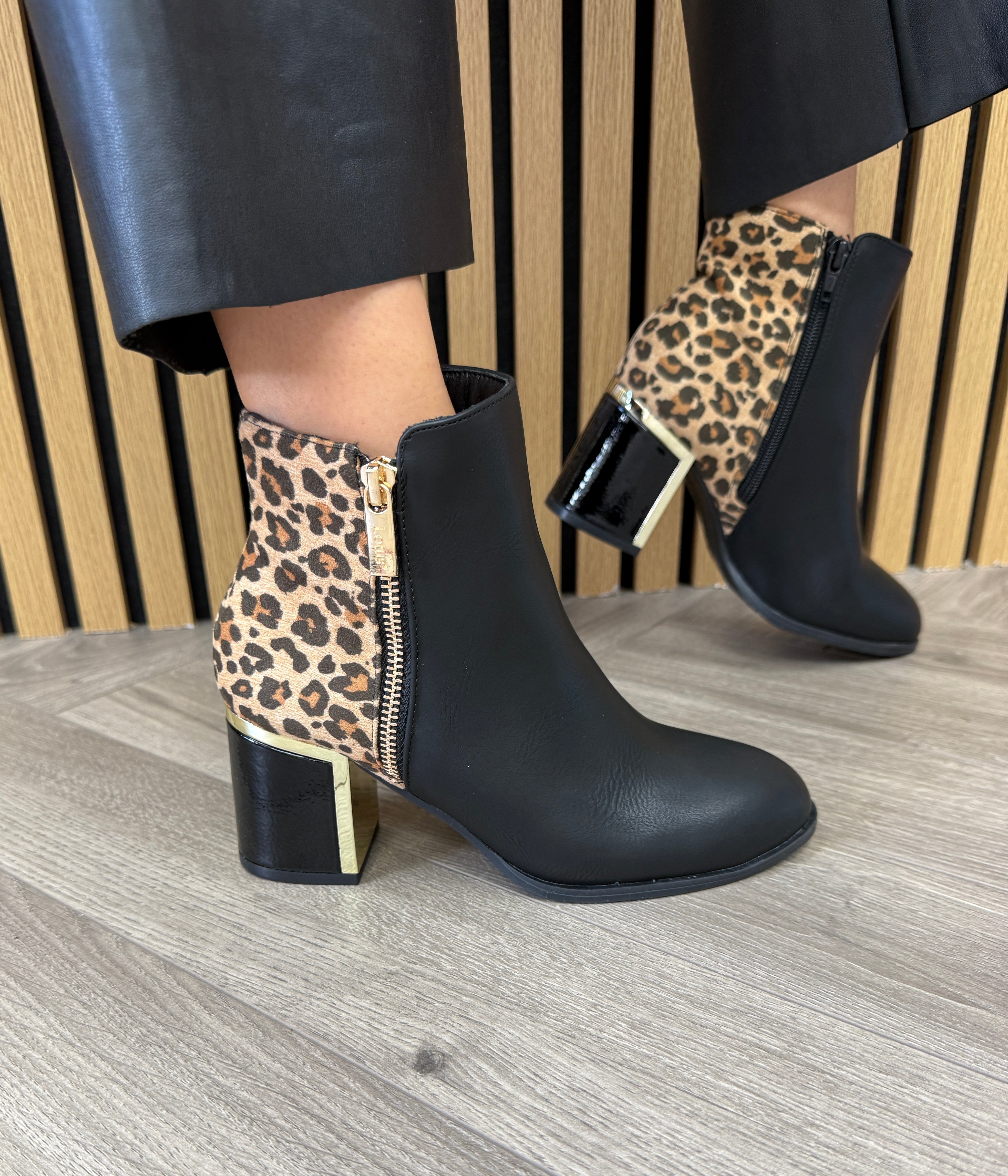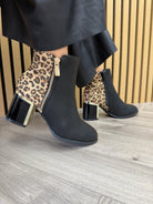 Lotus (LO11) Athens Heeled Boot With Leopard - Black/Leopard