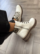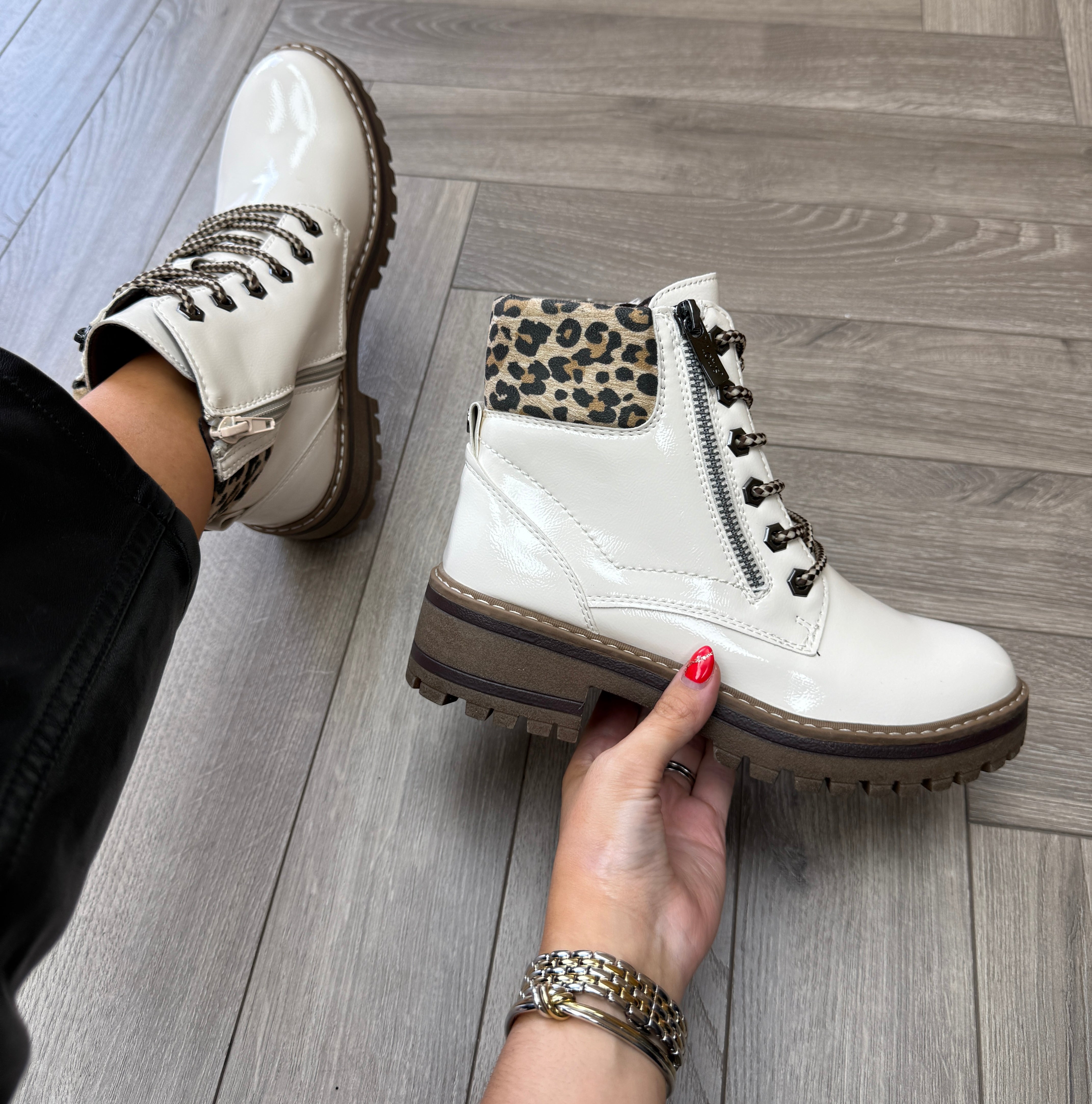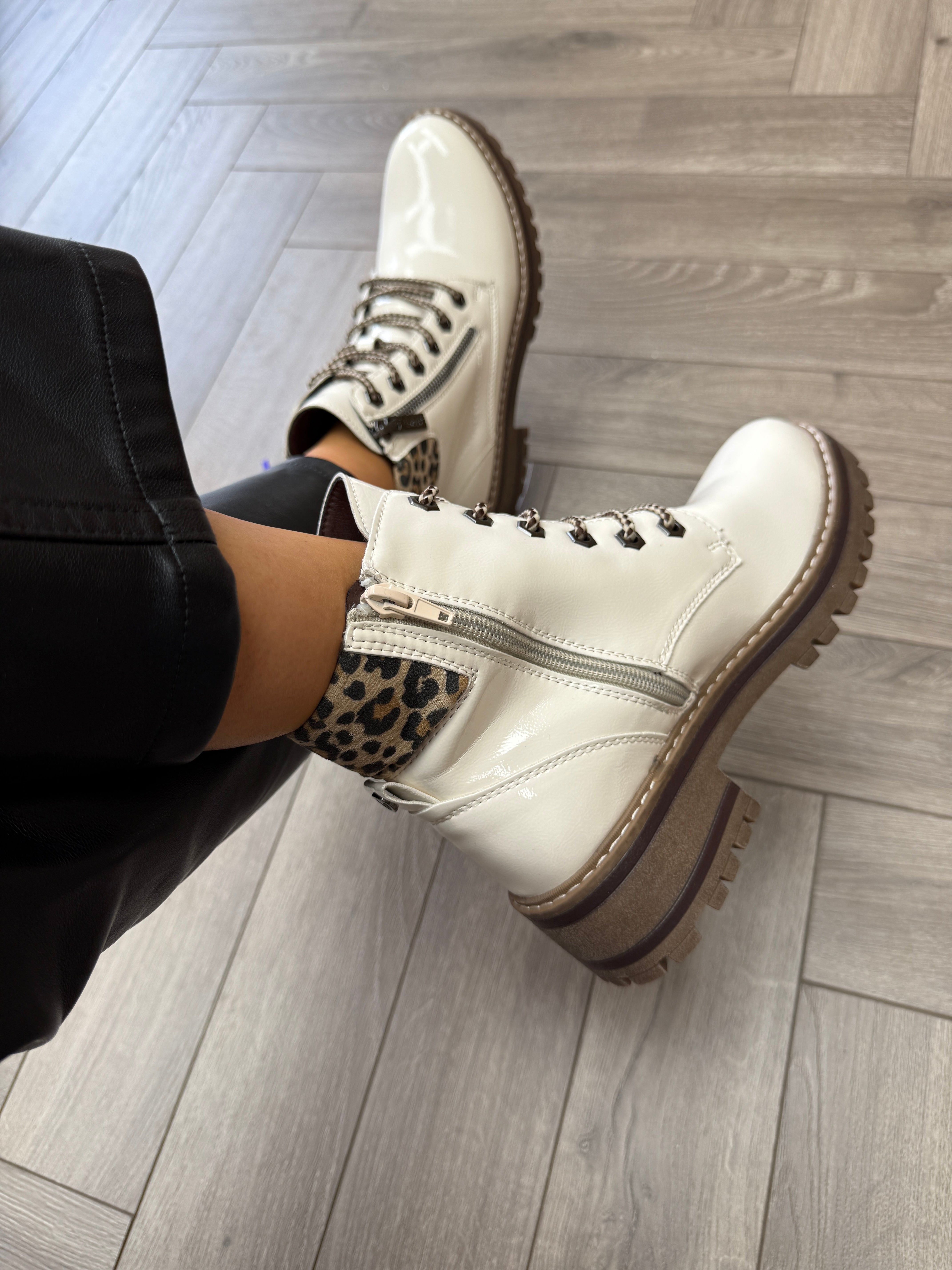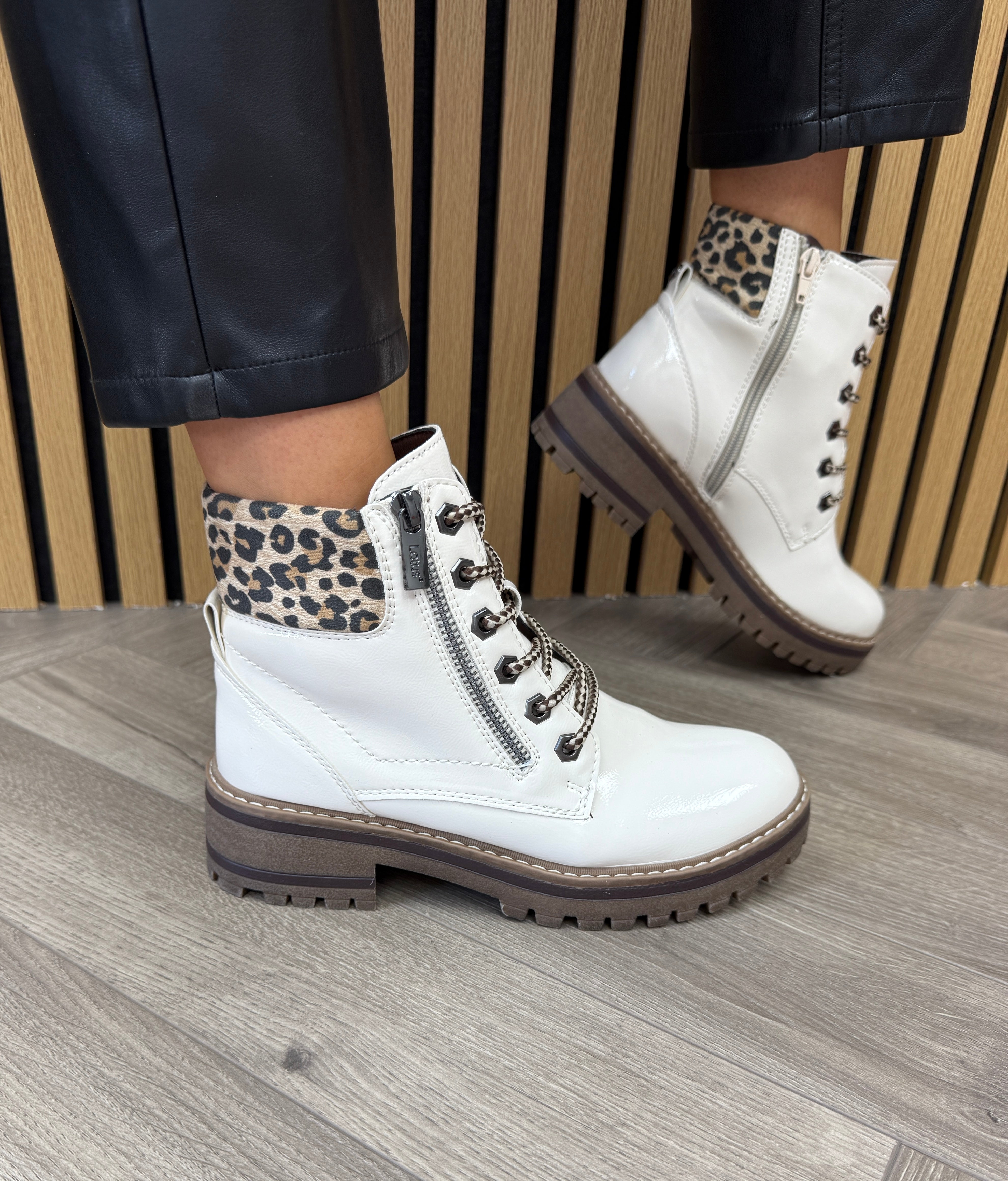 Lotus ‘Myleen’ ULB455 Patent Leopard Cuff Boot - White (LO16AW)
